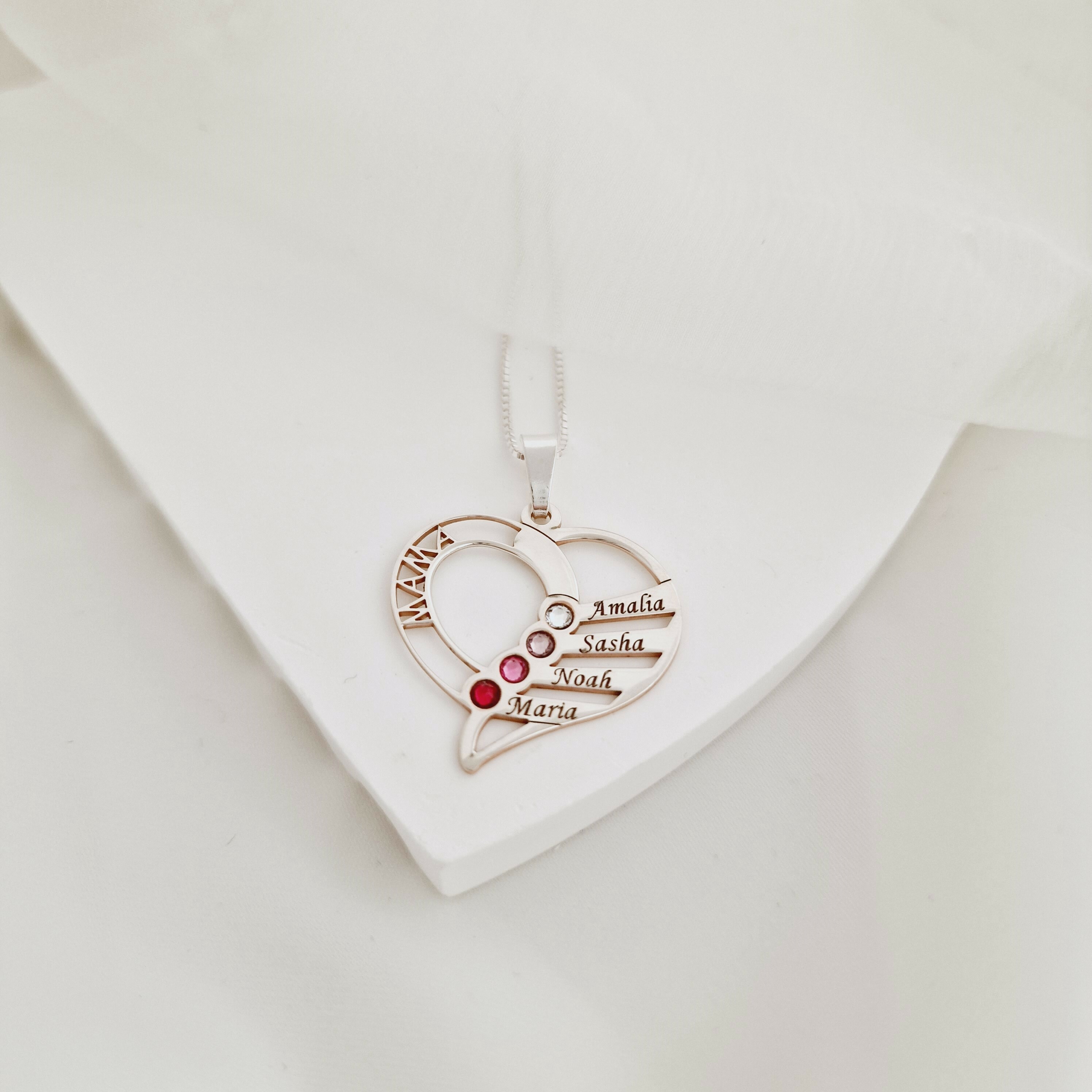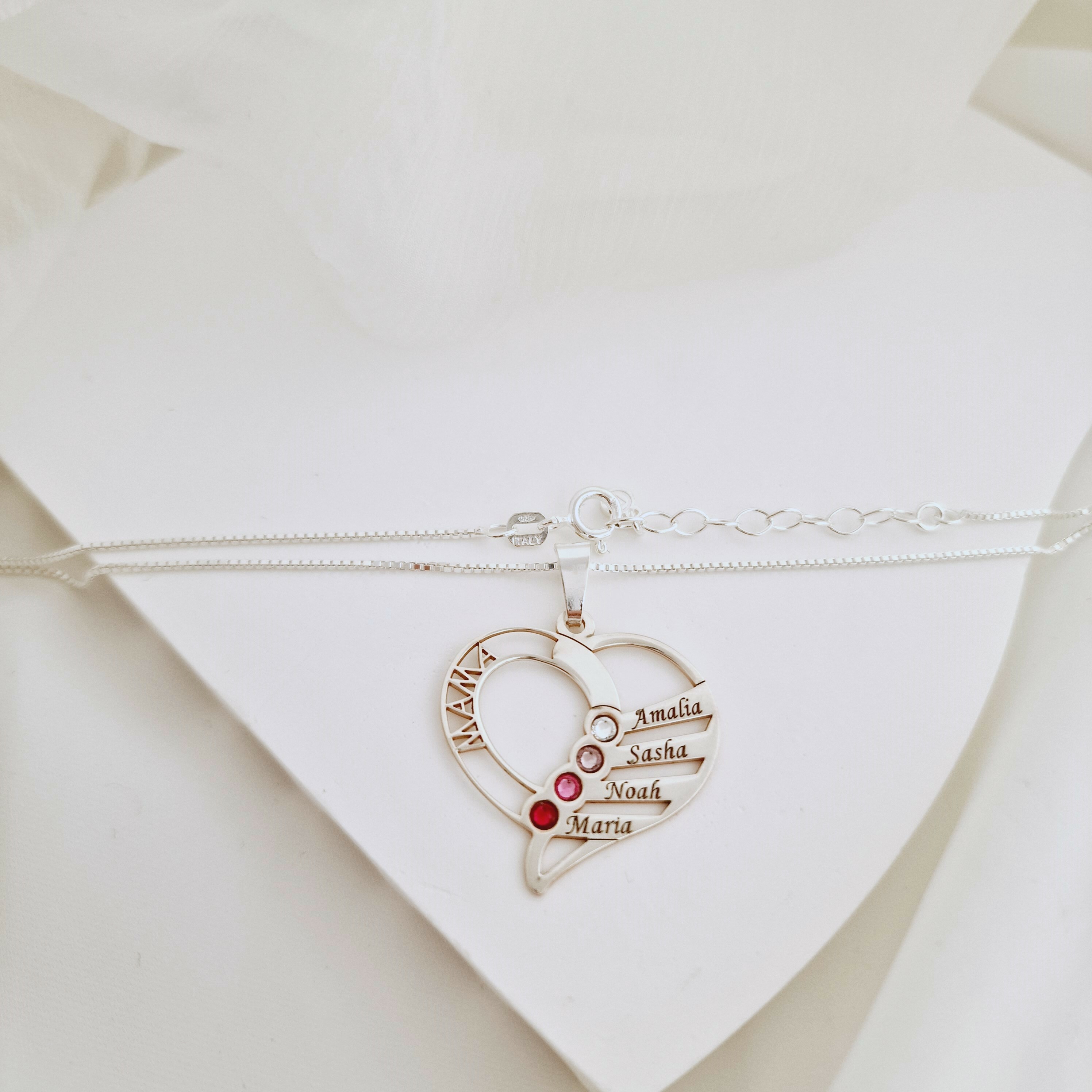 Lantisor Dragii MAMEI - 4 nume si cristale Swarovski - Argint 925