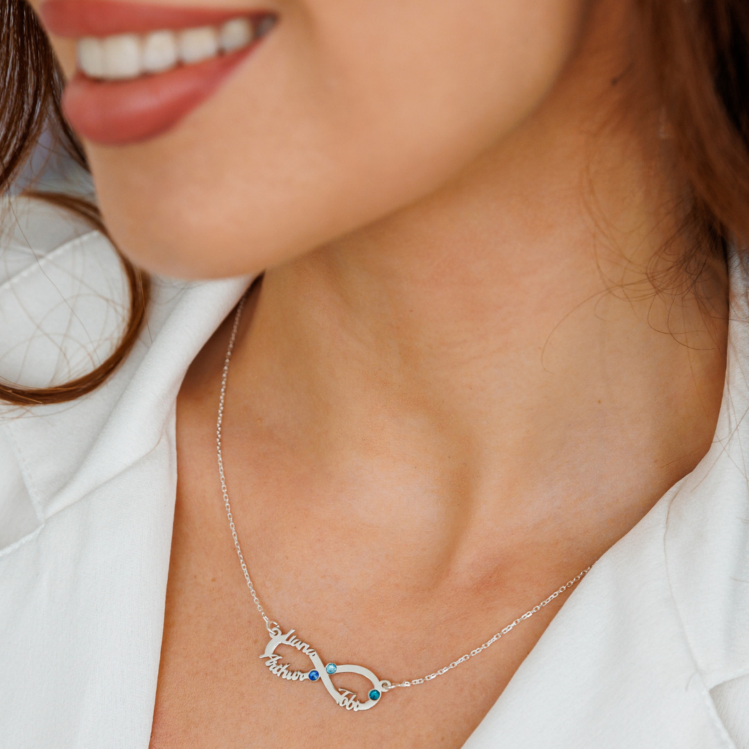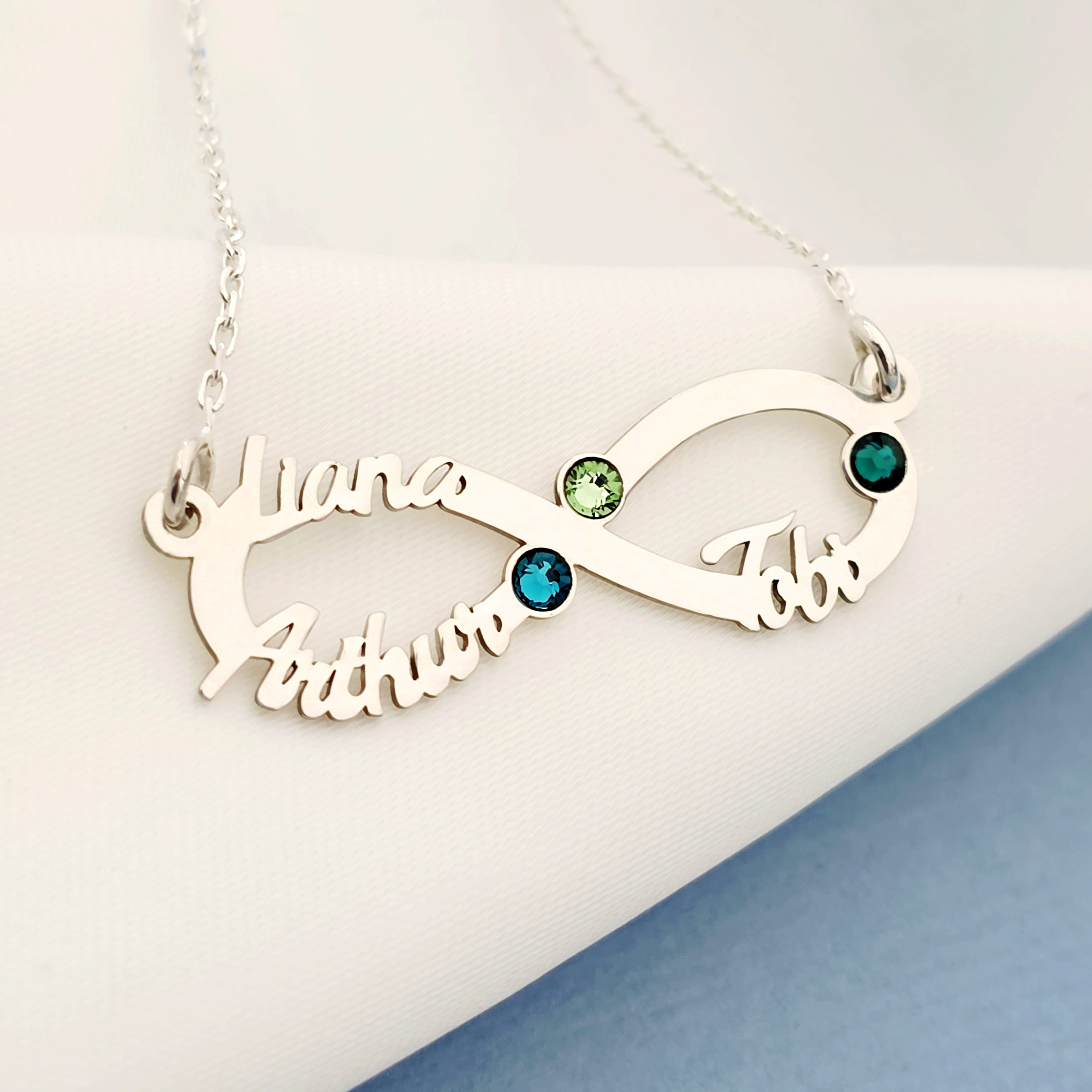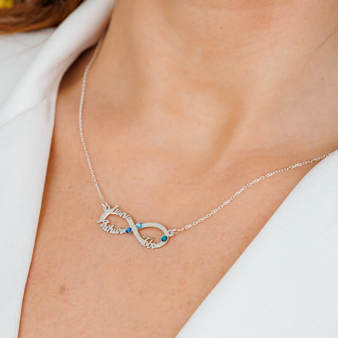 Lantisor Etern - Infint cu 3 nume decupate si cristale Swarovski - Argint 925