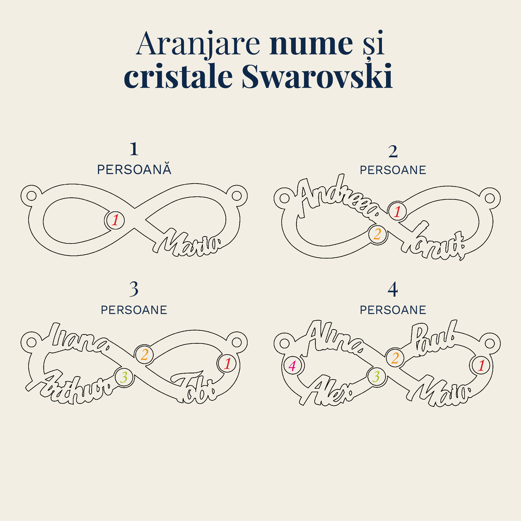 - Cristalele Swarovski pot fi alese in functie de culoarea preferata sau dupa luna nasterii. Descopera piatra lunii in care te-ai nascut in poza explicativa.