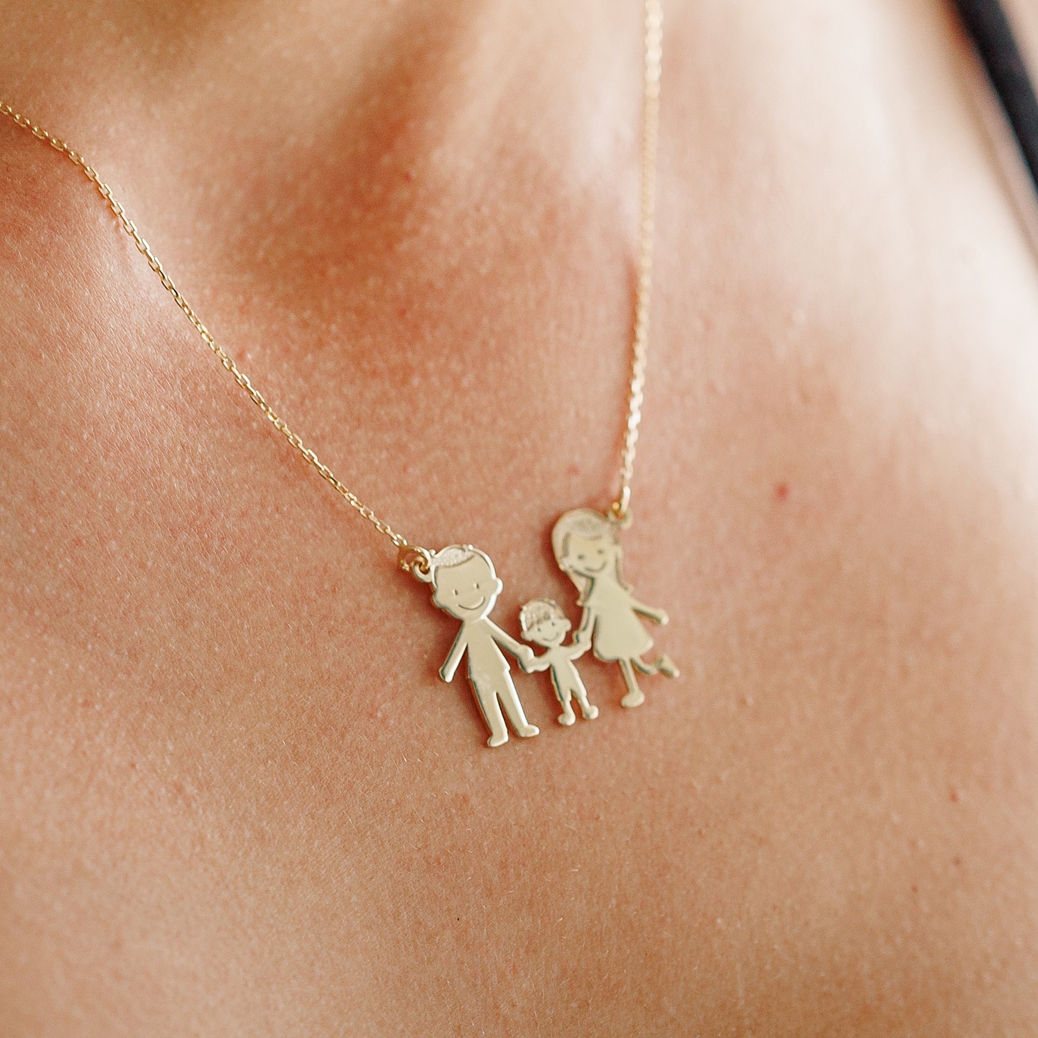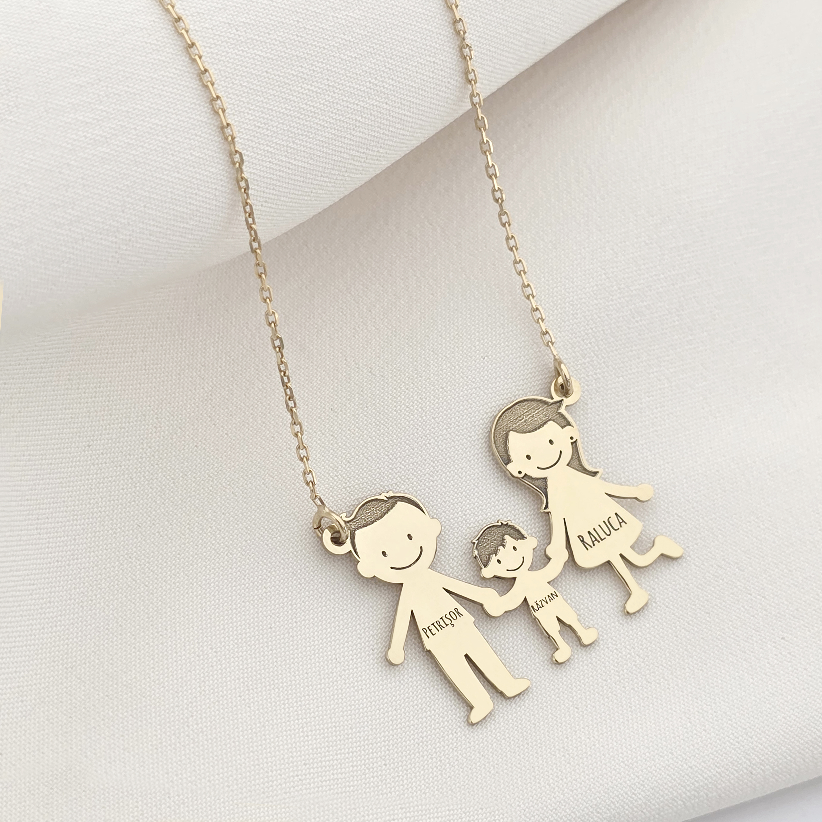 1. Pandantiv Parinti + 1 copil2. Pandantiv Parinti + 2 copii3. Pandantiv Parinti + 3 copii4. Pandantiv doar cu copii5. Pandantiv doar parinti(cuplu)*dar si alte variante in functie de ceea ce va doriti.Familie, un cuvant puternic cu o semnificatie si mai puternica! Pandantivul a fost creat din Argint 925 prin gravare si taiere laser, apoi fiind finisat de bijutierii nostri. Daca doresti si tu sa faci un cadou personalizat sau sa porti o bijuterie cu valoare sentimentala comanda-l acum!