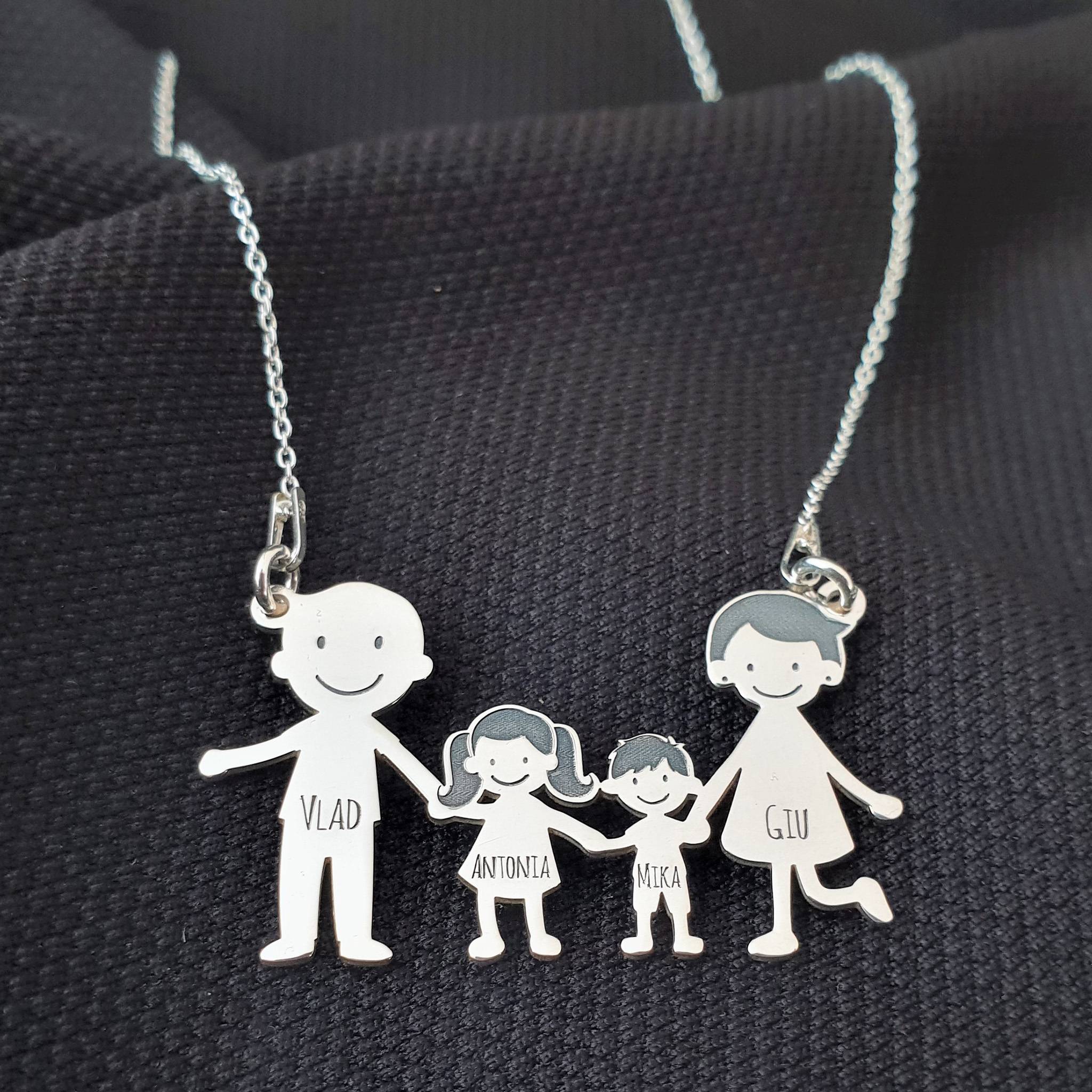 Lantisor Familie - 4 Membri - Tata Chel si Mama cu par scurt - Argint 925