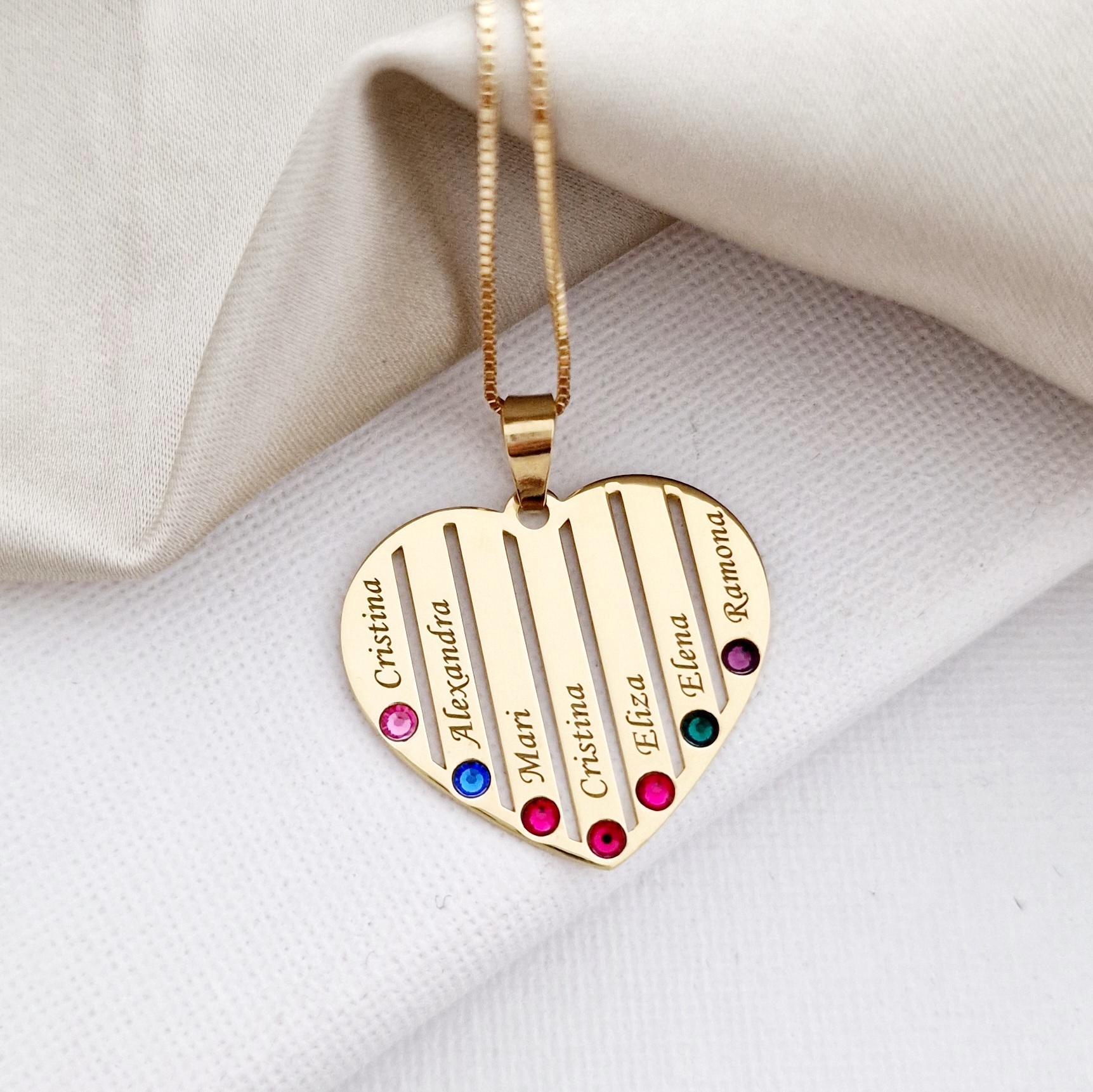 Lantisor Inima familiei - 7 nume si cristale Swarovski - Argint 925 placat cu Aur 18K