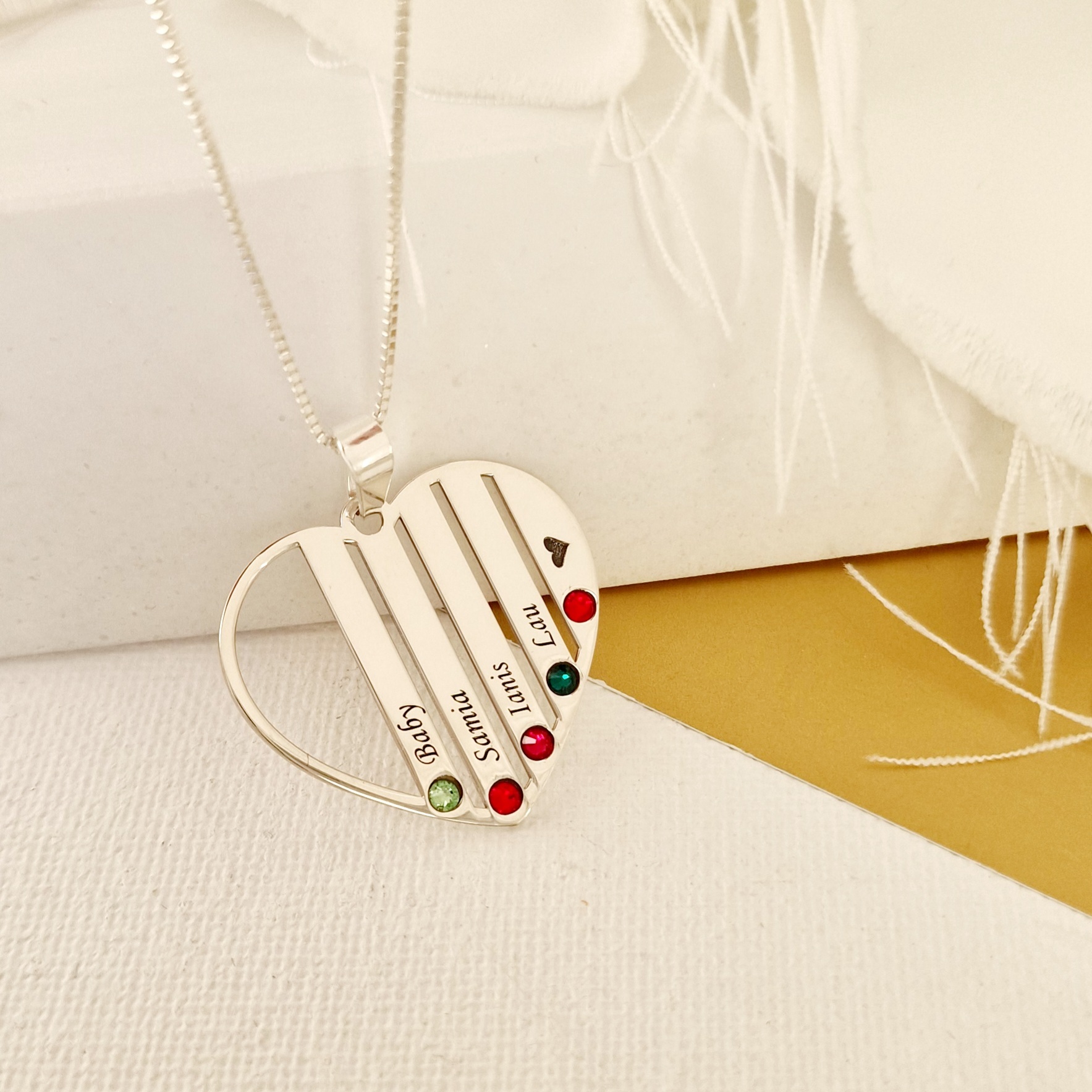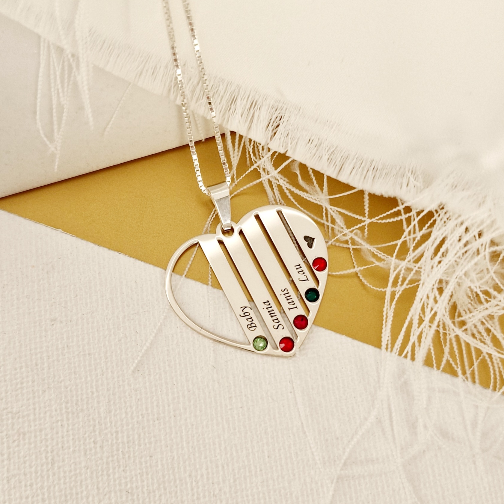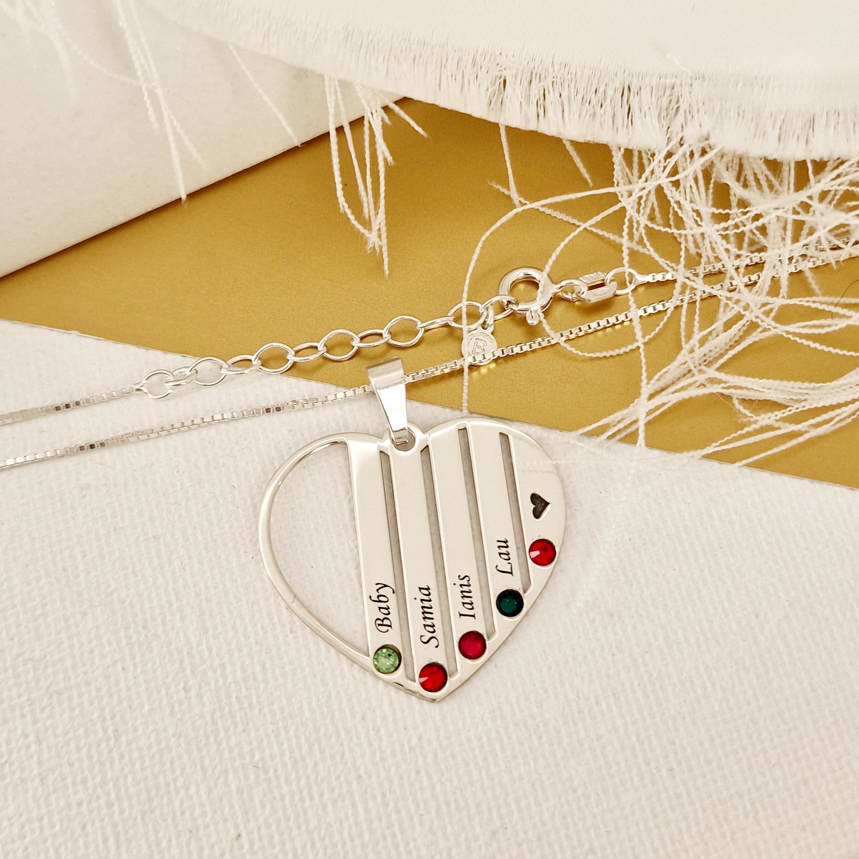 Lantisor Inima familiei - 5 nume si cristale Swarovski - Argint 925