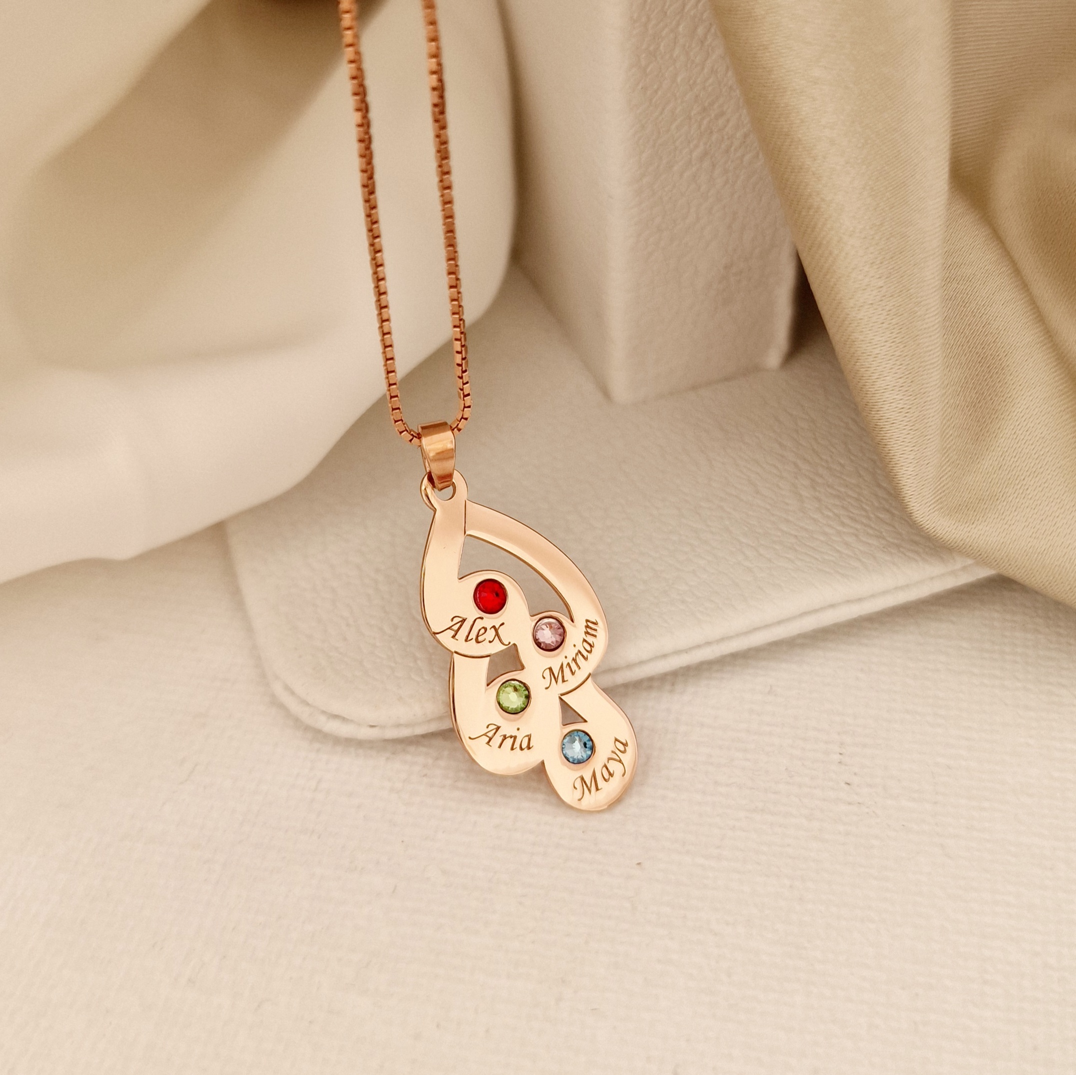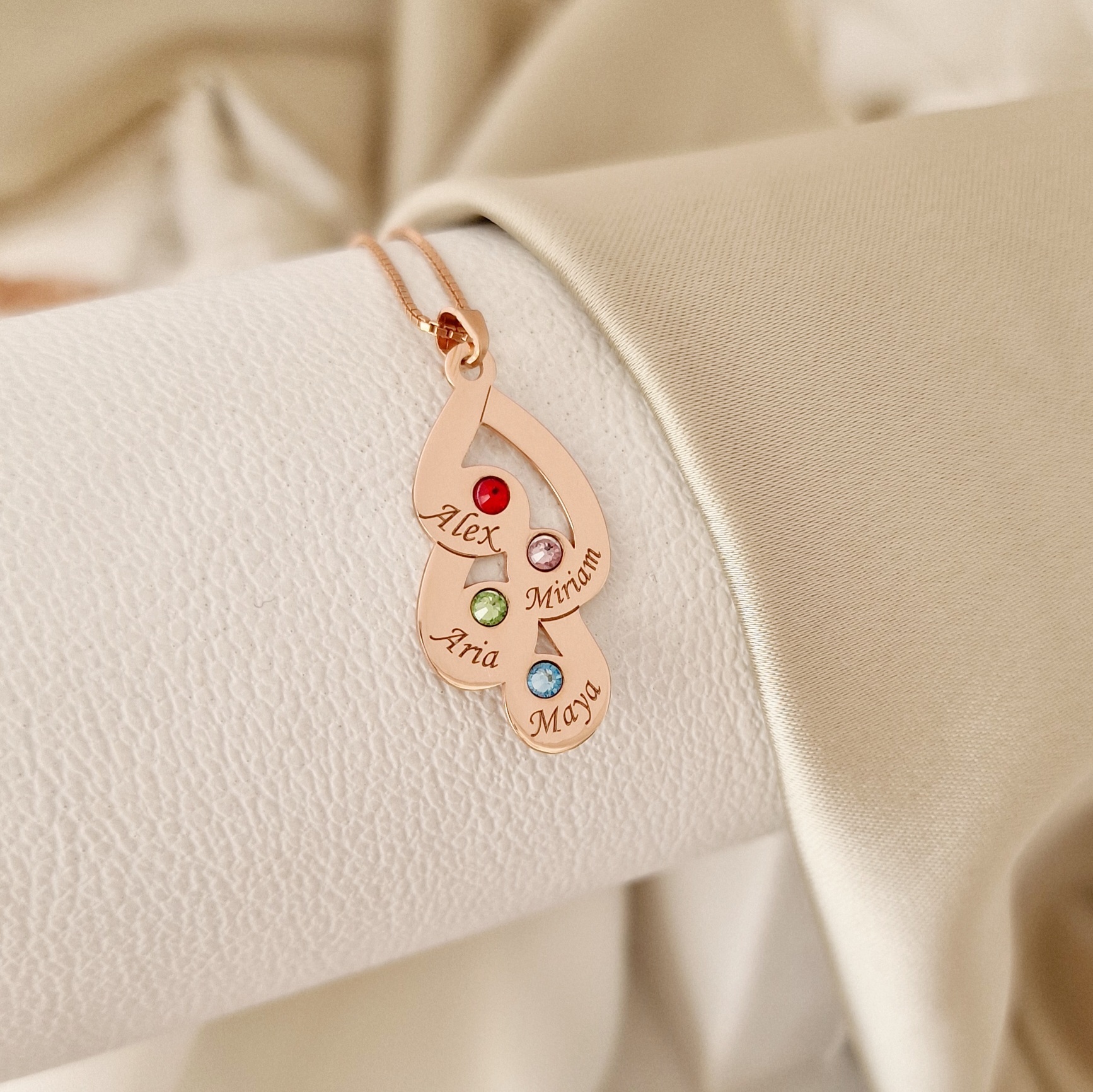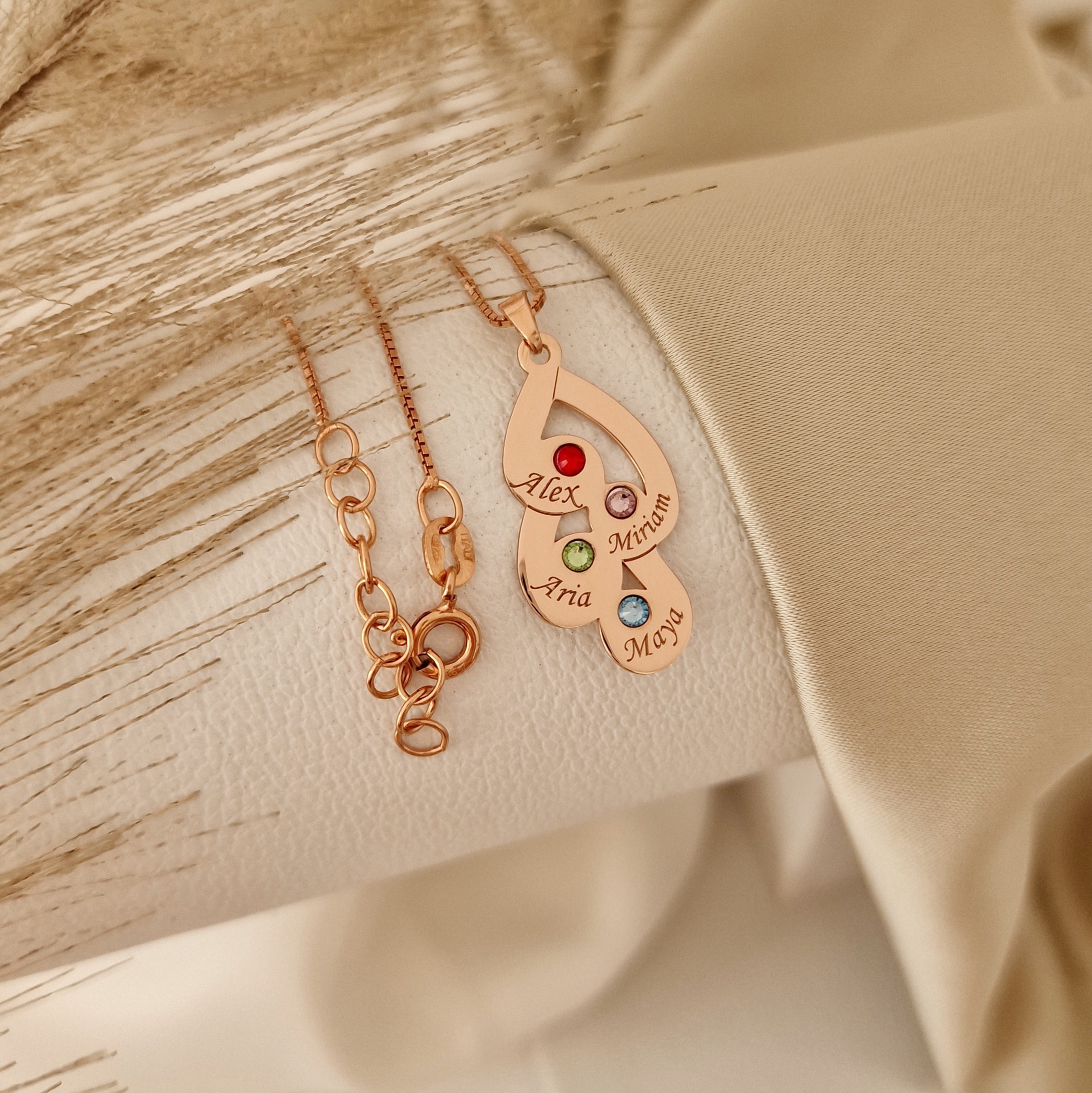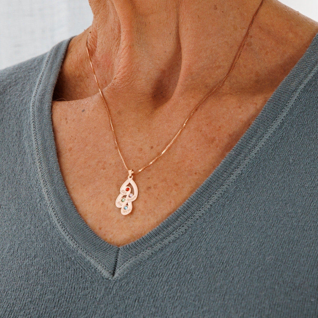 Lantisor Picaturi de emotie - 4 nume si cristale Swarovski - Argint 925 placat cu Aur Roz 18K