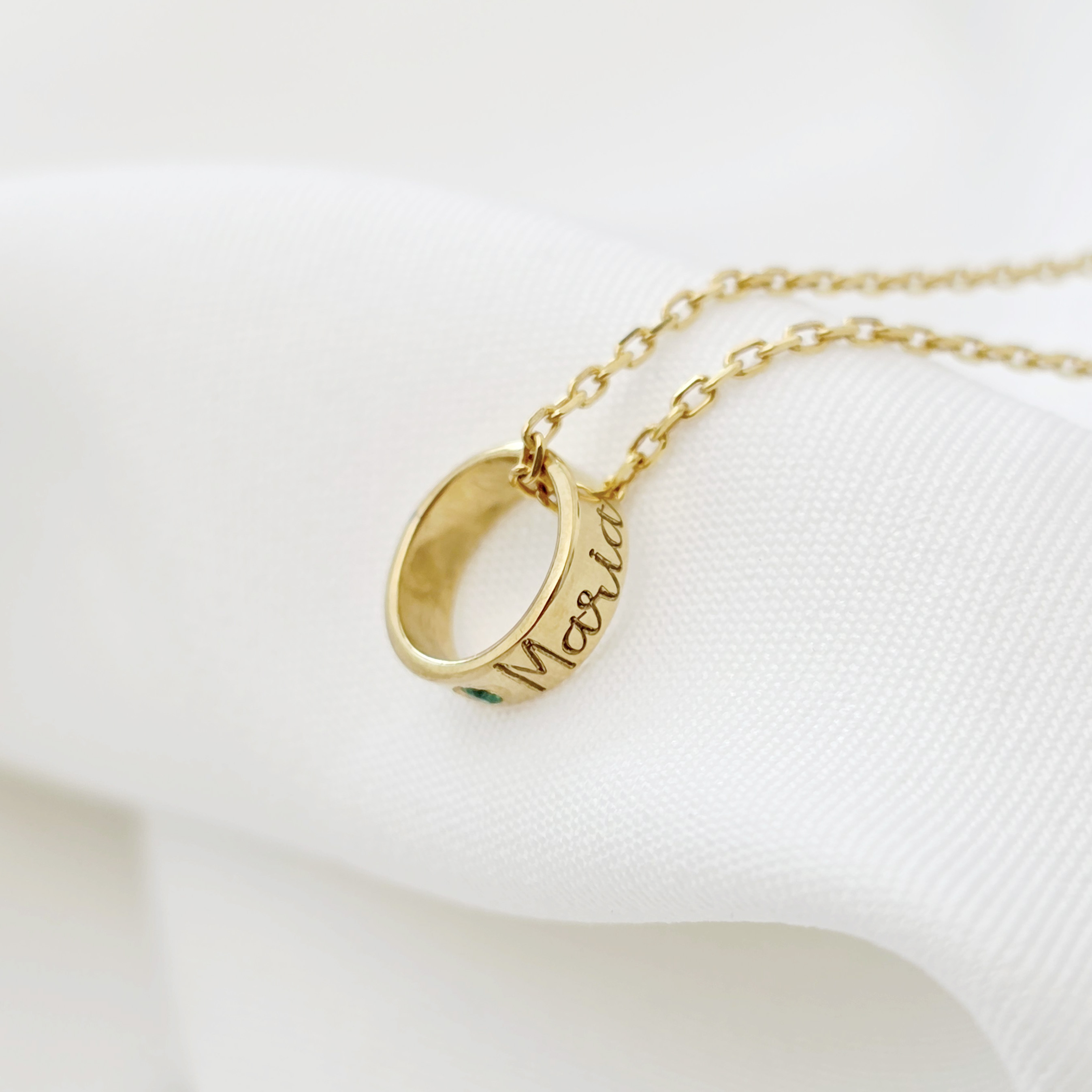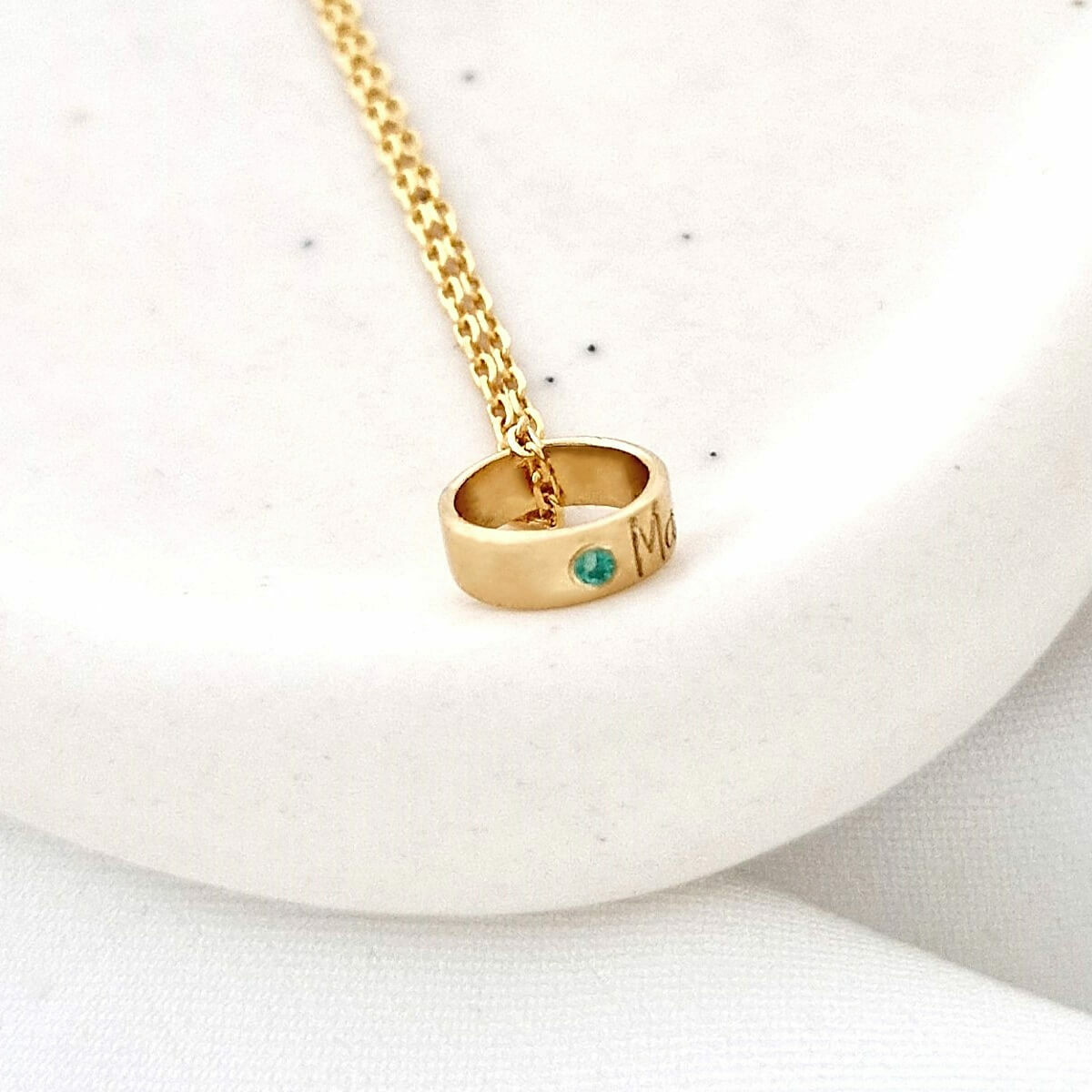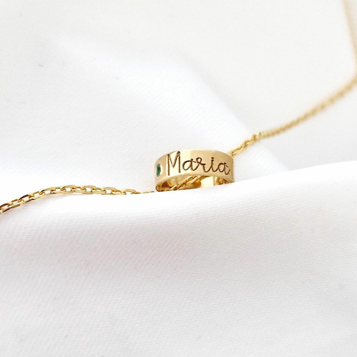 Lantisor Fior al Conexiunii - Model Cilindru cu nume si o Piatra pretioasa - Argint 925 placat cu Aur Galben 18K