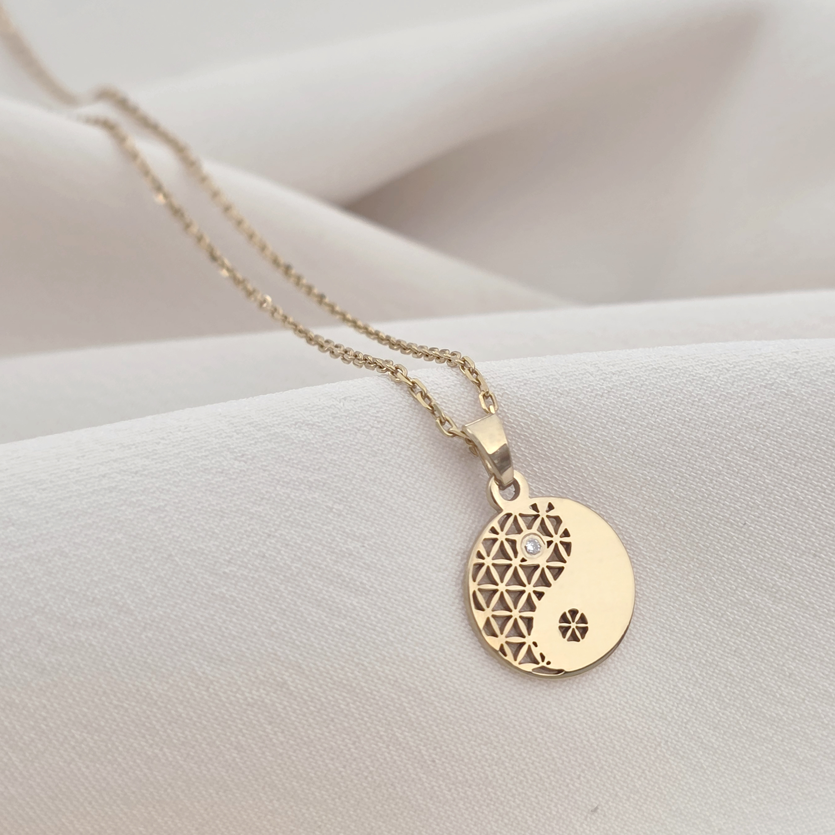 Lantisor Fior al Echilibrului - Model Yin&Yang cu Diamant natural - Argint 925 placat cu Aur Galben 18K