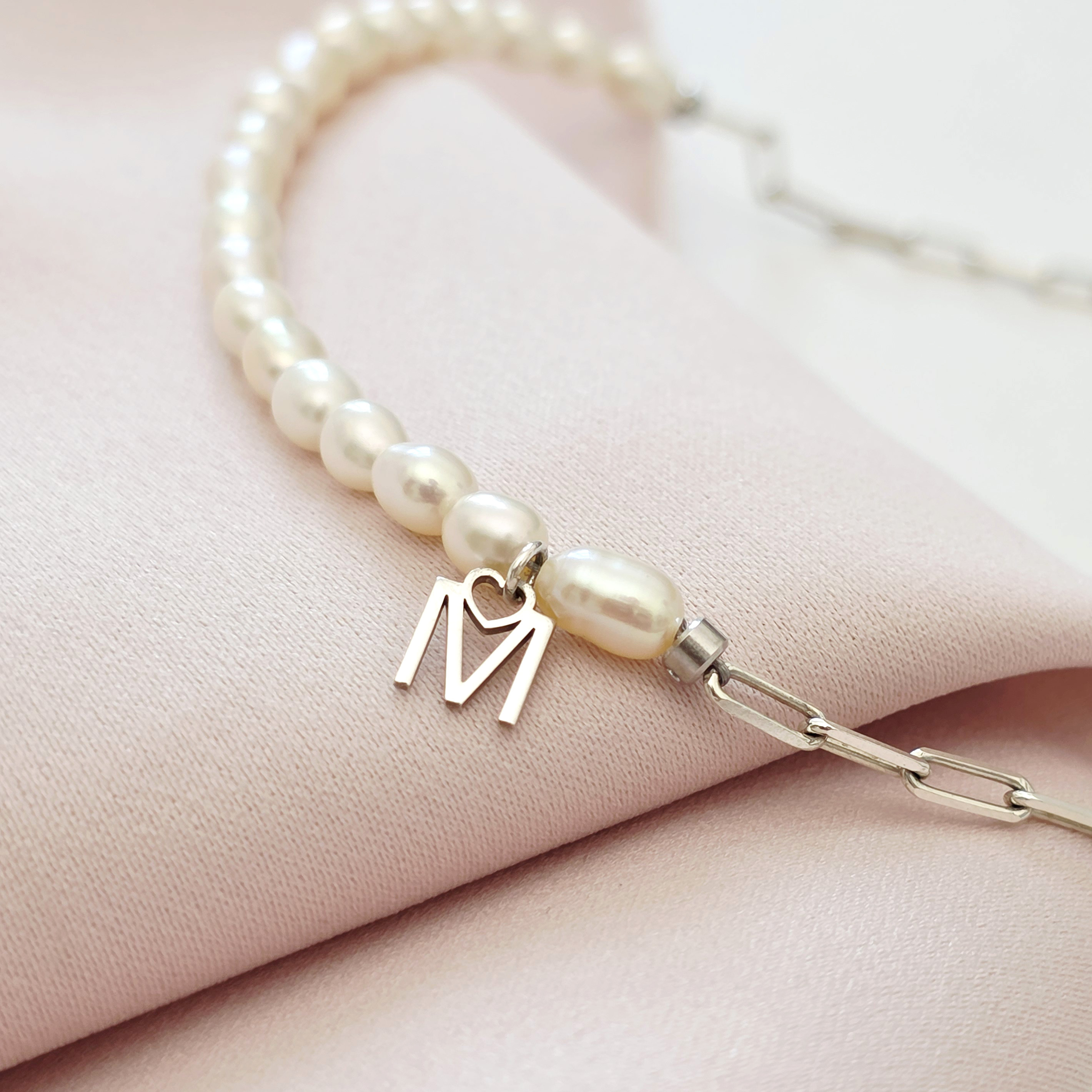 Un accesoriu delicat ce imbina eleganta perlelor naturale cu unicitatea unei initiale