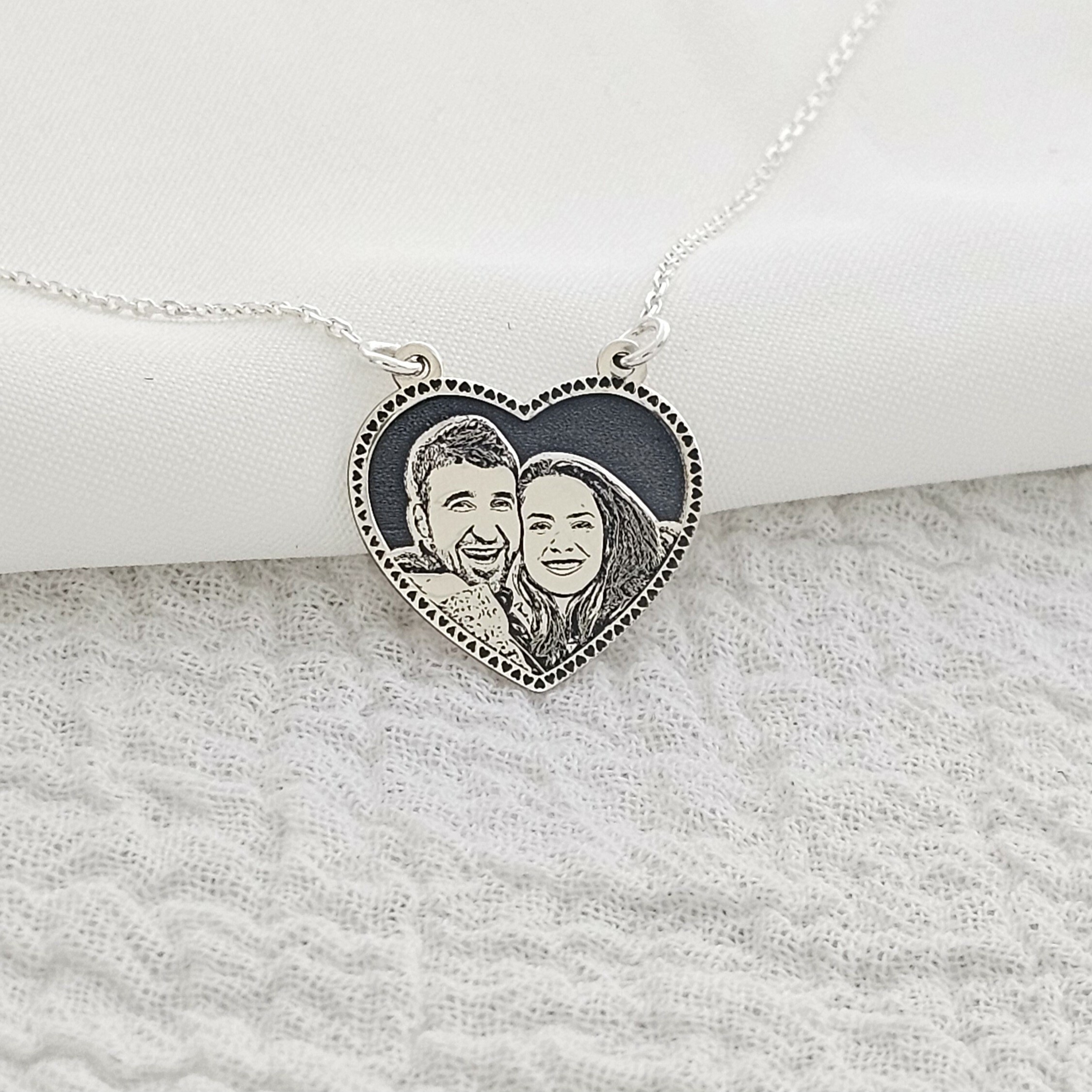 Lantisor personalizata cu poza - Inima cu poveste - Model fotogravura relief - Argint 925