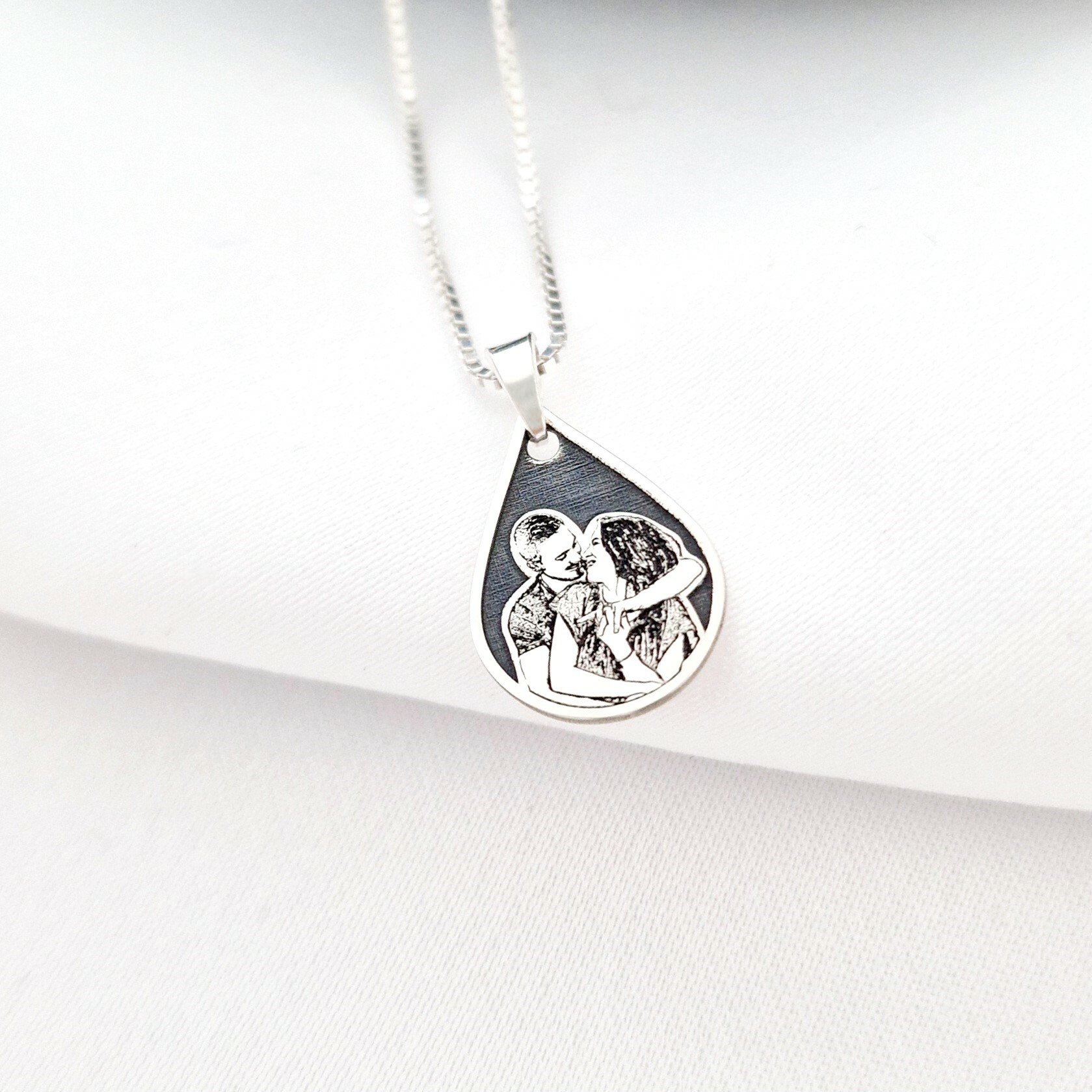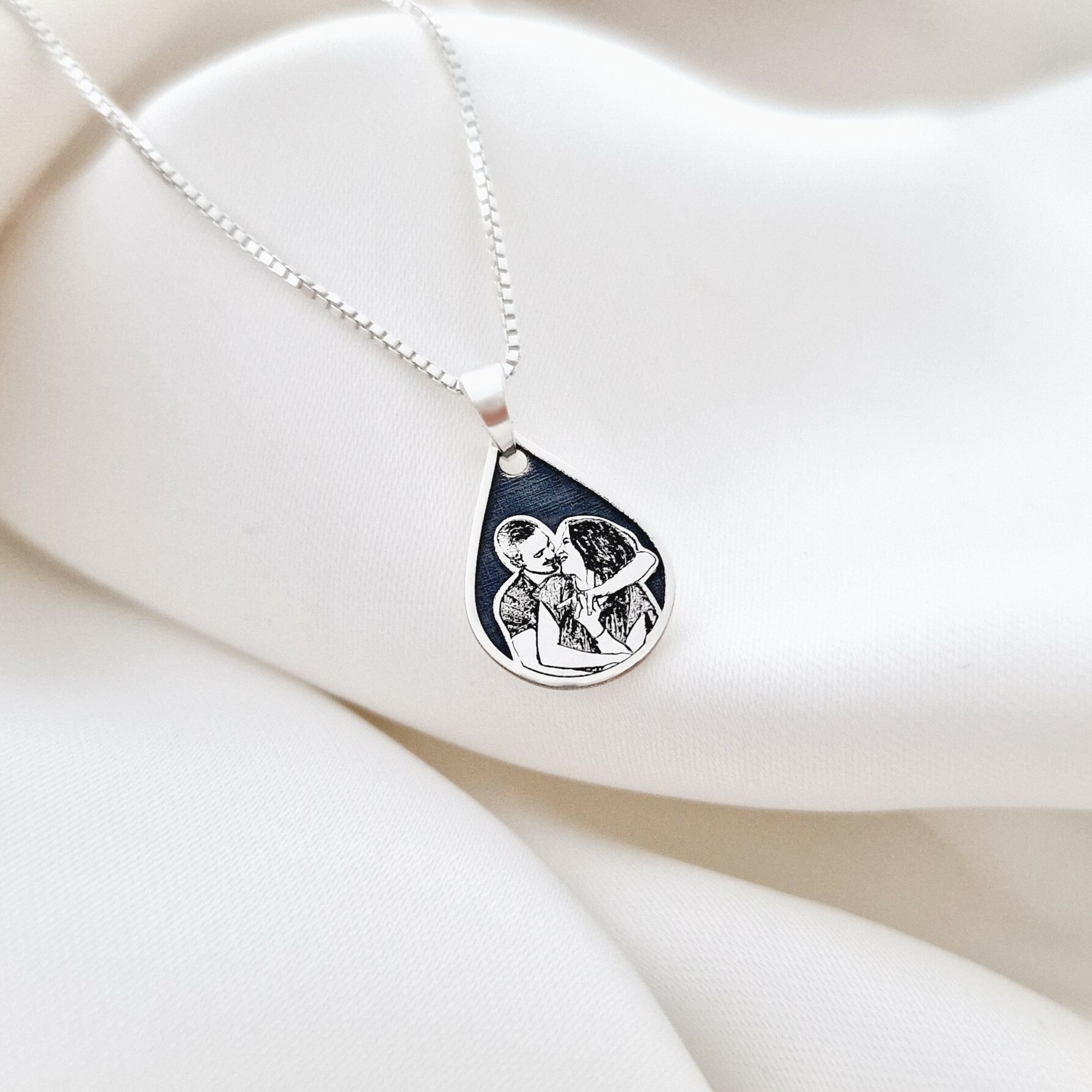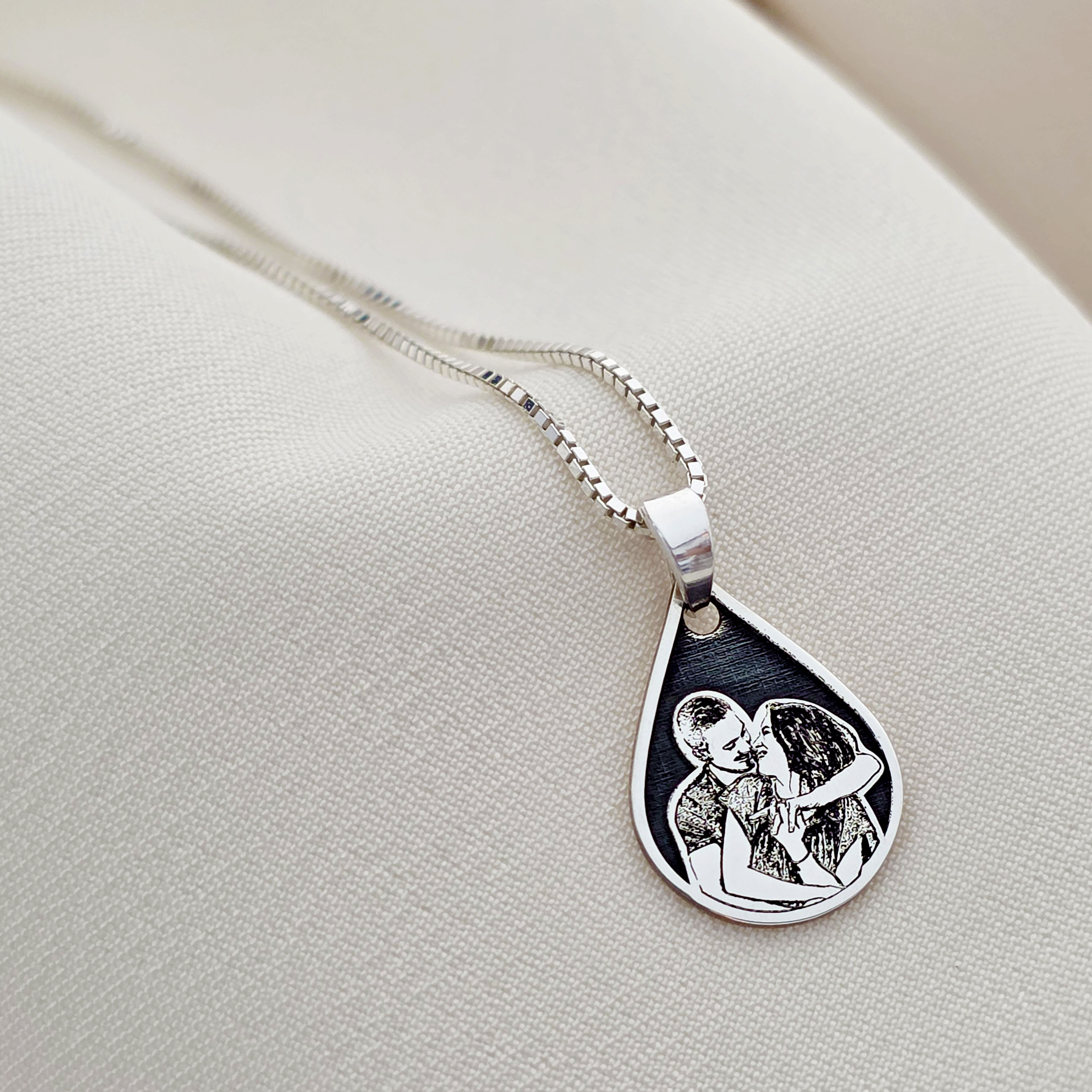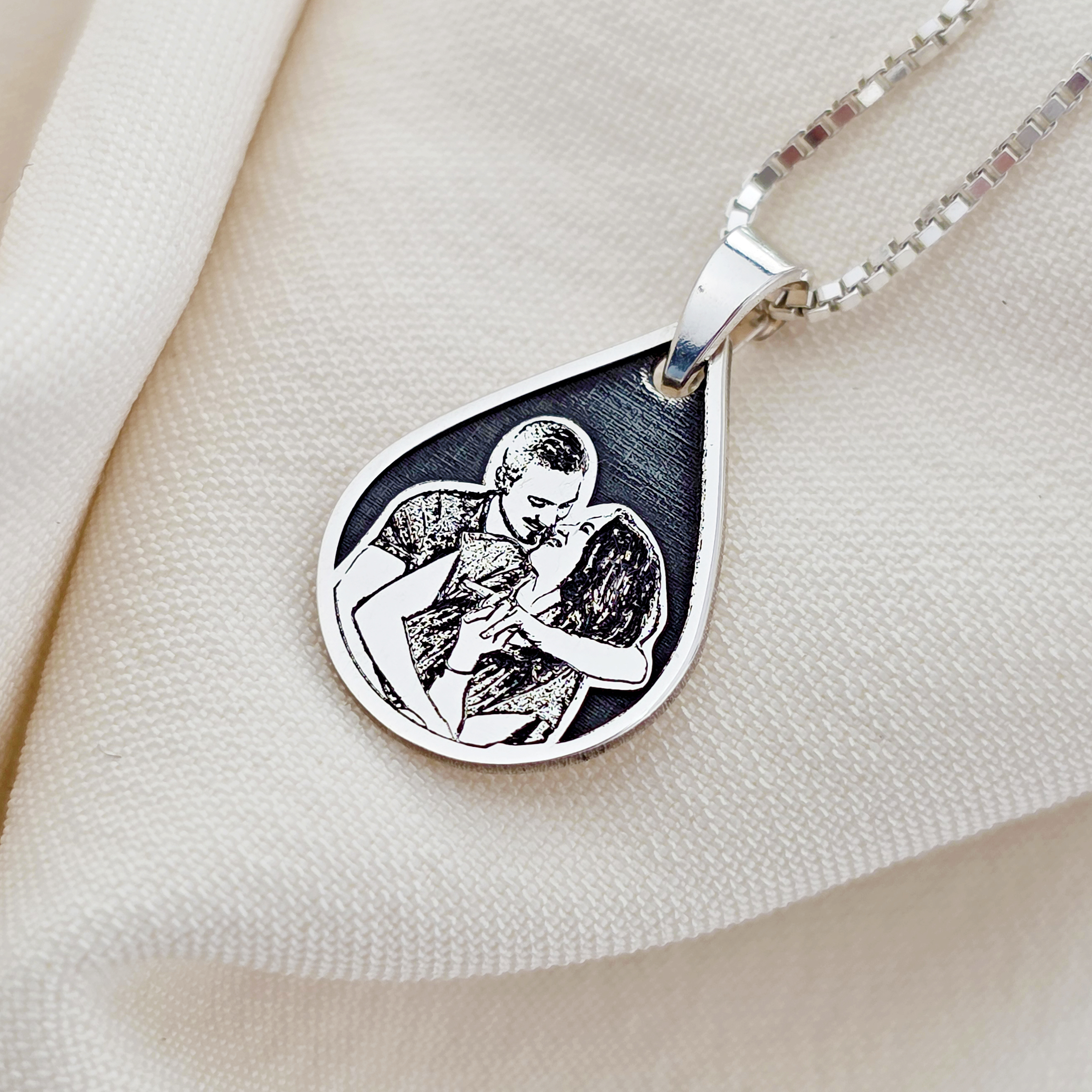 Lantisor personalizata cu poza - Lacrima Amintirilor - Model fotogravura relief - Argint 925