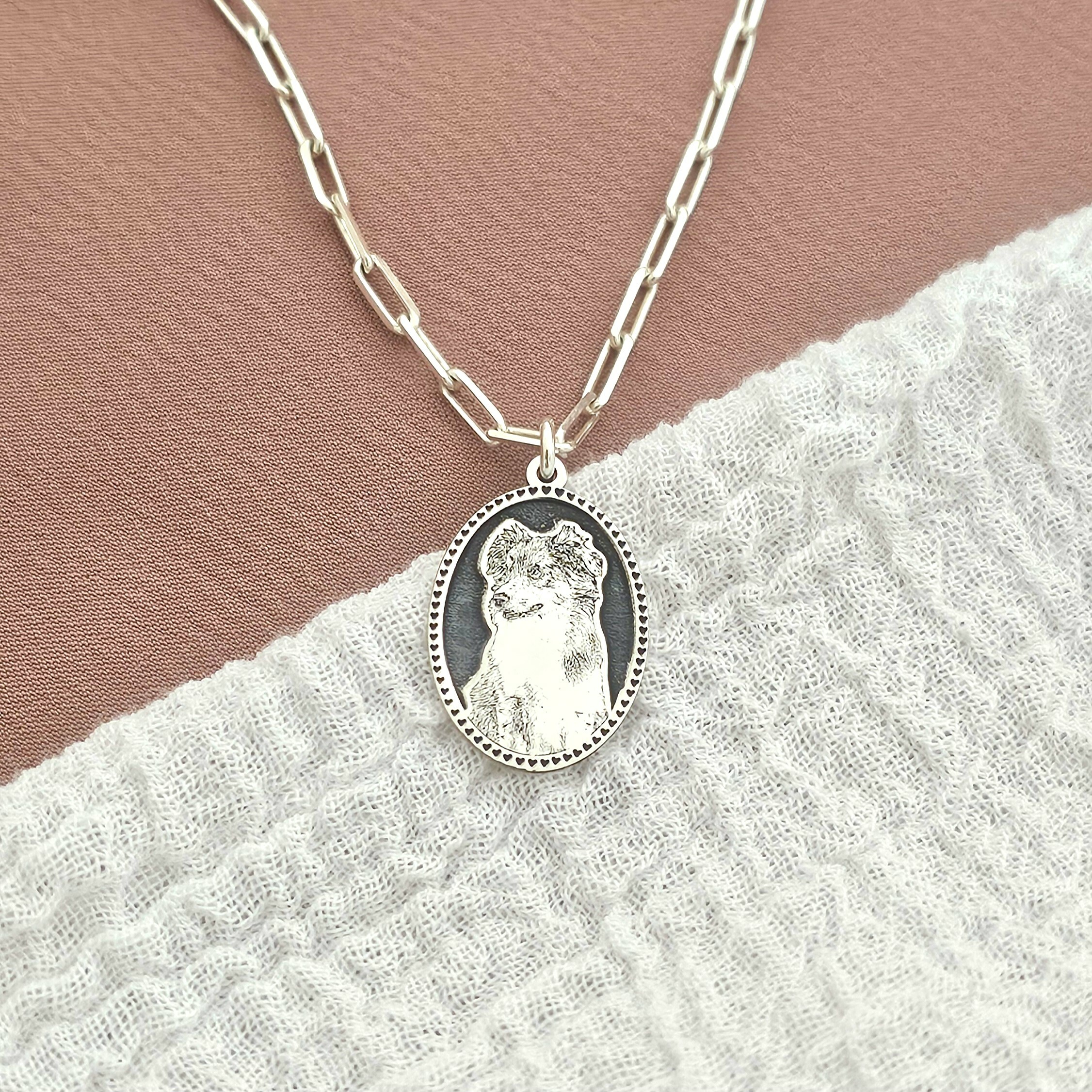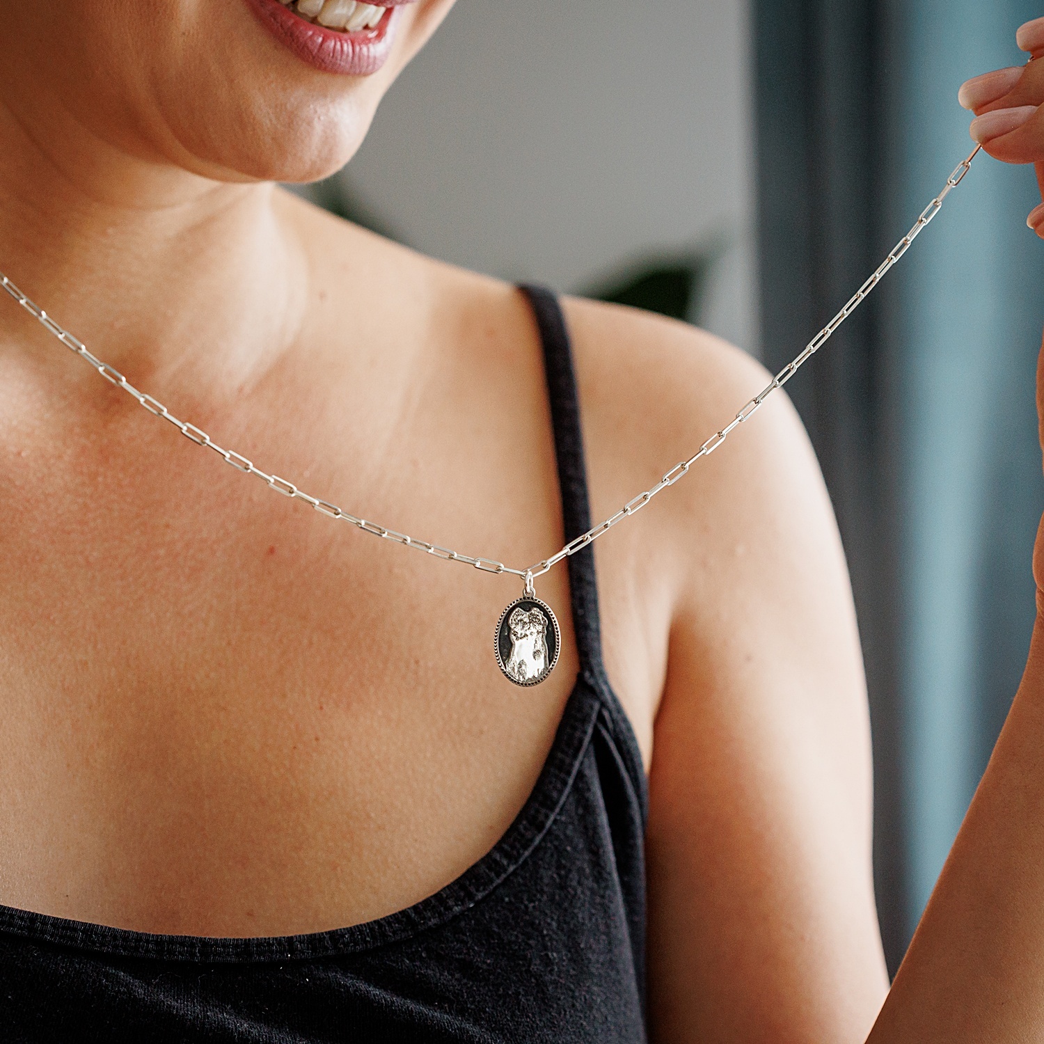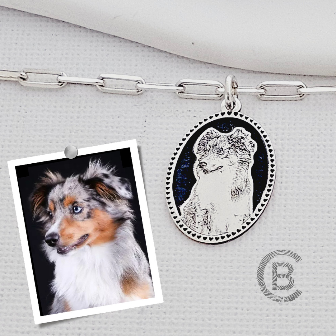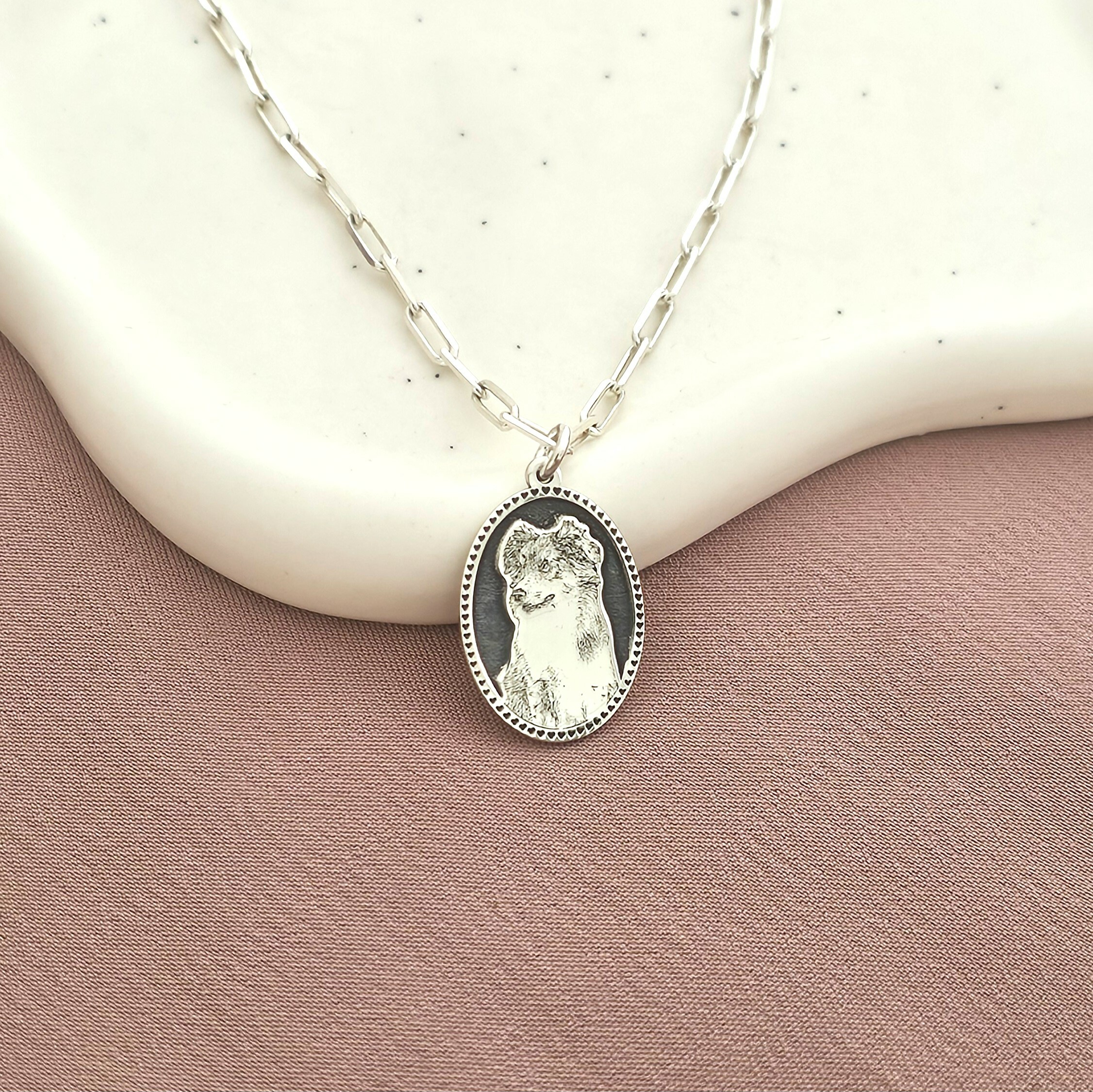 Lantisor personalizata cu poza - Ovalul Amintirilor - Model fotogravura relief - Argint 925