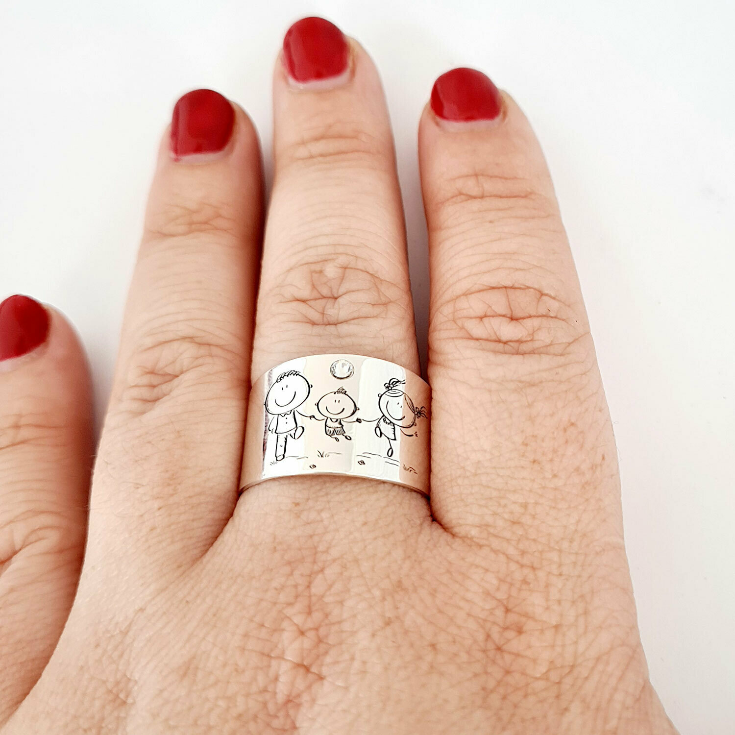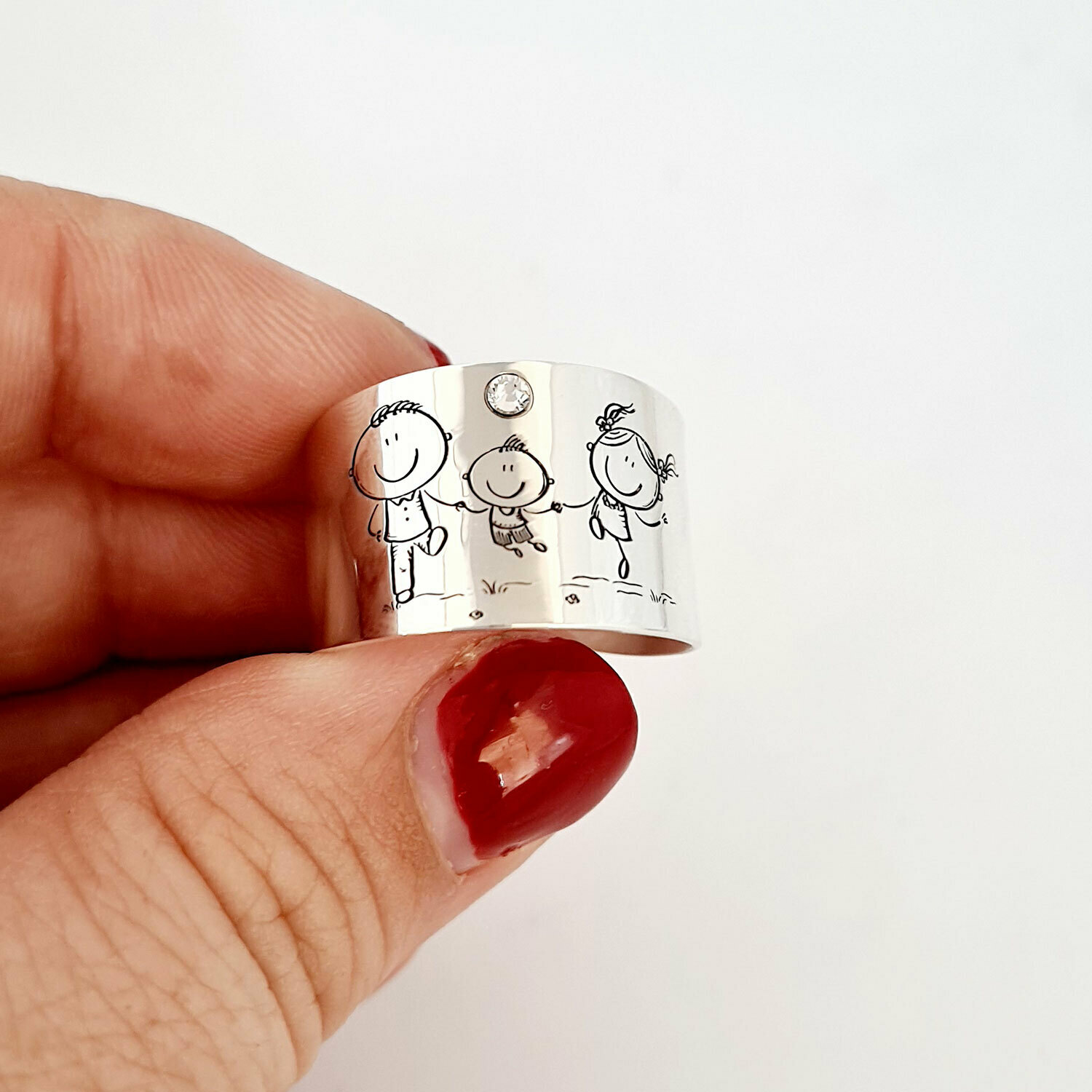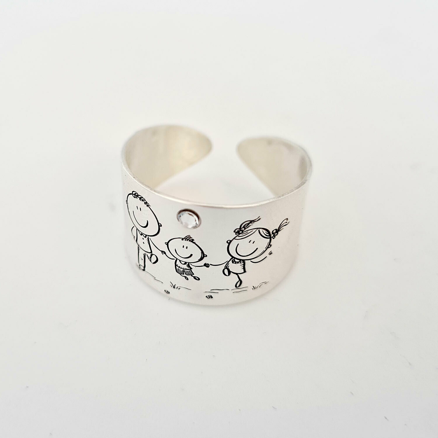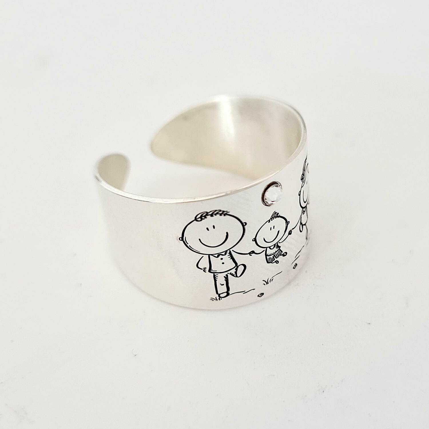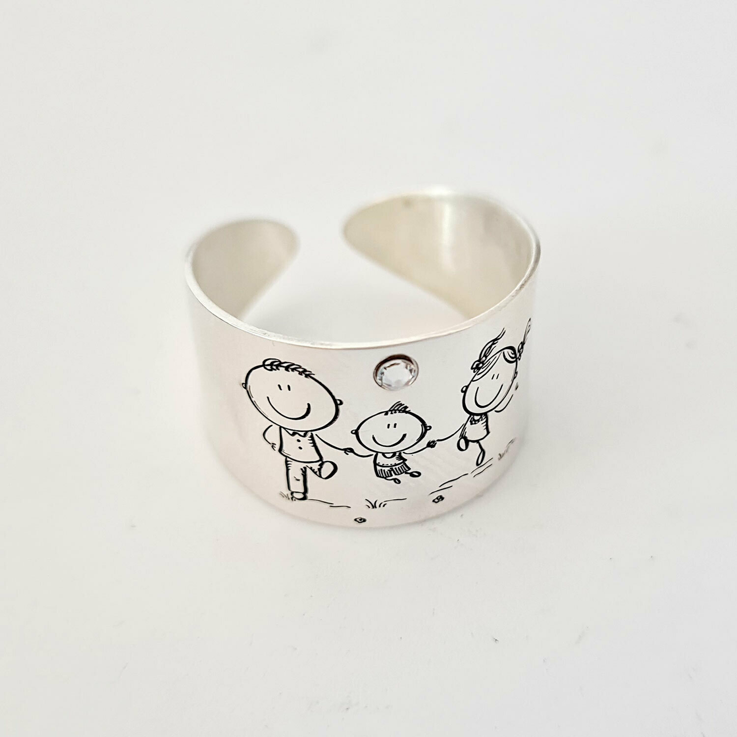 Inel personalizat - 3 copii - Model lat - Argint 925 - Cristal Swarovski