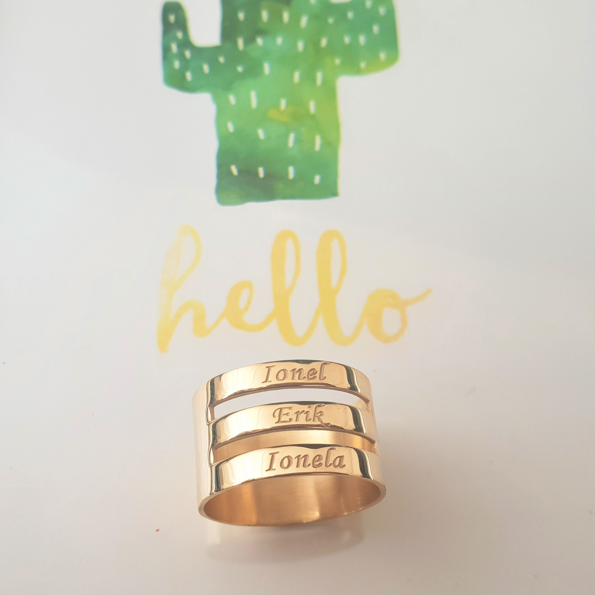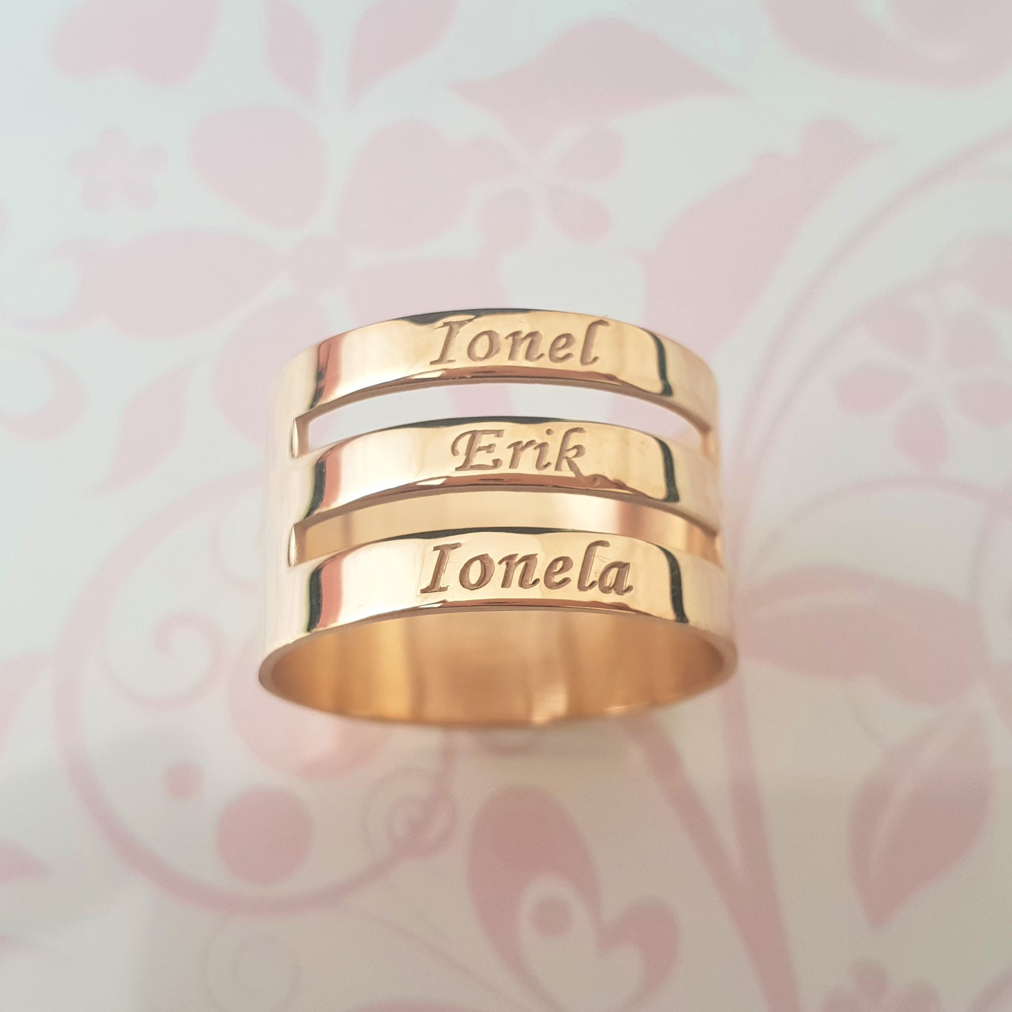 Inel personalizat - 3 nume - Argint 925 placat cu Aur galben 18 k