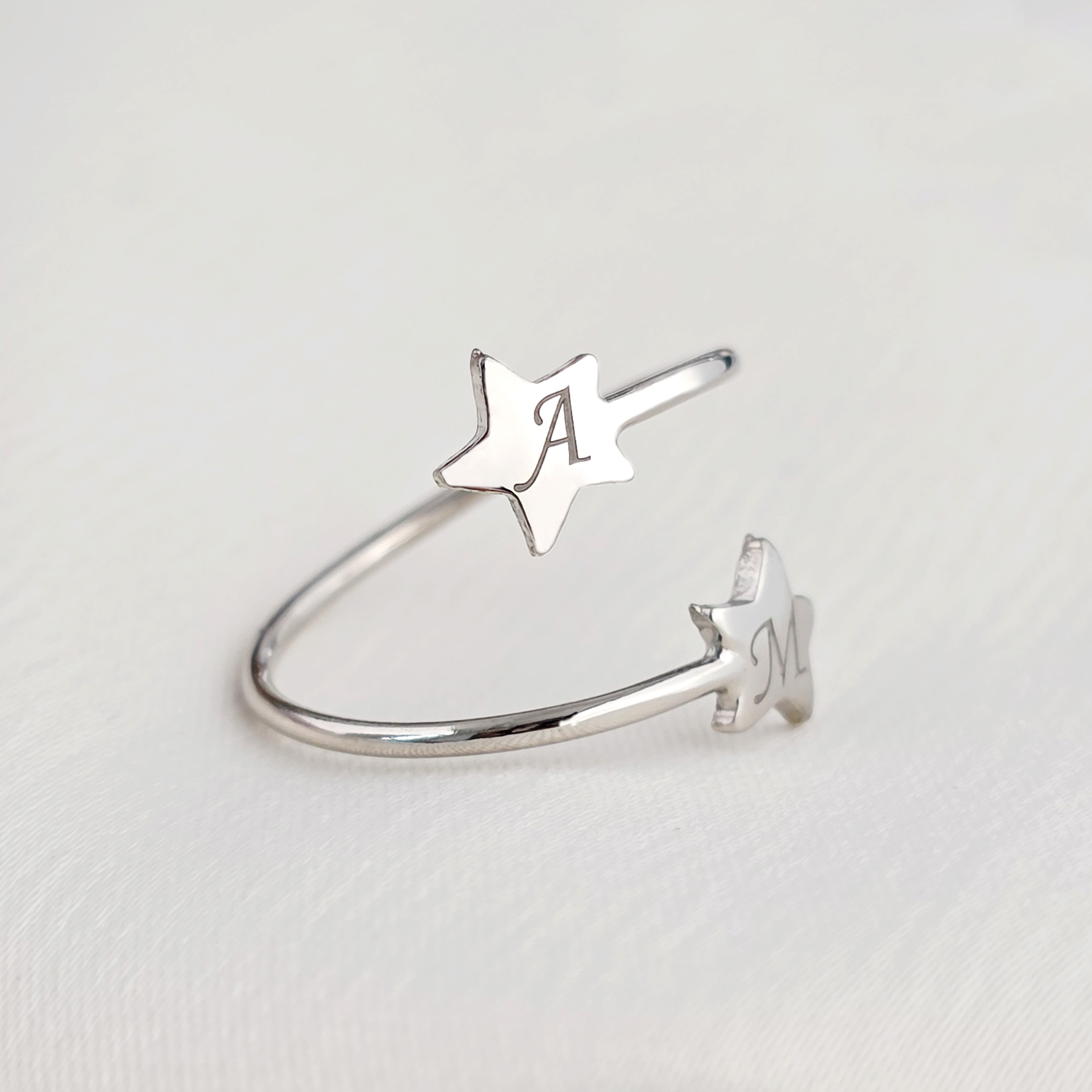Inel 2 stelute - Gravura initiale personalizata - Argint 925 - Model reglabil