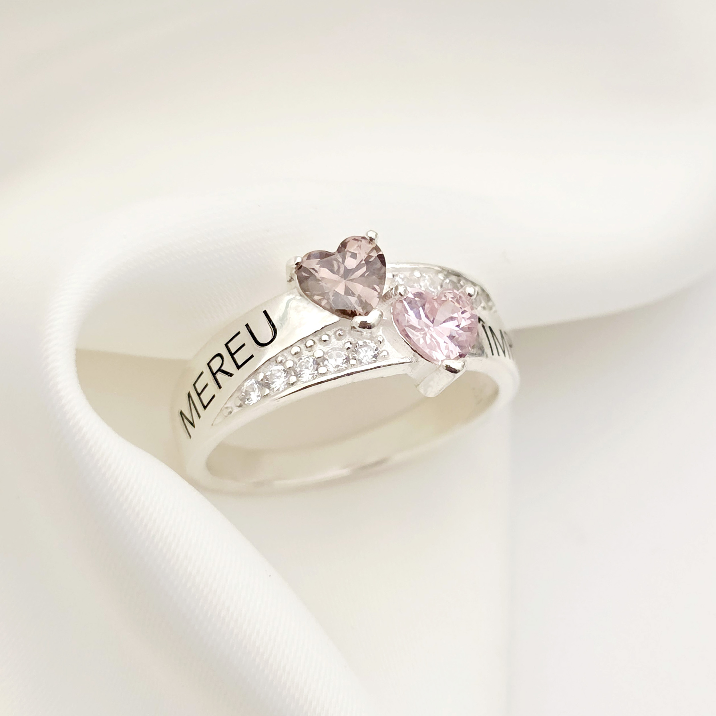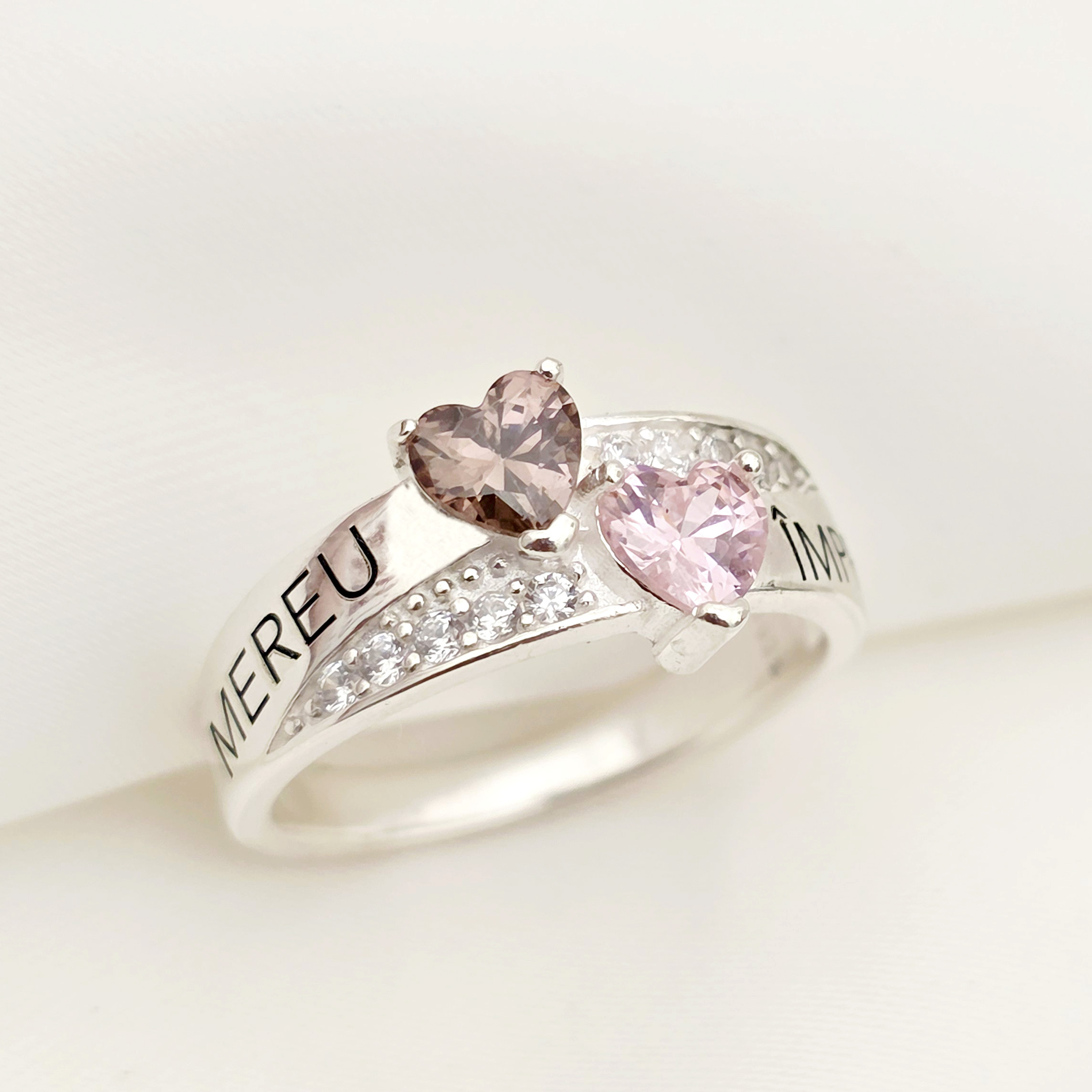 Inelul „Destine Unite” este realizat din Argint 925, îmbinând eleganța cu emoția personalizării. Gravarea celor două nume alături de cristalele Zirconia creează o bijuterie unică și strălucitoare. Designul său simbolic reflectă puterea unei iubiri care rezistă în timp.