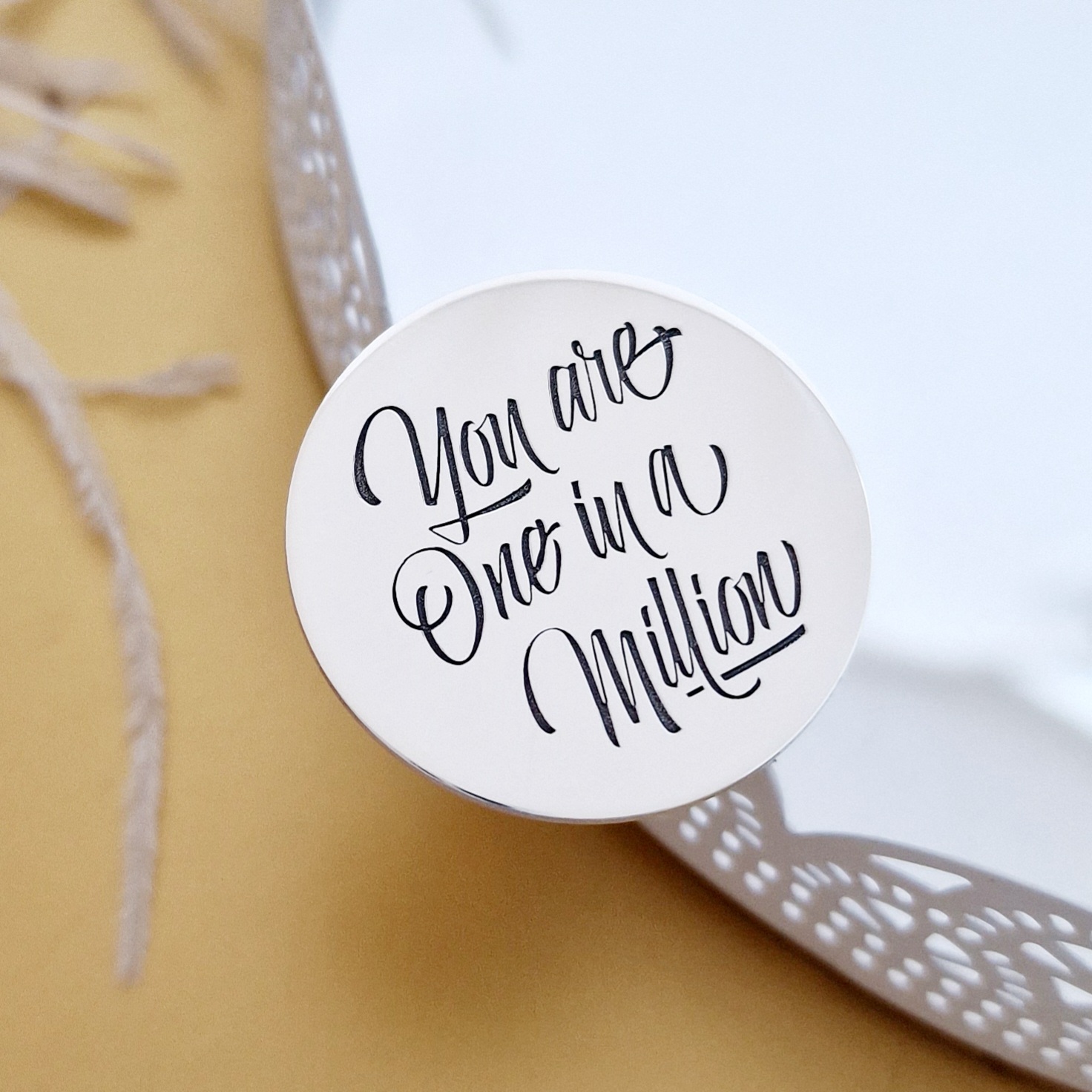 - Cercul are diametrul de 32 mm si poate fi gravat cu un mesaj sau simbol dorit