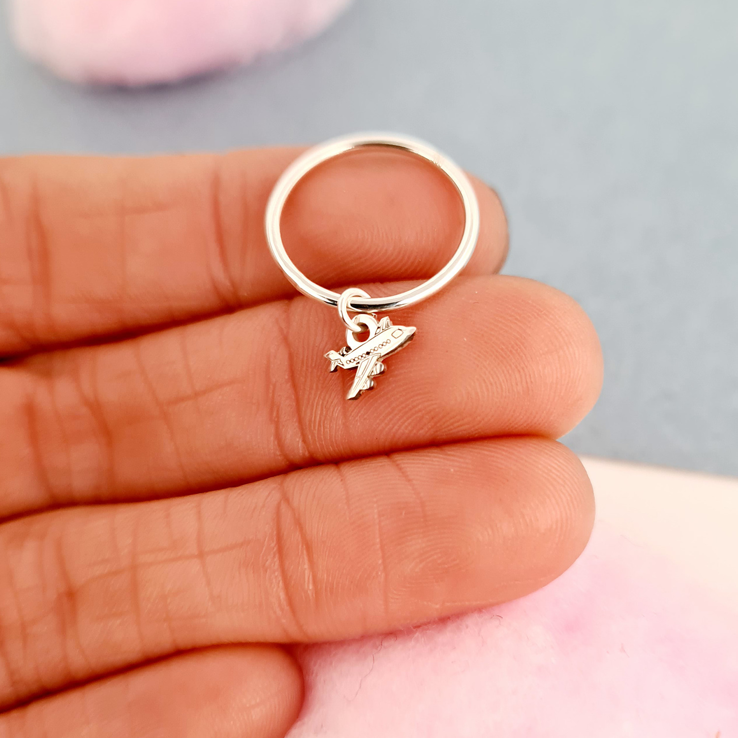 - Charm-ul are dimensiunea de 7x5 mm si este atasat de inel printr-o veriga.