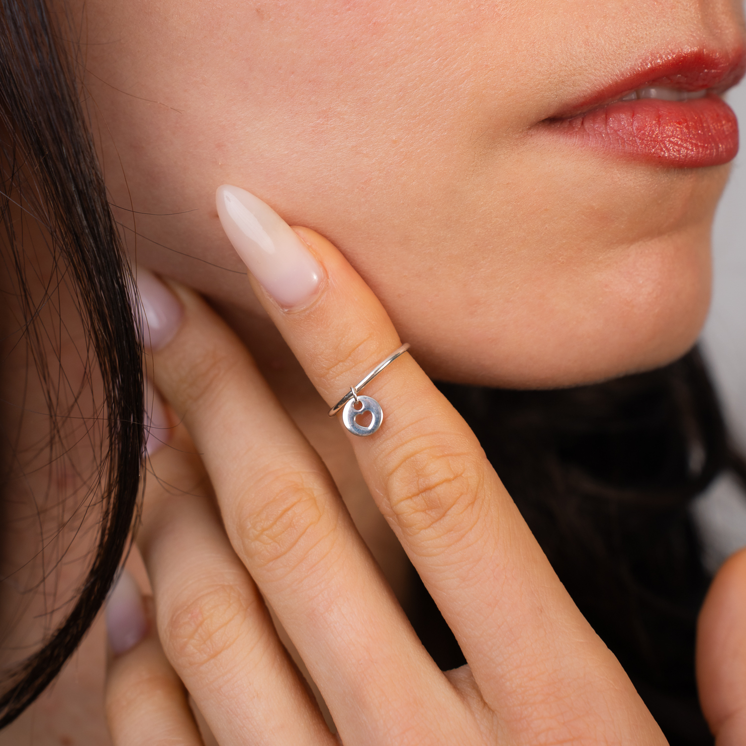 - Charm-ul are dimensiunea de 6x6 mm si este atasat de inel printr-o veriga.