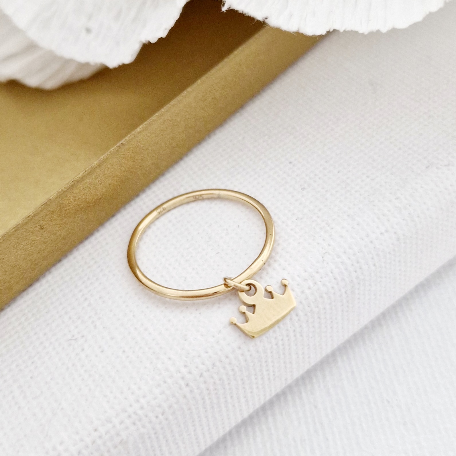 - Charm-ul are dimensiunea de 8x6 mm si este atasat de inel printr-o veriga.