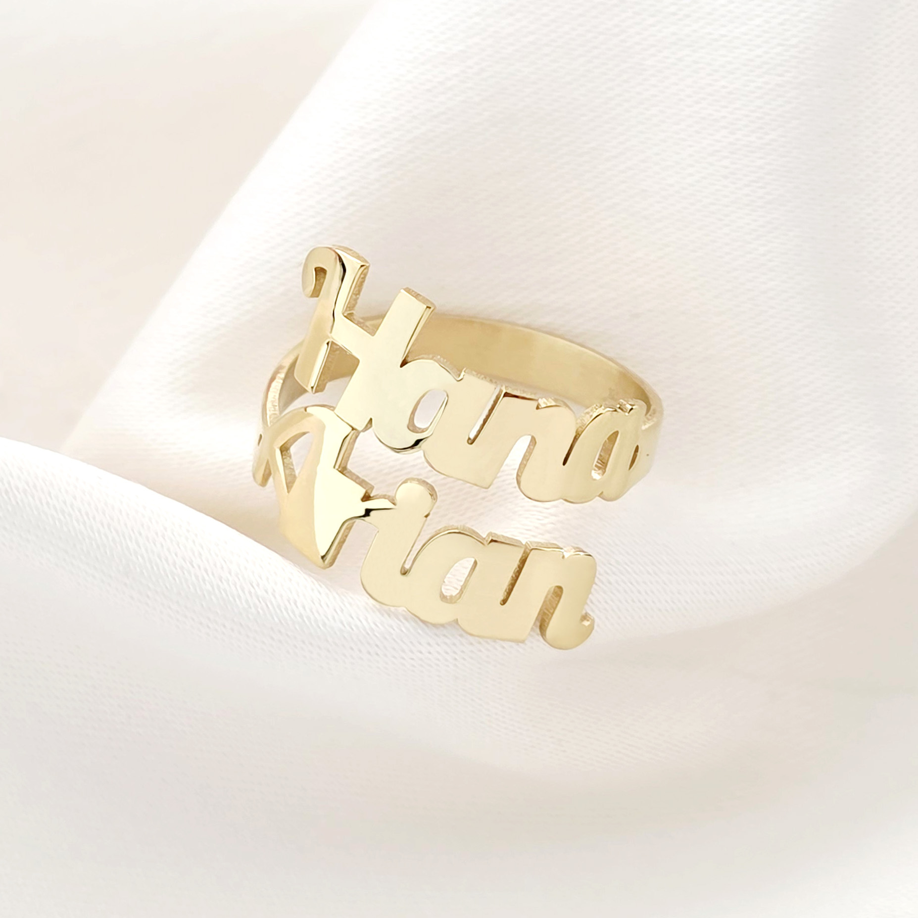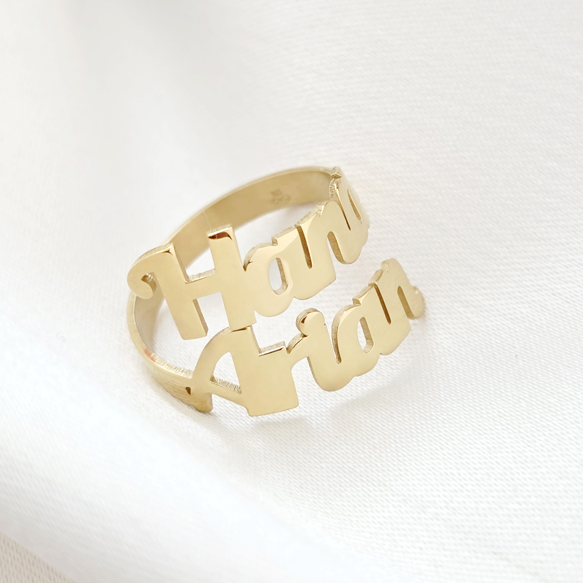Inel personalizat cu 2 nume decupate - Argint 925 placat cu Aur Galben 18K