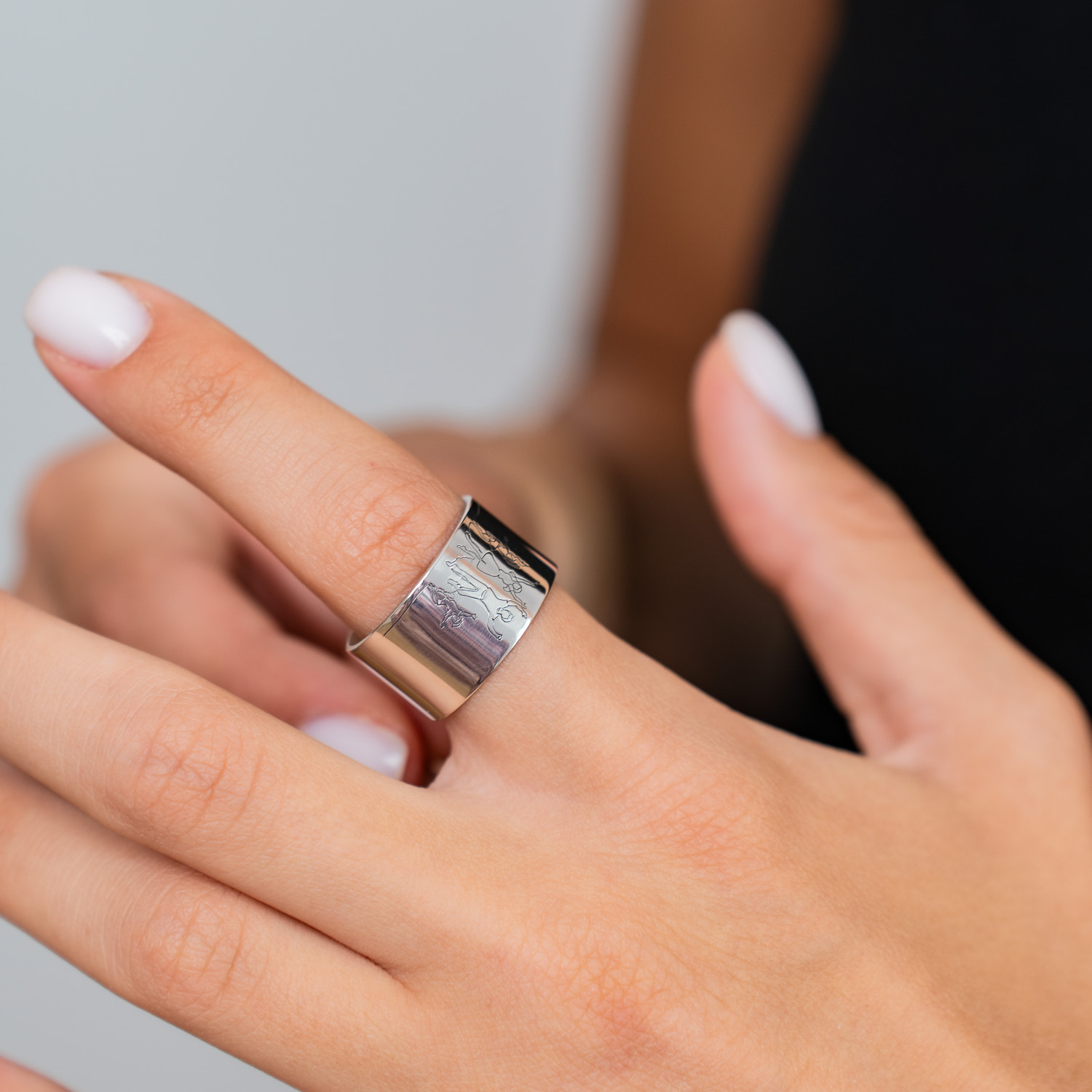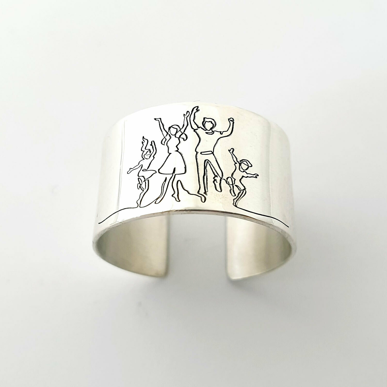 Dragostea si bucuria din cadrul unei familii este reprezentata de o gravura personalizata pe un inel creat din Argint 925. Bijuteria poate fi placata cu Aur de 18 k galben sau roz.