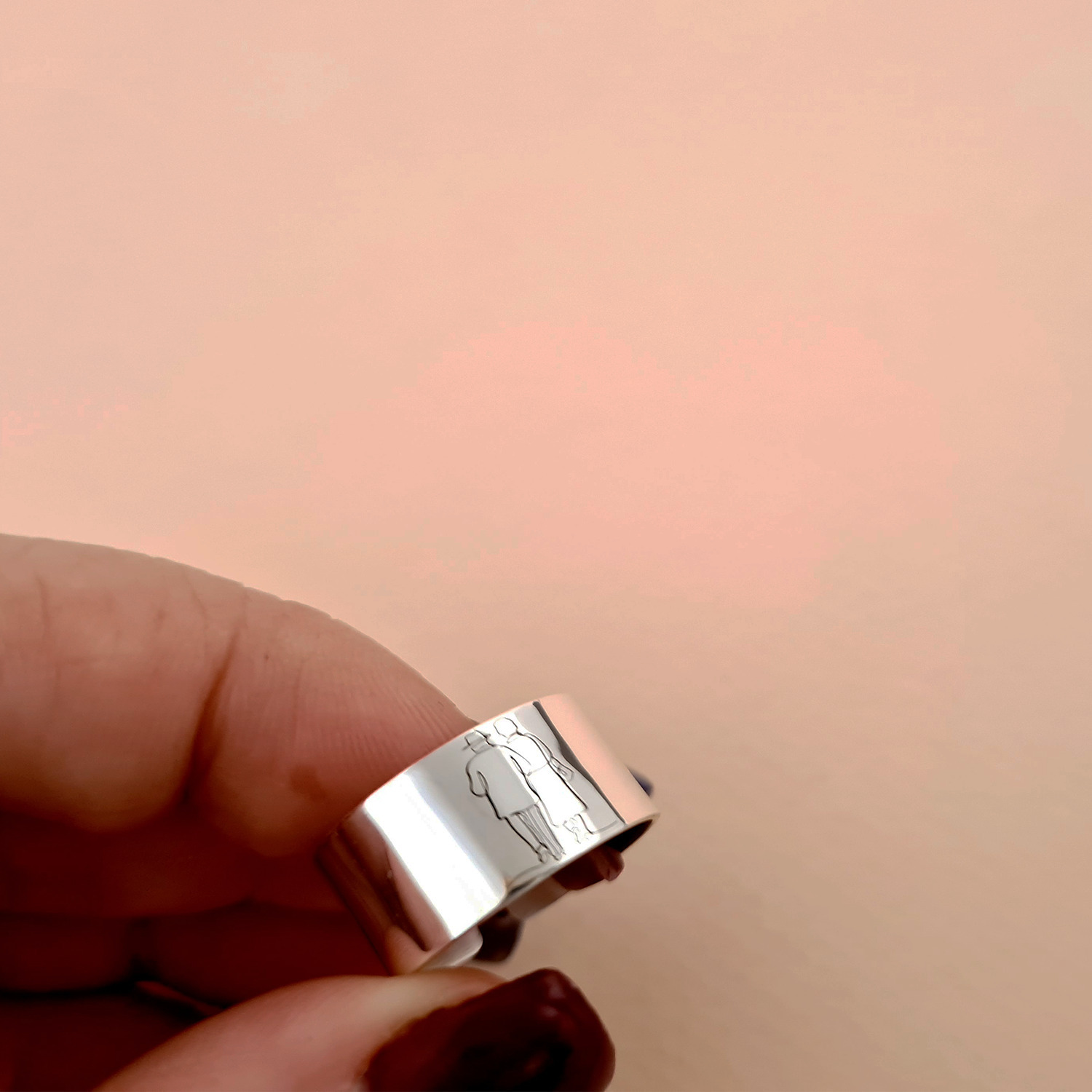 - Inelul este creat din Argint 925 prin taiere si gravare laser