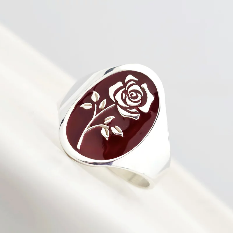 Acest inel delicat din Argint 925 surprinde frumusețea trandafirului printr-un email roșu intens, aplicat cu măiestrie. Designul oval și detaliile fine conferă piesei un aer romantic și sofisticat. Realizat din materiale de calitate, inelul este alegerea perfectă pentru a adăuga o notă de culoare și eleganță fiecărei ținute.