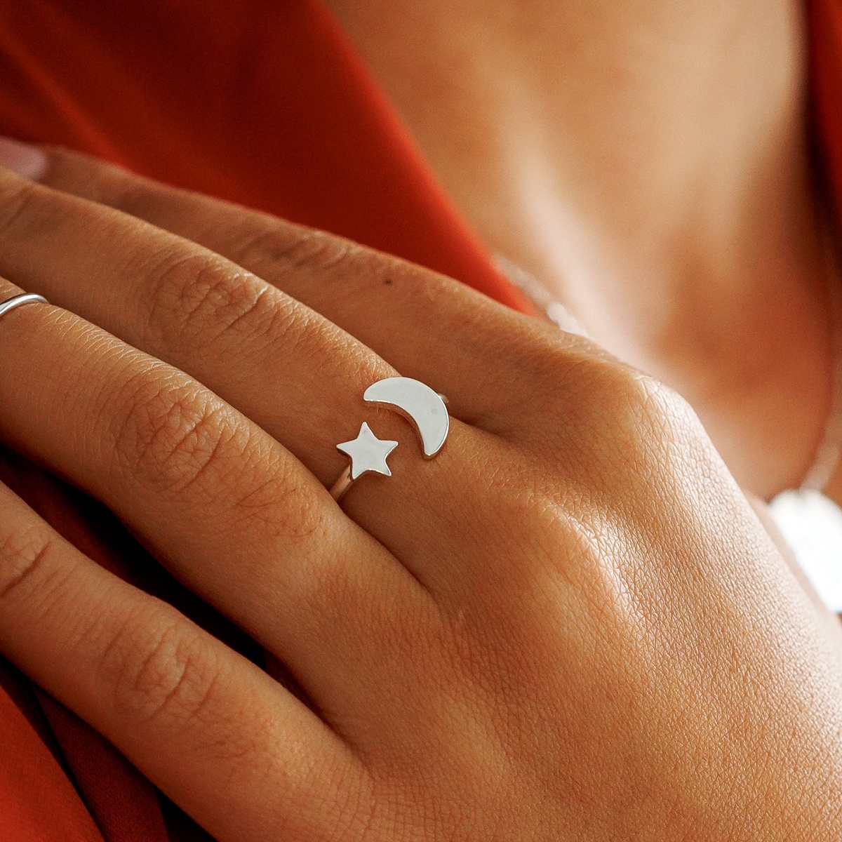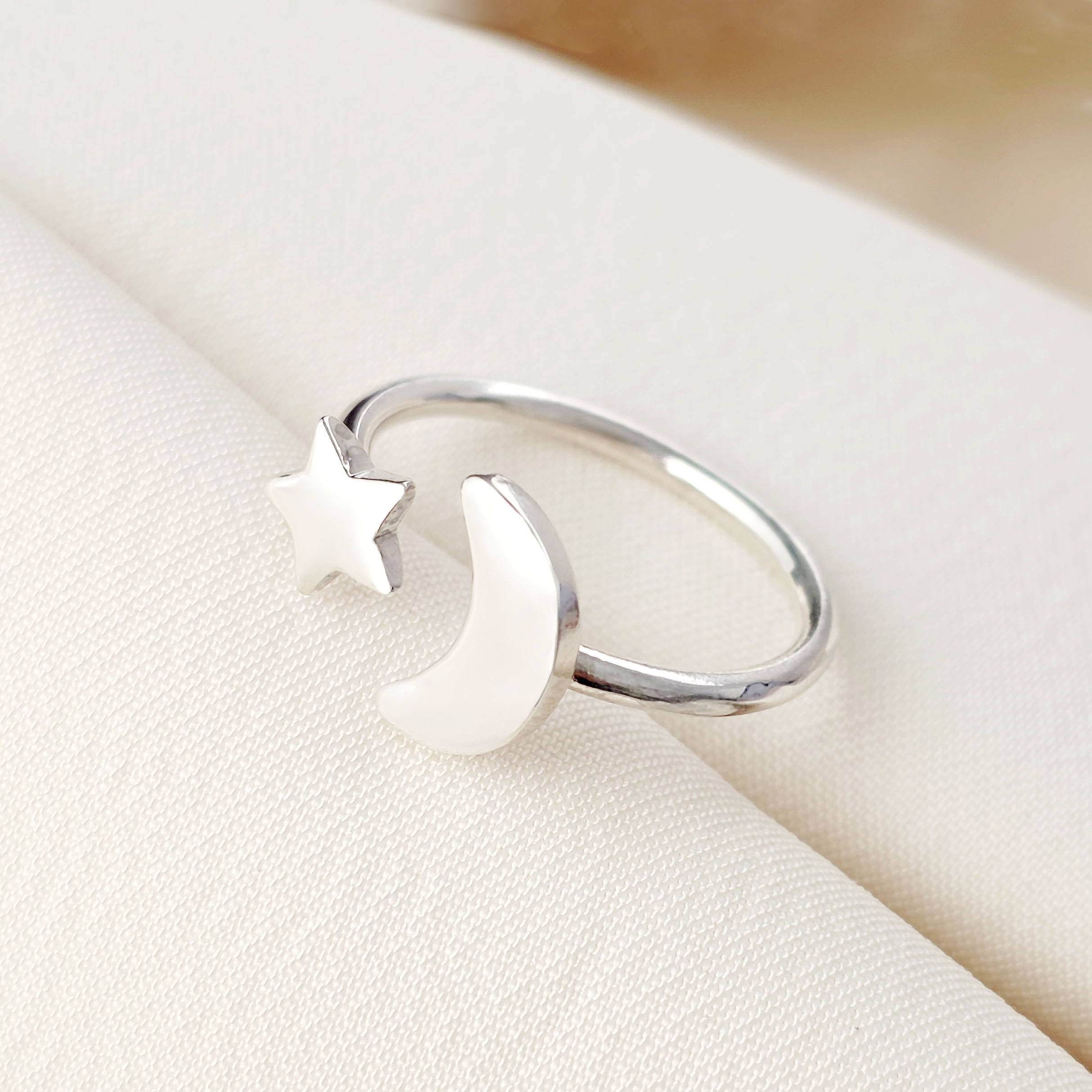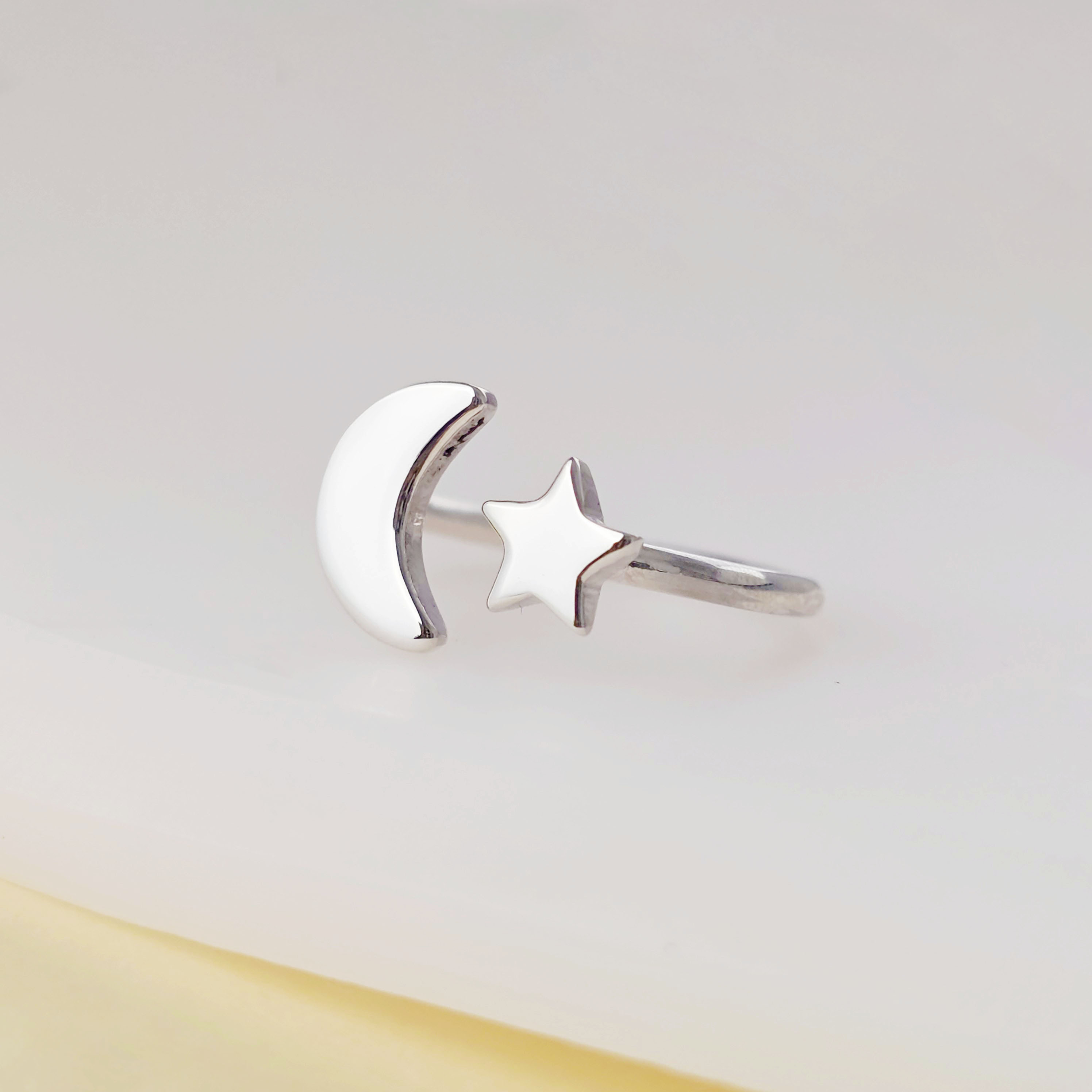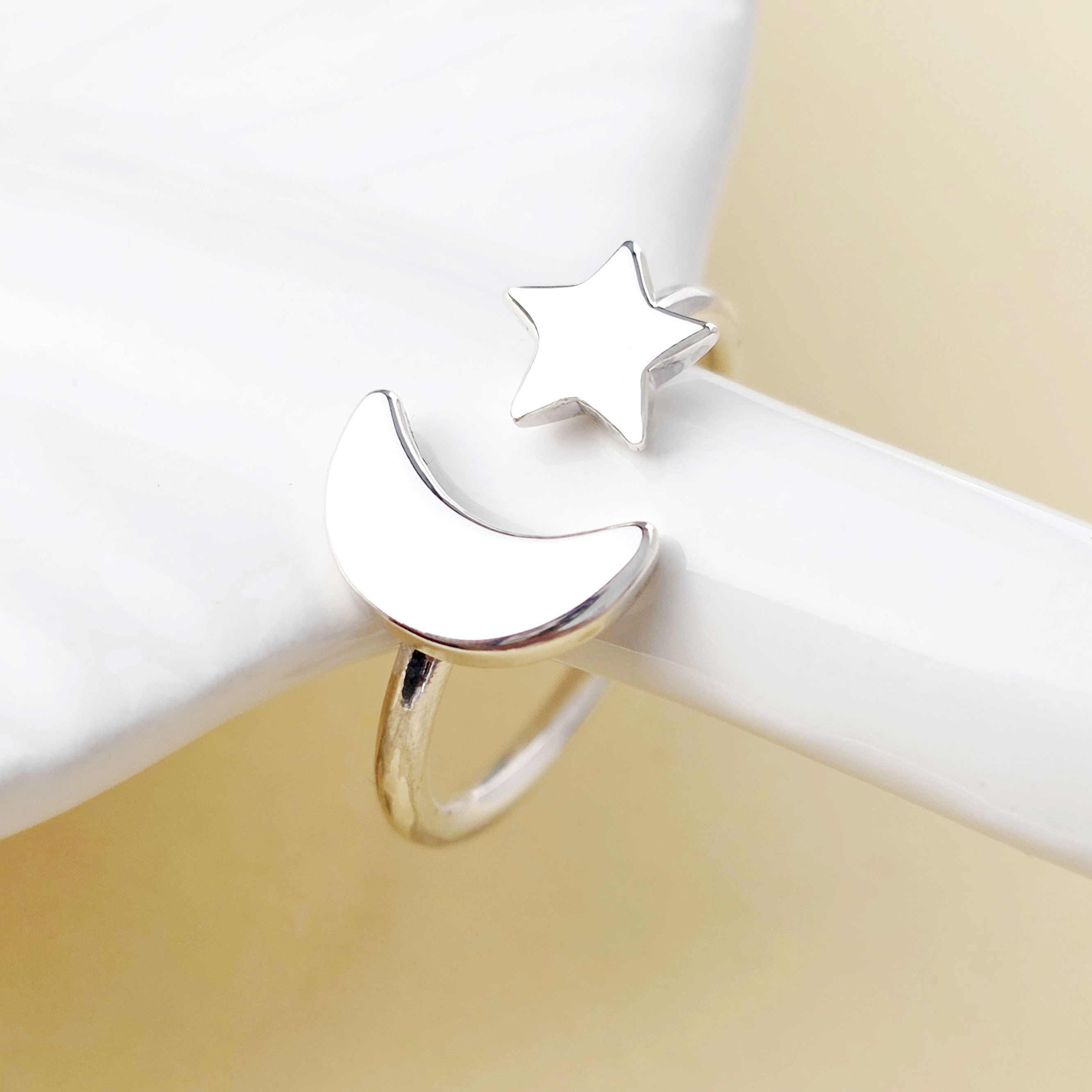 Inel semiluna si steluta - Gravura initiale personalizata - Argint 925 - Model reglabil