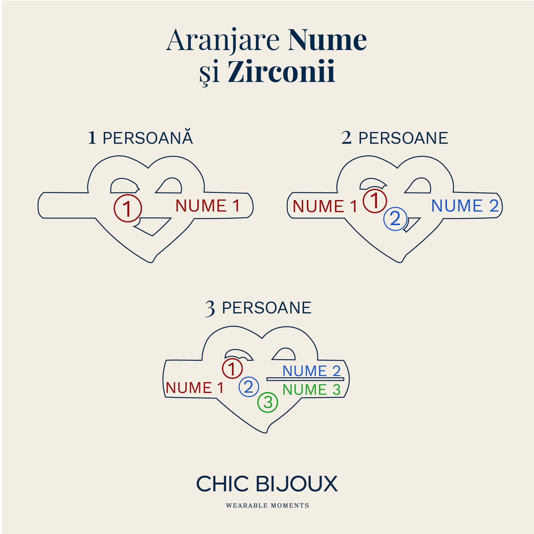 - Decorare: 3 nume gravura laser de precizie, cristale Zirconia