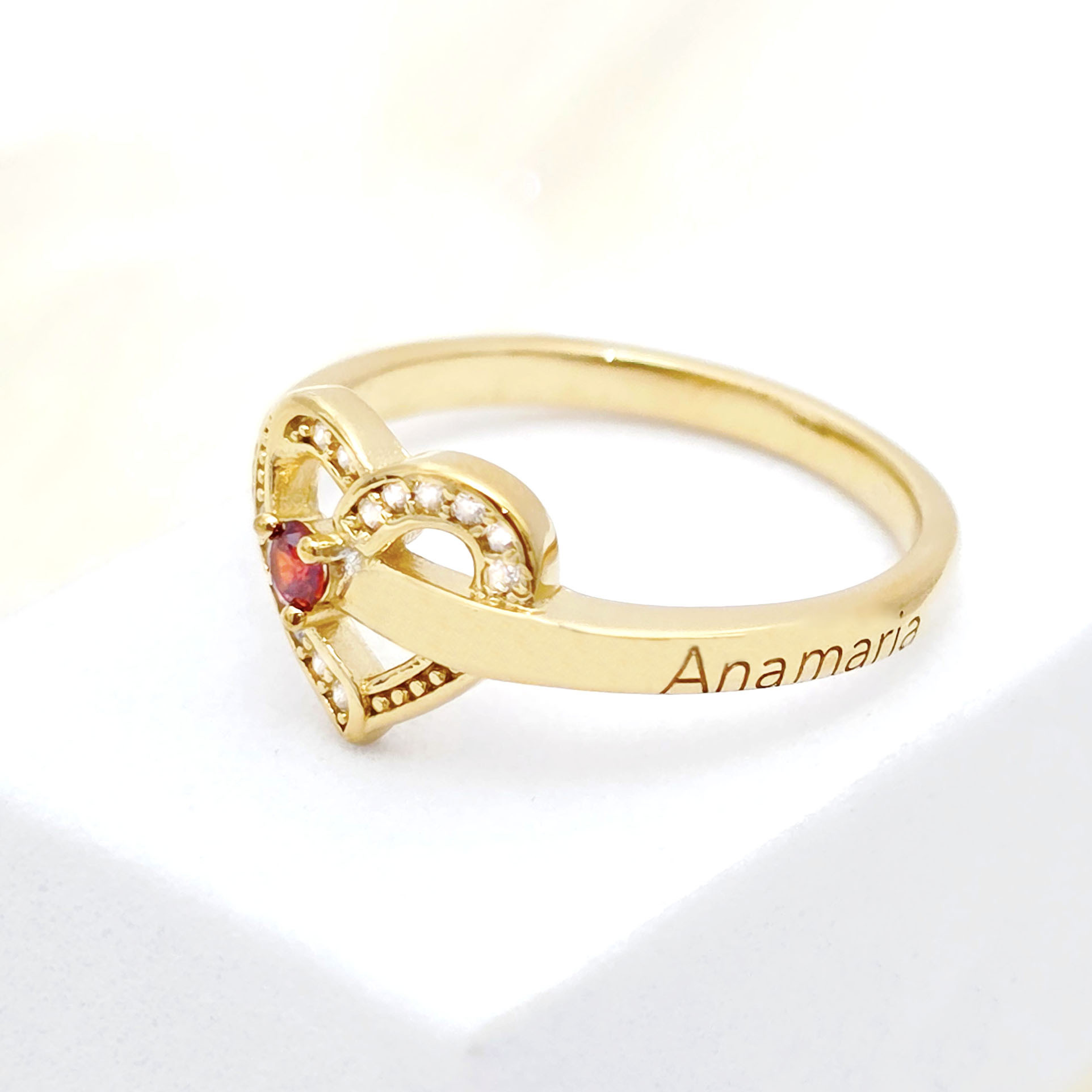 Inelul „Un Amore” este confecționat din Argint 925 placat cu Aur Galben 18K de cea mai înaltă calitate, oferind un luciu impecabil și o durabilitate remarcabilă. Cristalele Zirconia adaugă o notă de rafinament și strălucire, perfectă pentru momentele pline de emoție. Gravura cu un nume transformă această bijuterie într-o declarație personală de dragoste și afecțiune.