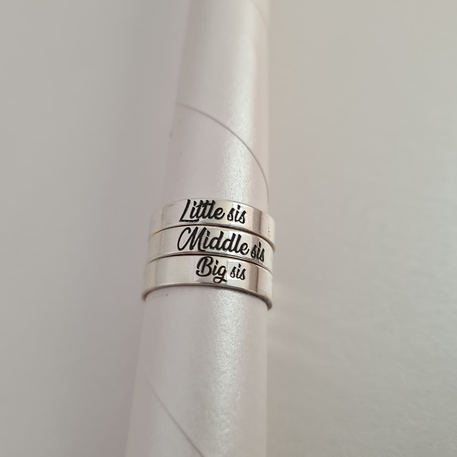 Set 3 inele personalizate - Little/Middle/Big sis - Argint 925