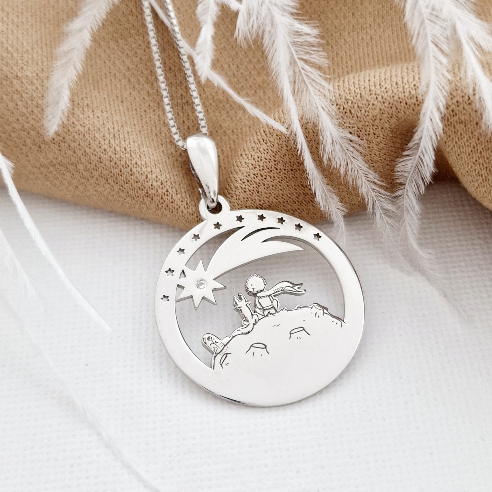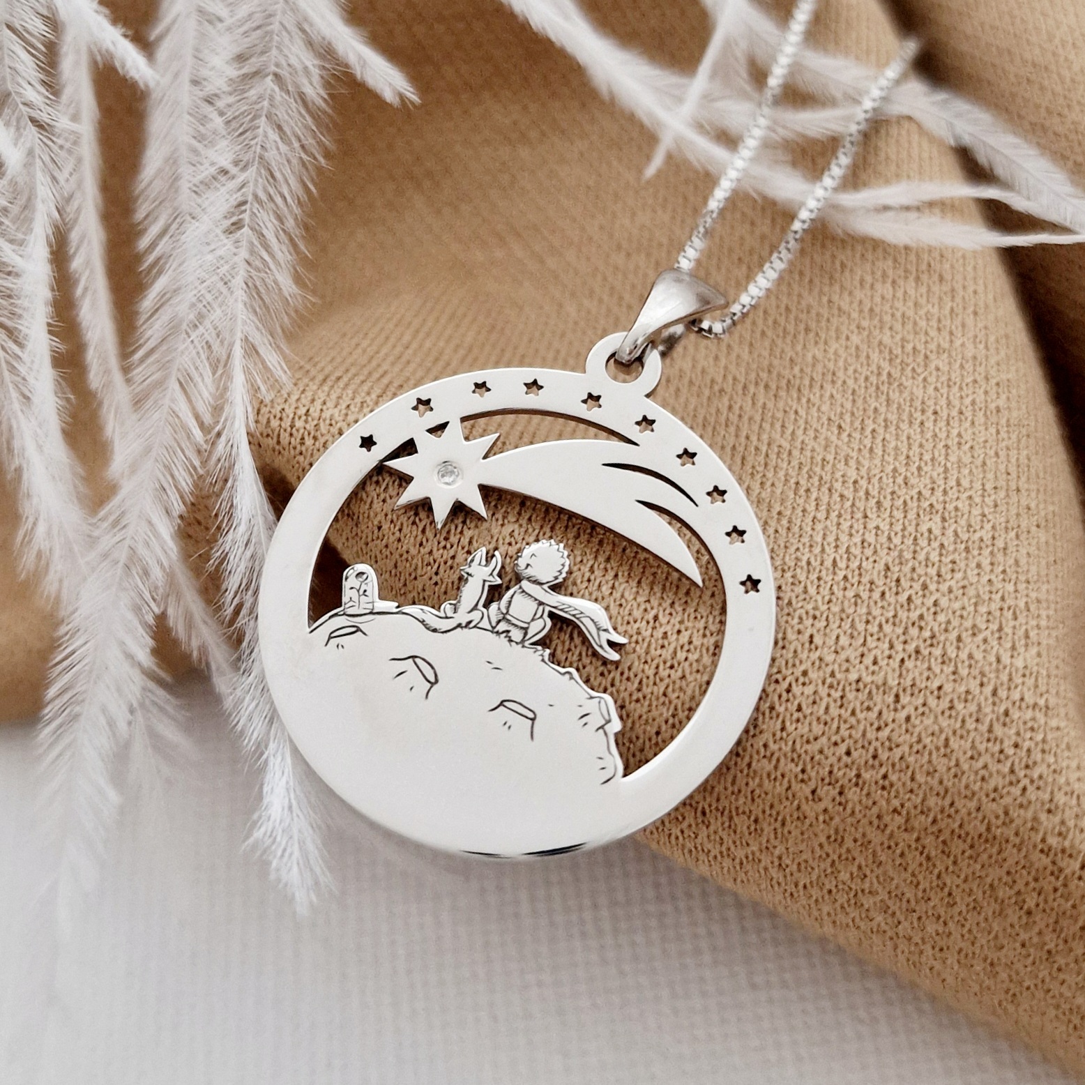 O frumoasa bijuterie reprezentand Micul Print si credinciosul sau prieten Vulpea. Un cadou minunat pentru o zi de nastere!