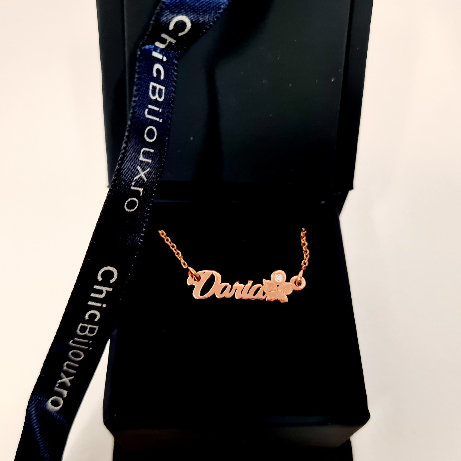 Numele este cel mai dulce cuvant. De aceea bijuteriile cu nume au ramas o tendinta populara in lumea modei. Prin intermediul acesteia iti vei expune propria personalitate si propriul stil unic. Pentru a personaliza colierul alege numele unei persoane dragi, numele tau sau un cuvant cu cu o semnificatie speciala.