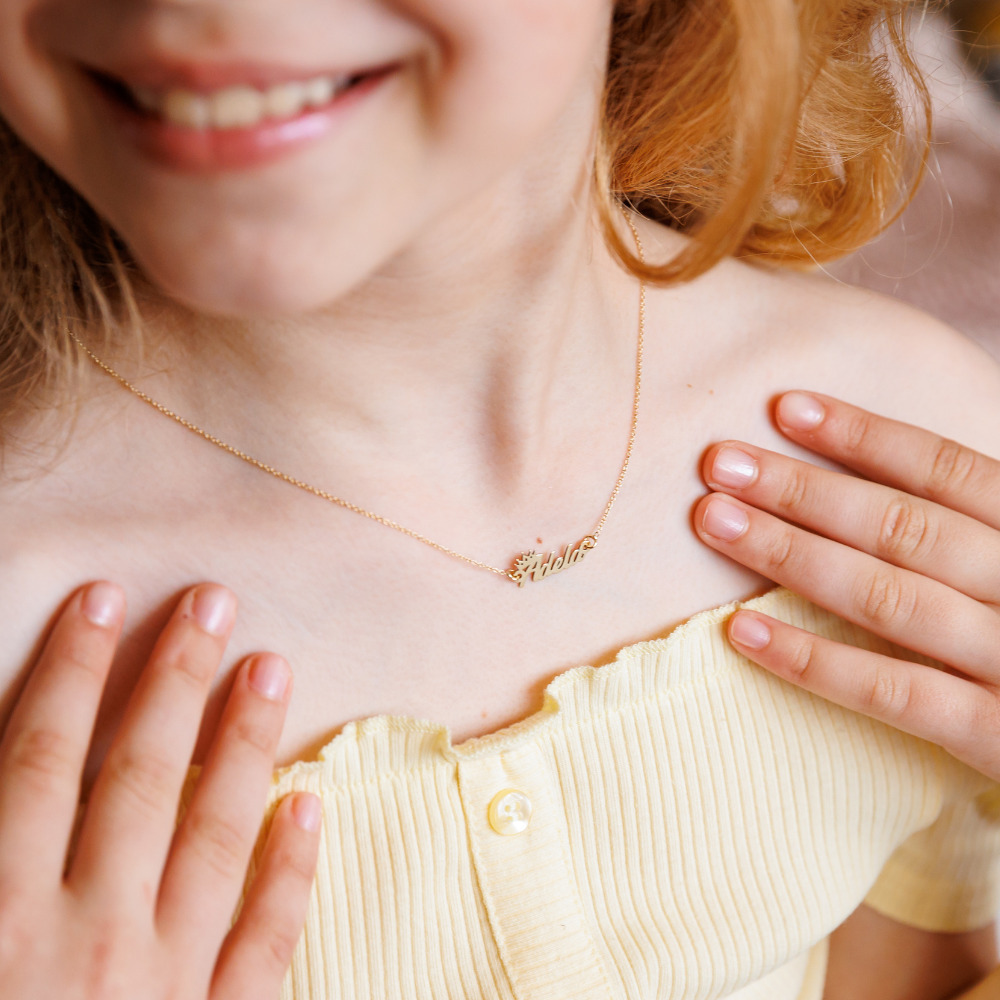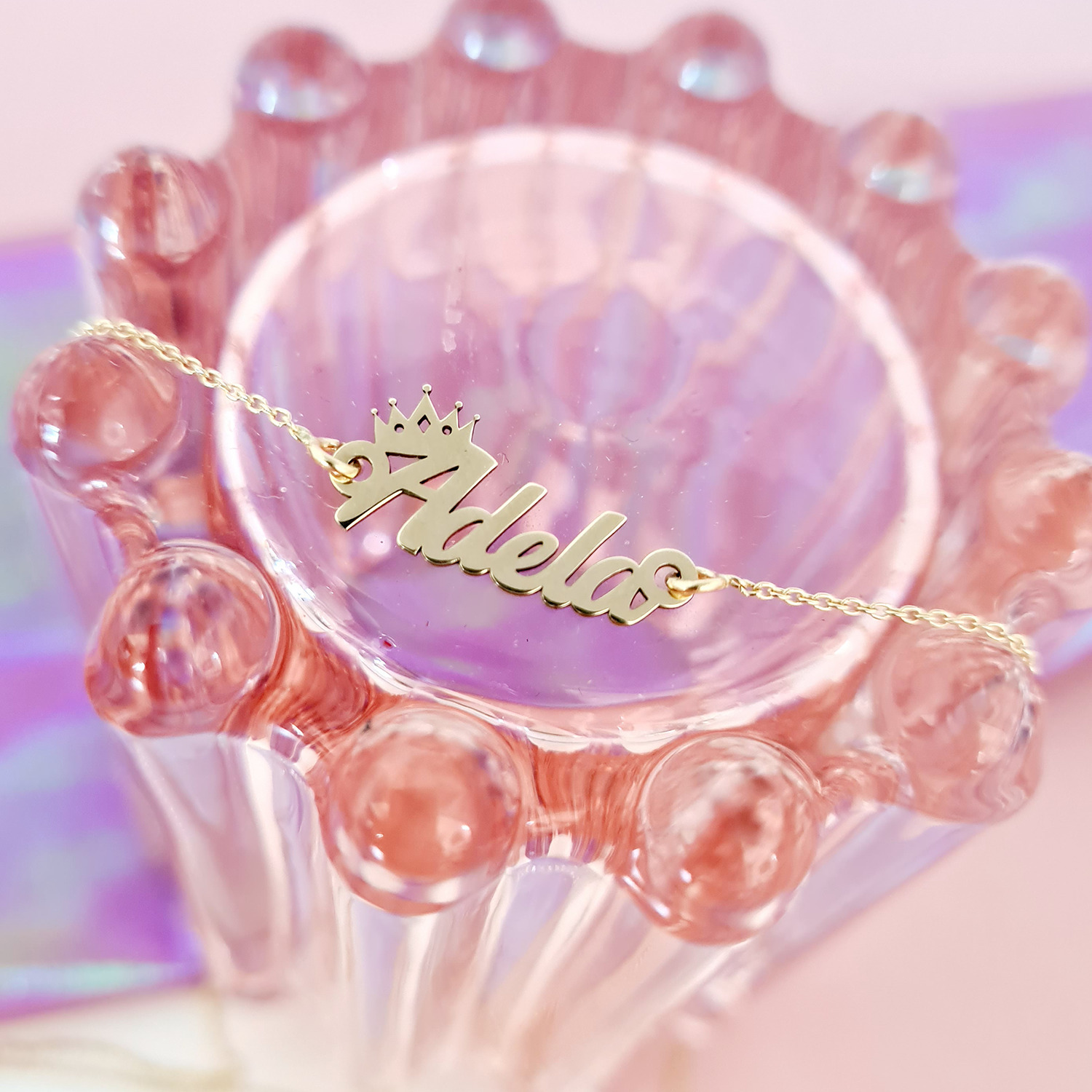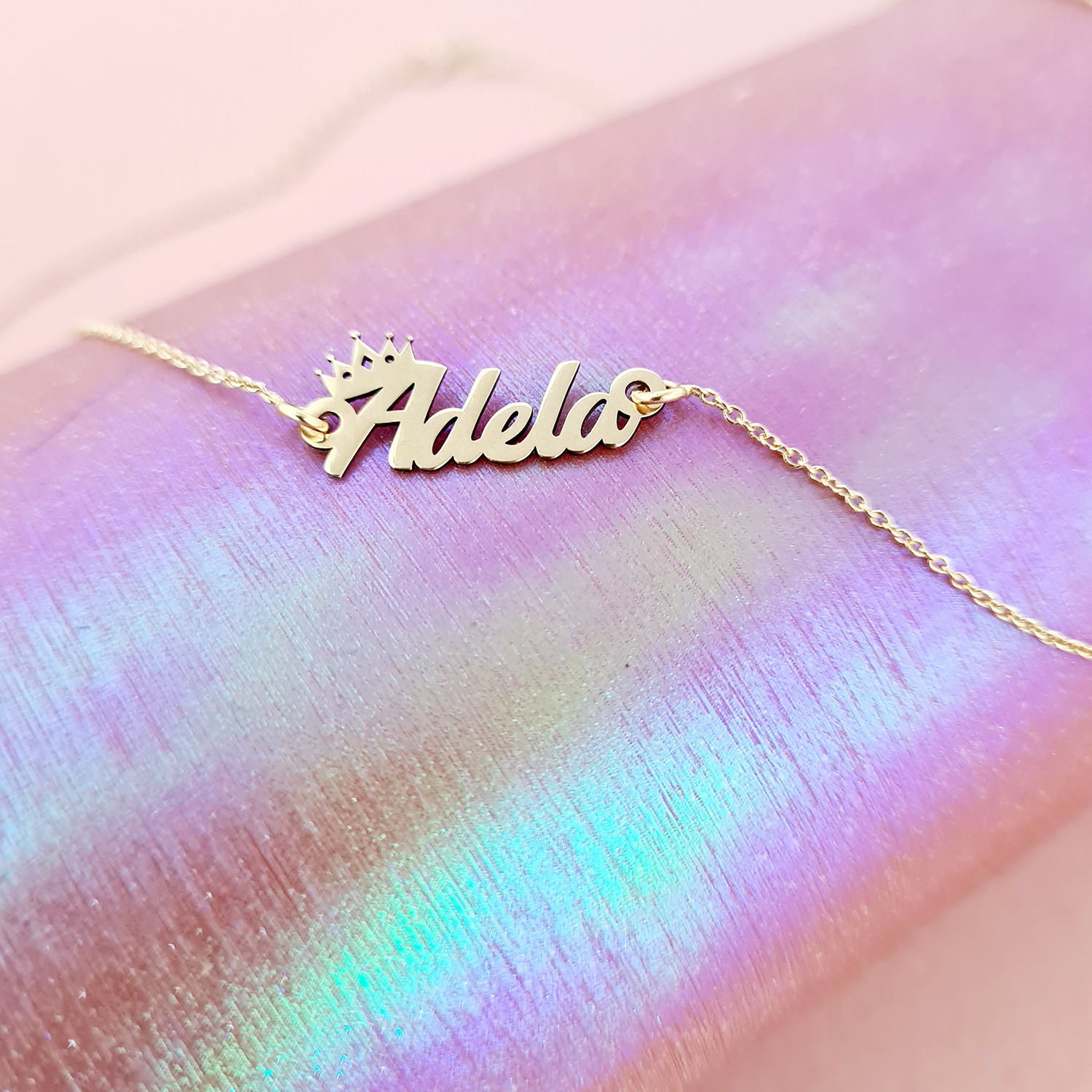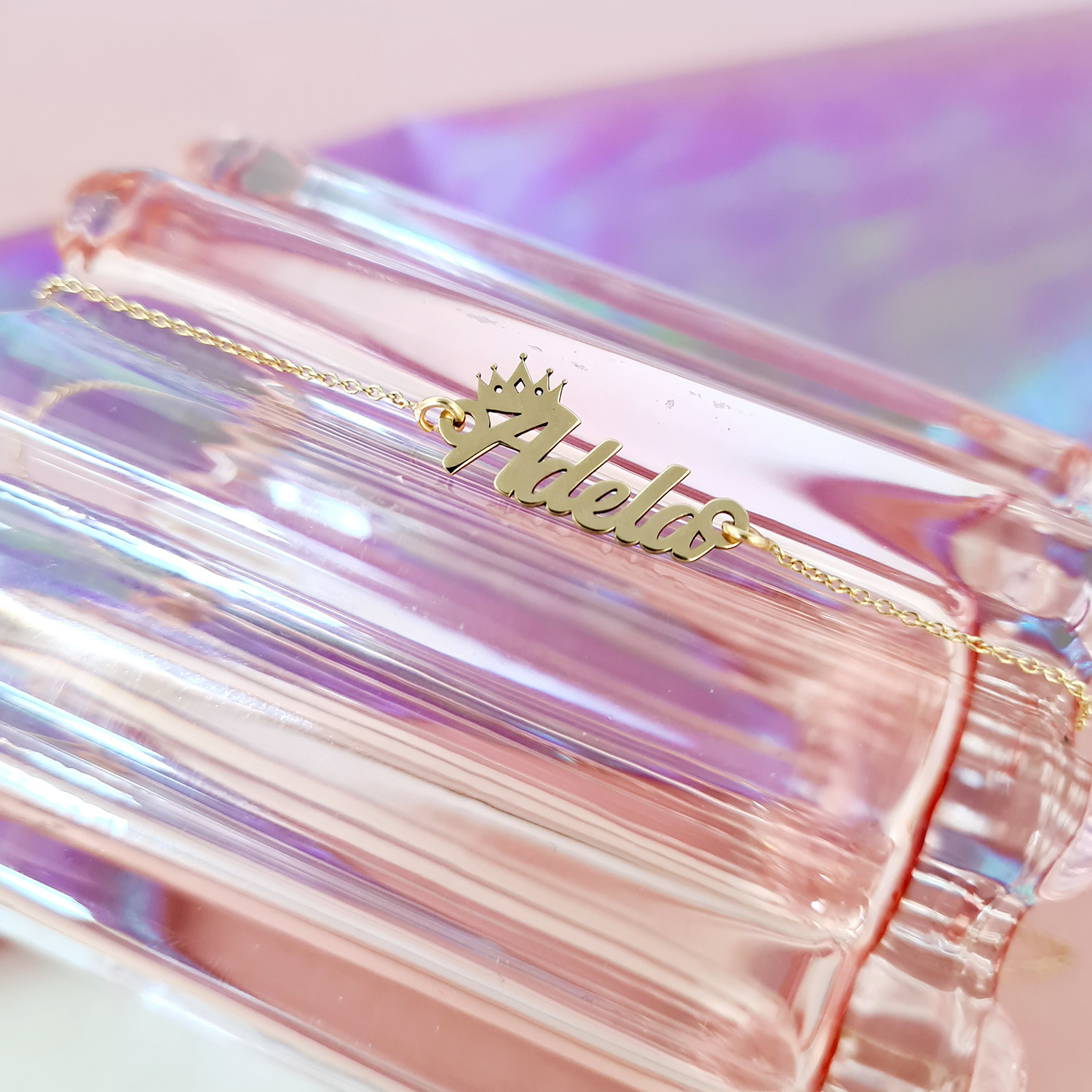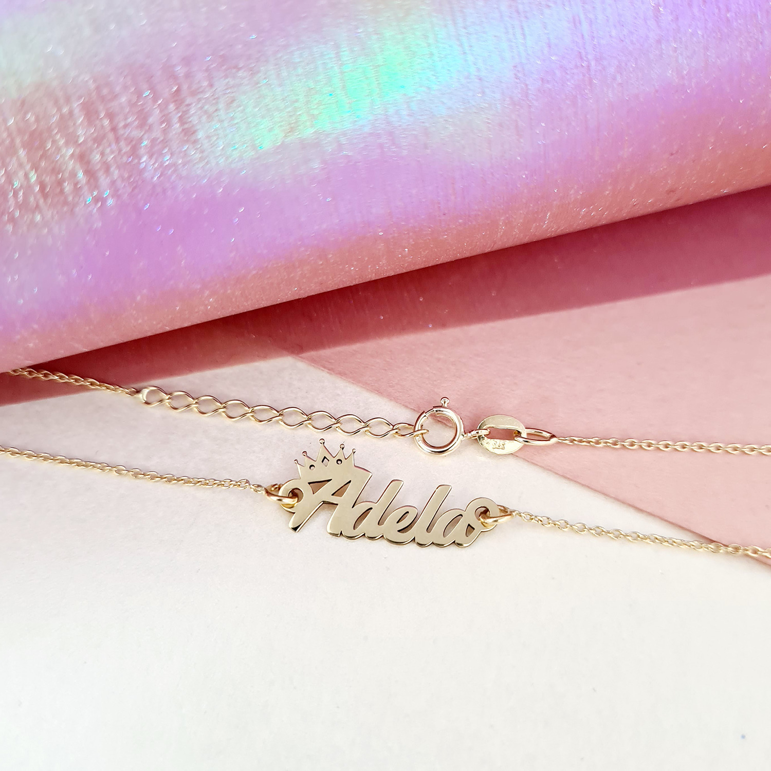 Lantisor personalizat cu nume 5-6 litere si simbol coronita - Font elegant - Aur 9K