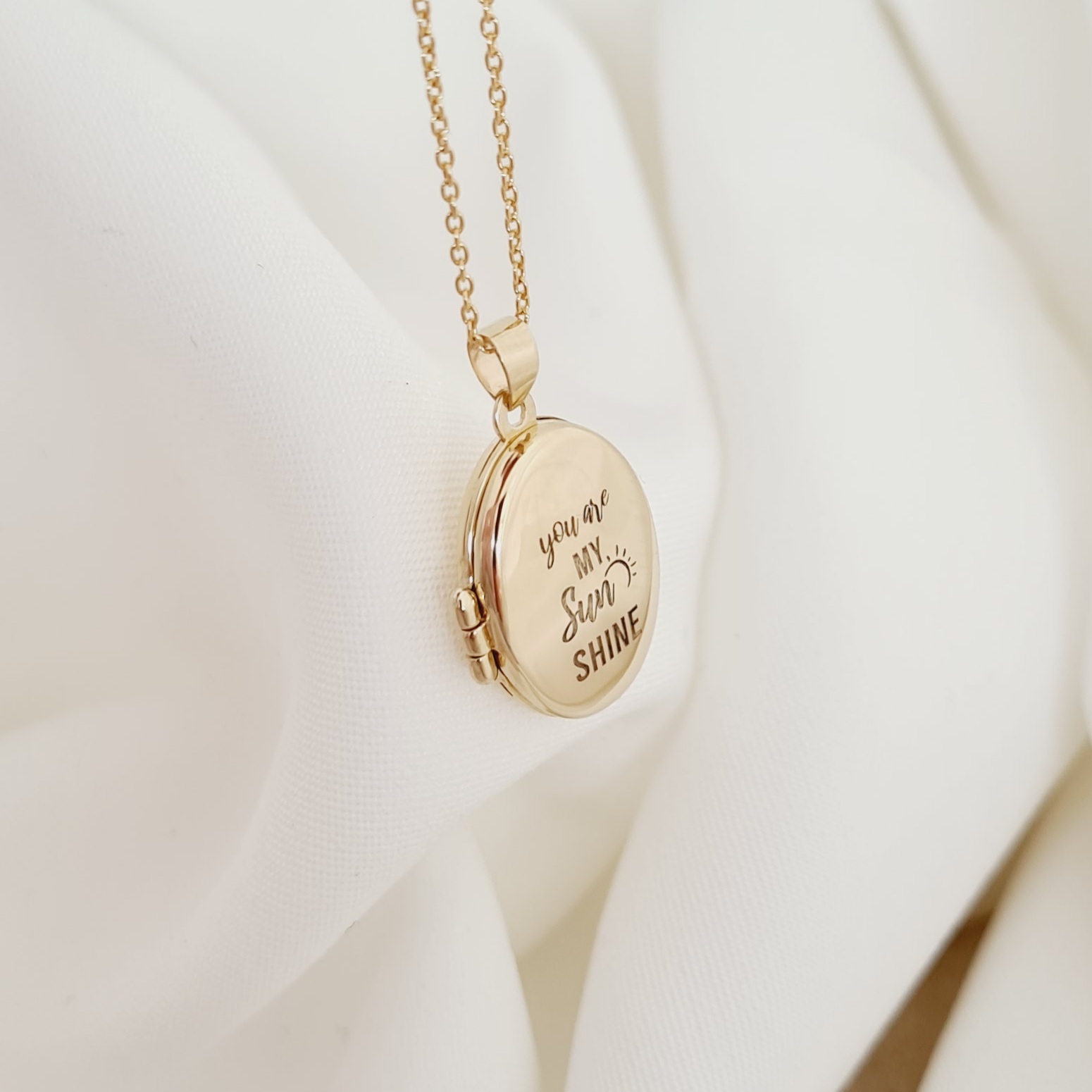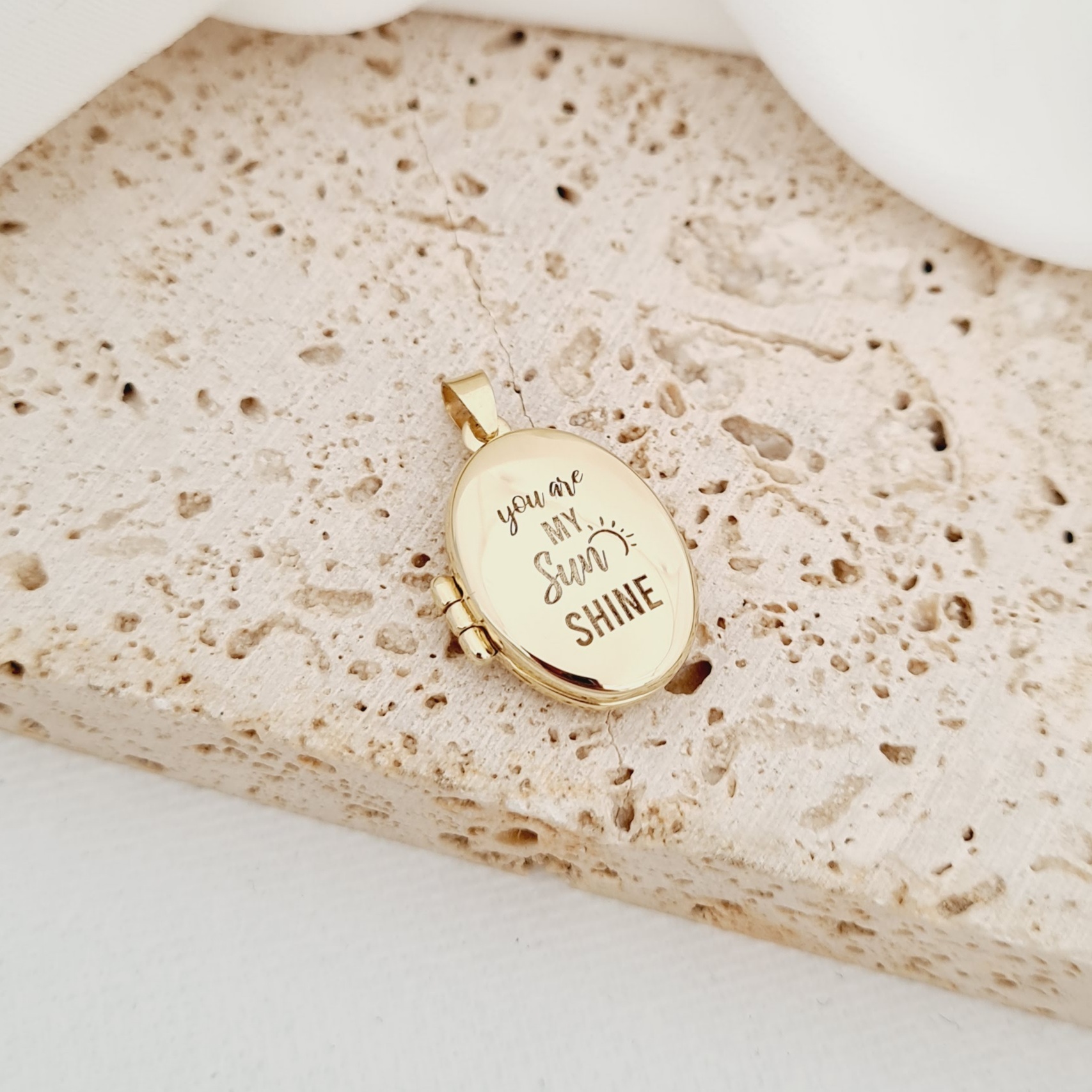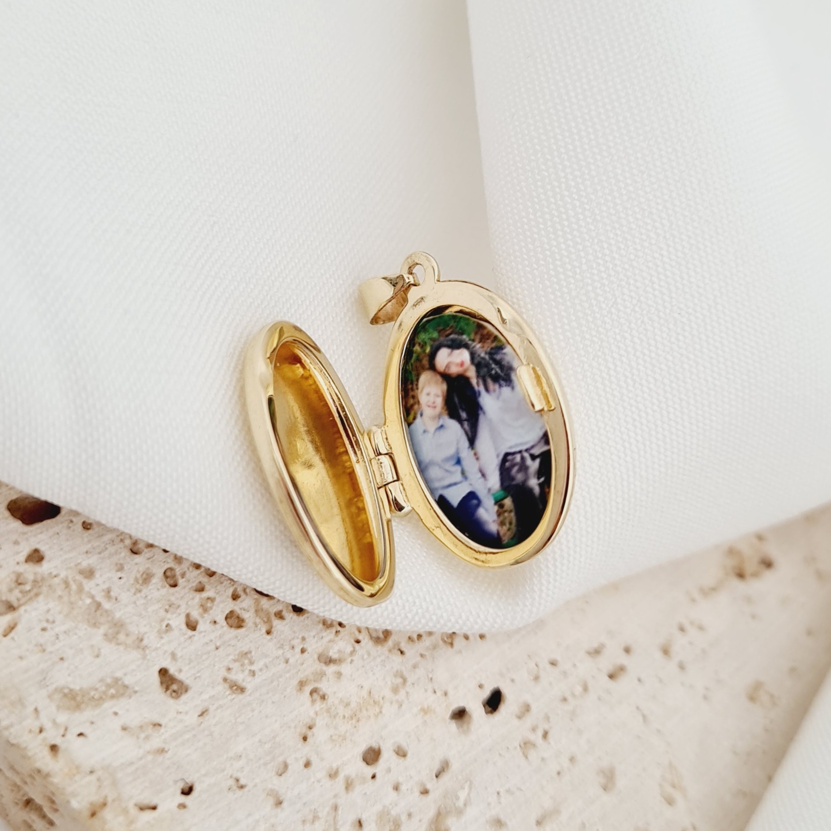 Medalionul Amintirilor - Pandantiv Aur Galben 9K - Model OVAL cu poze in interior si mesaj personalizat
