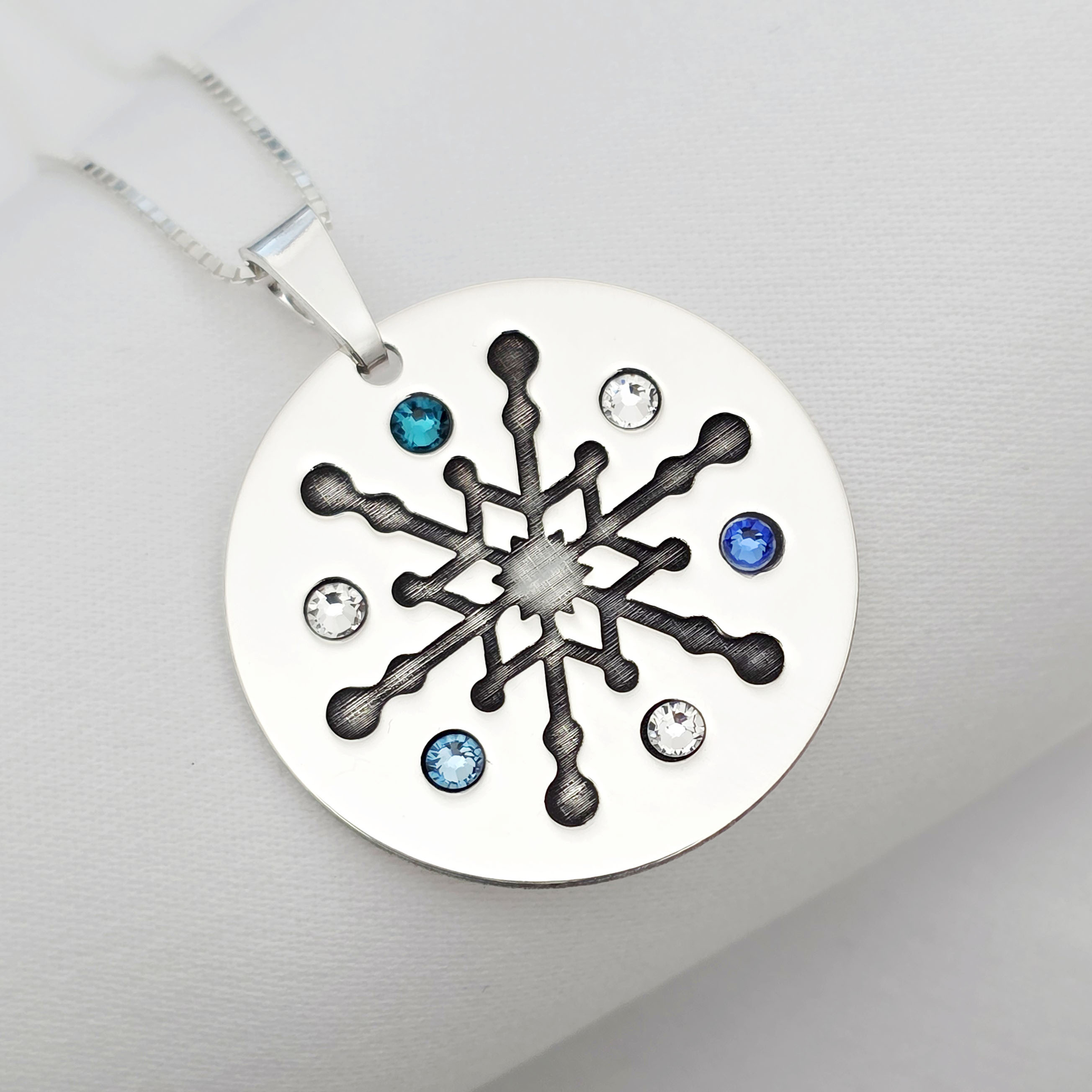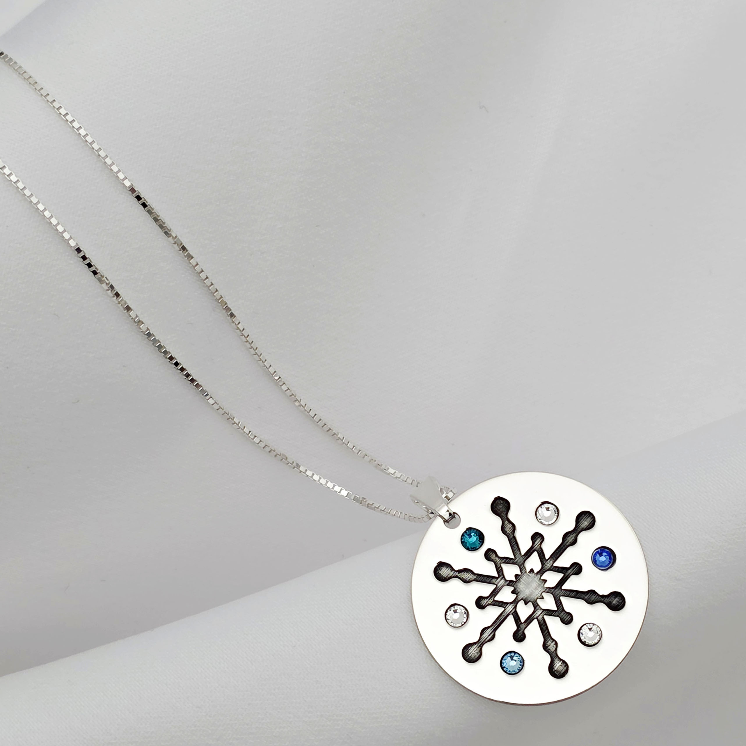 Lantisor cu pandantiv personalizat de Craciun - Floare de gheata - model rotund -Argint 925 - cristale Swarovski