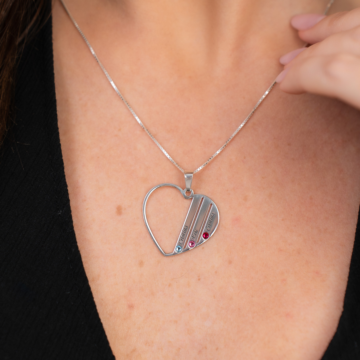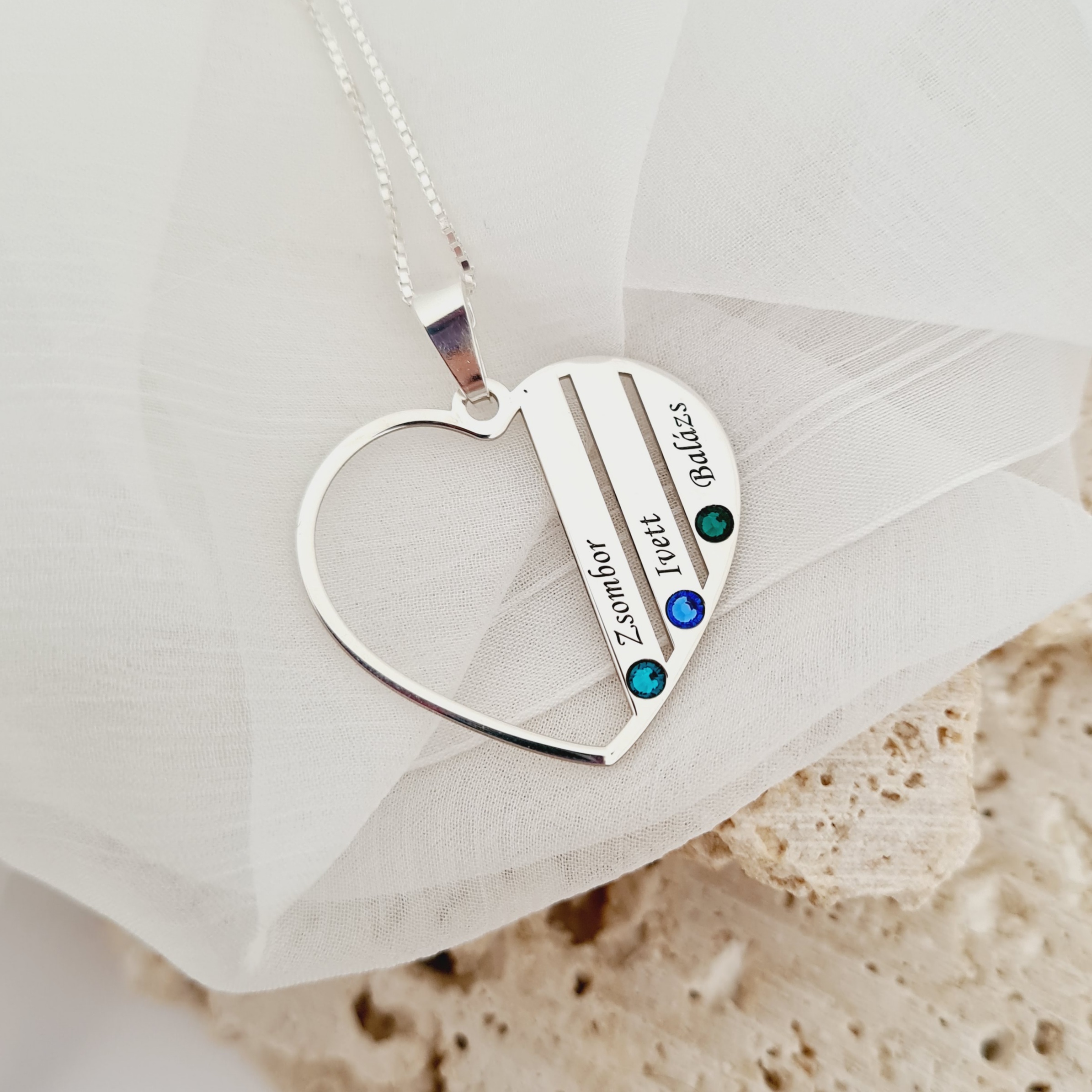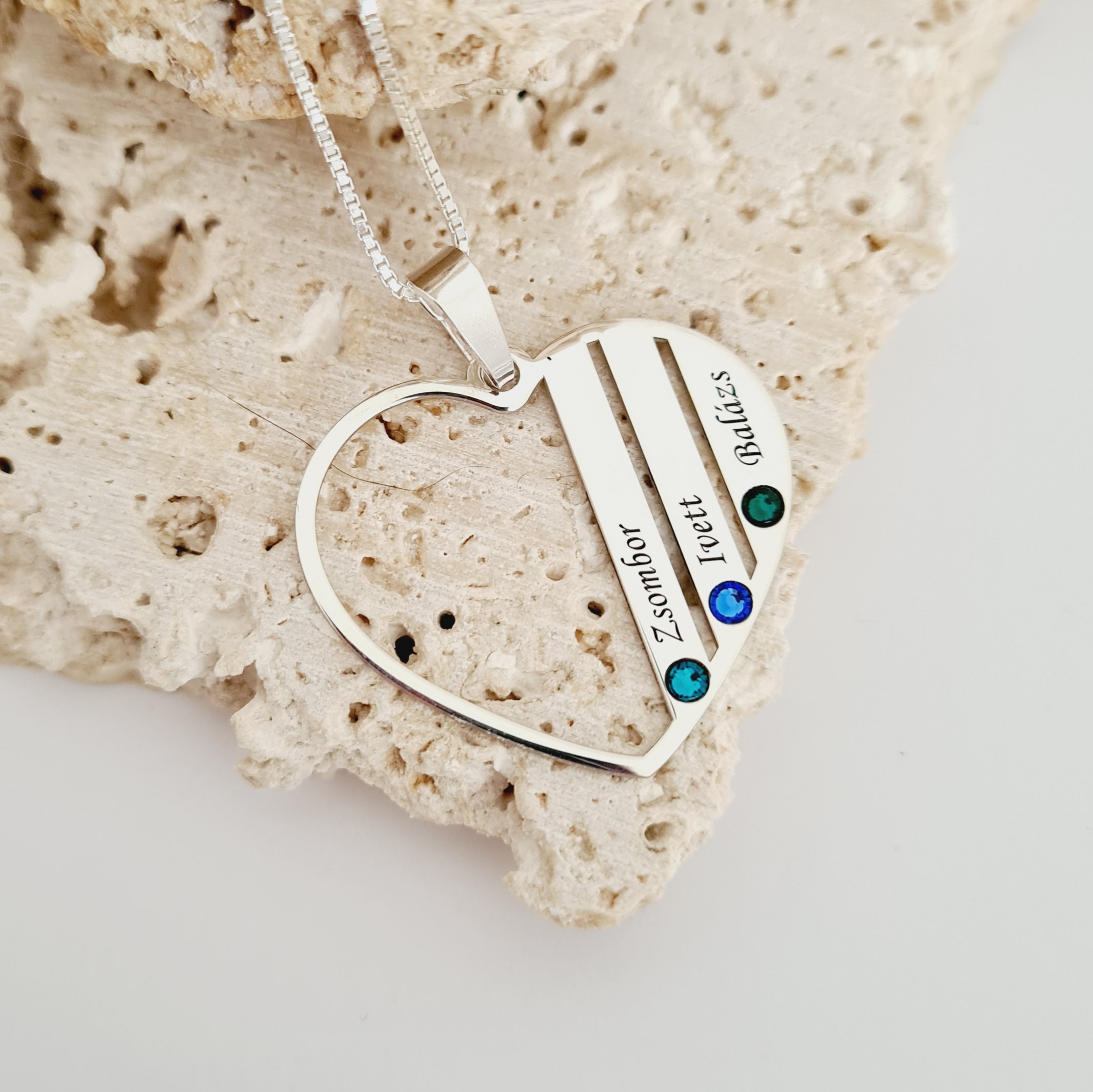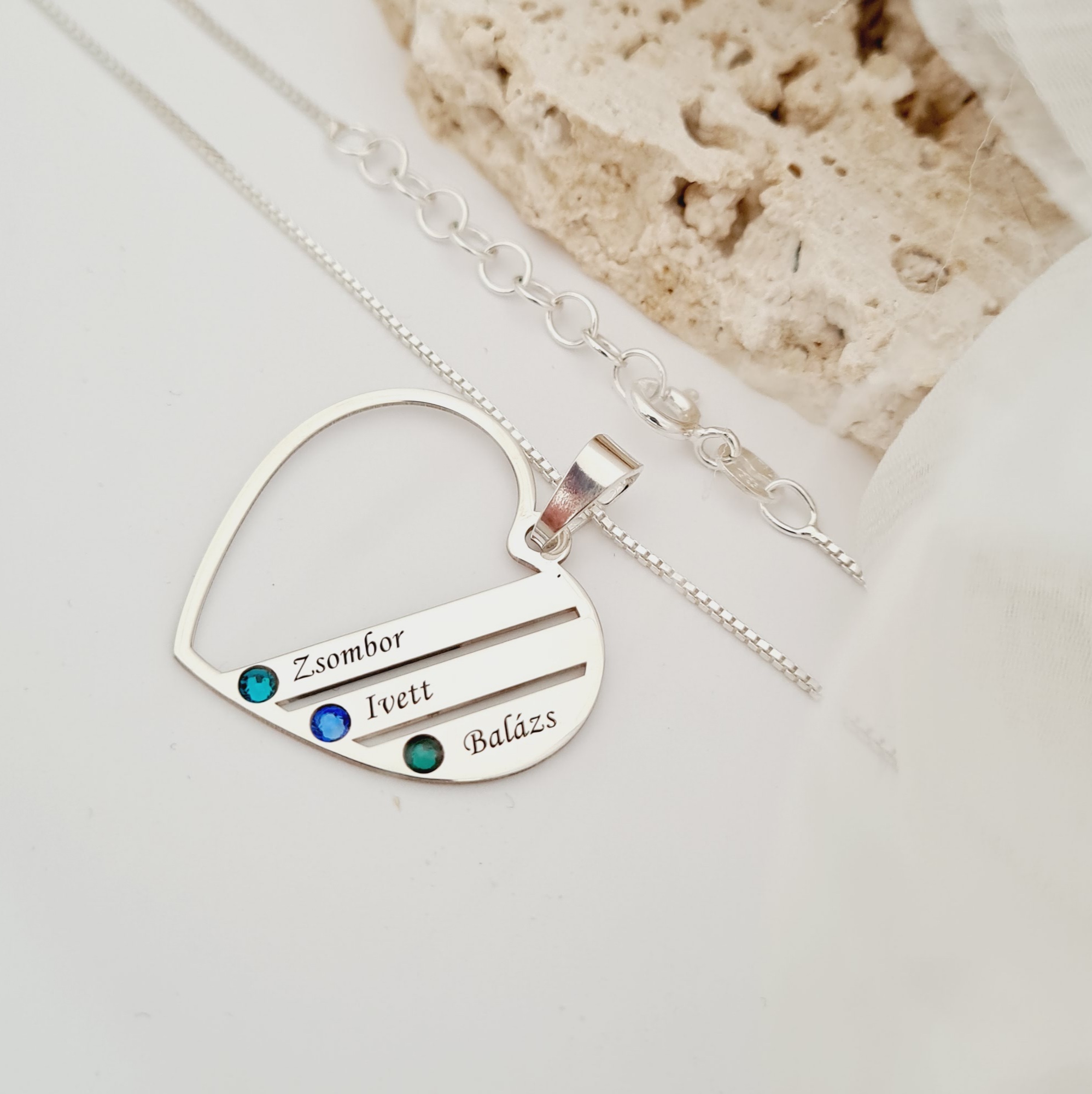 Lantisor Inima familiei - 3 nume si cristale Swarovski - Argint 925