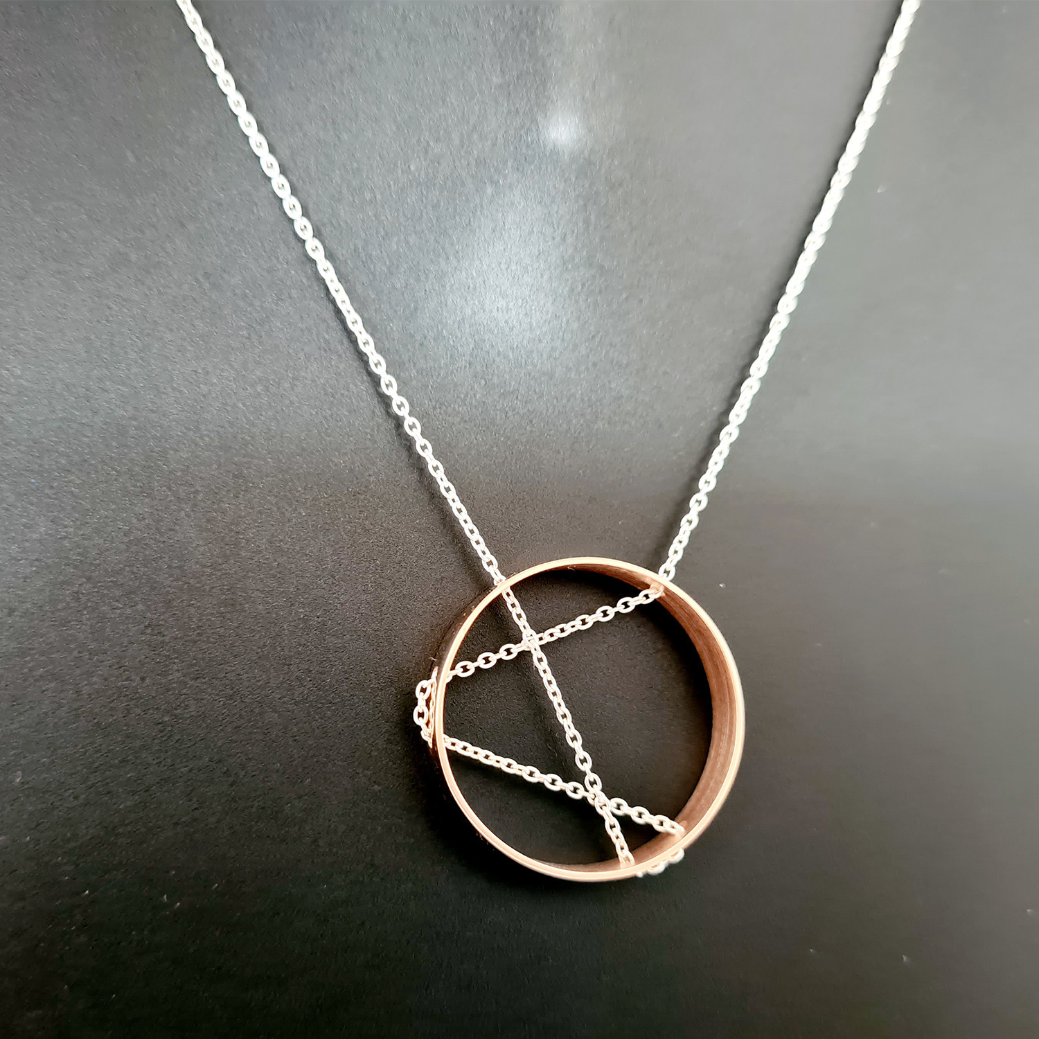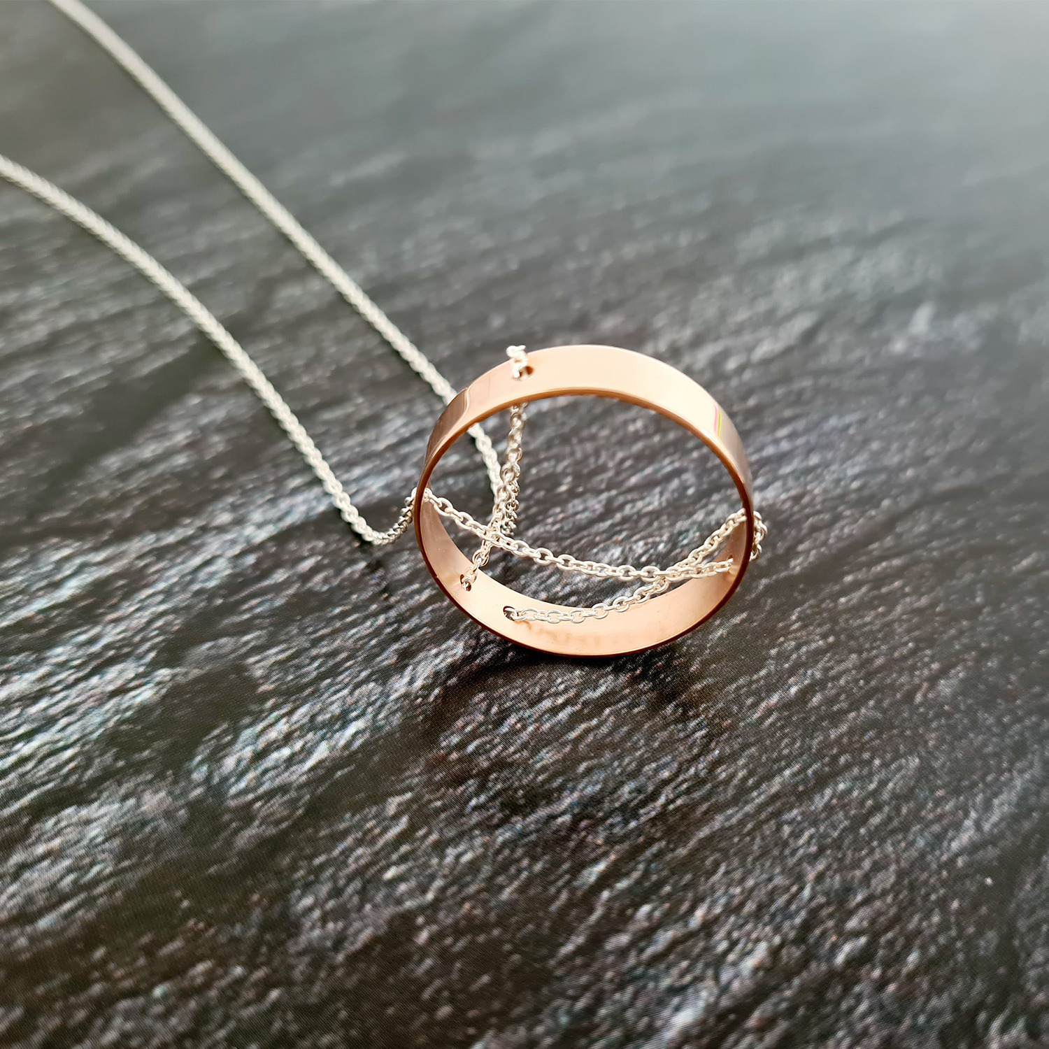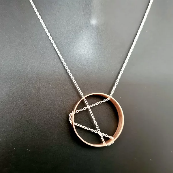 Colier geometric - Pandantiv inel - Lantisor din Argint 925 si pandantiv din Argint 925 placat cu Aur Roz 18K - Inchizatoare carabina