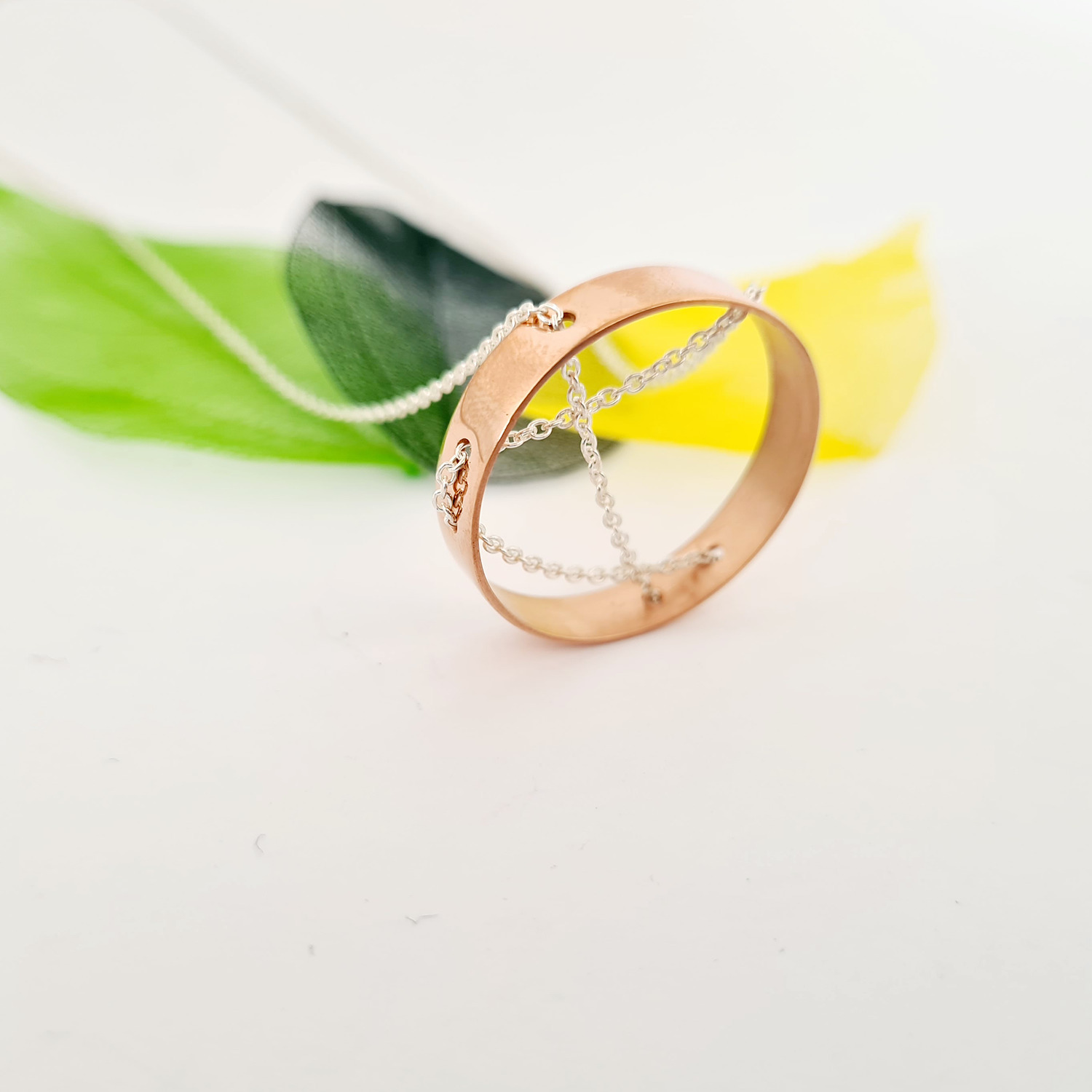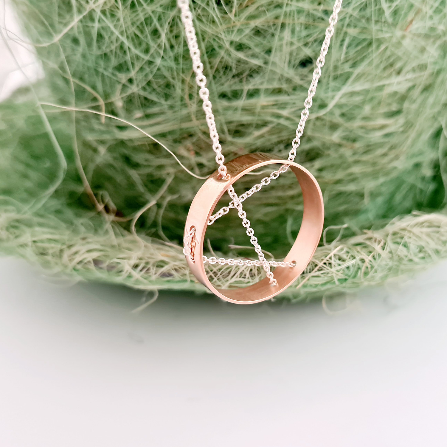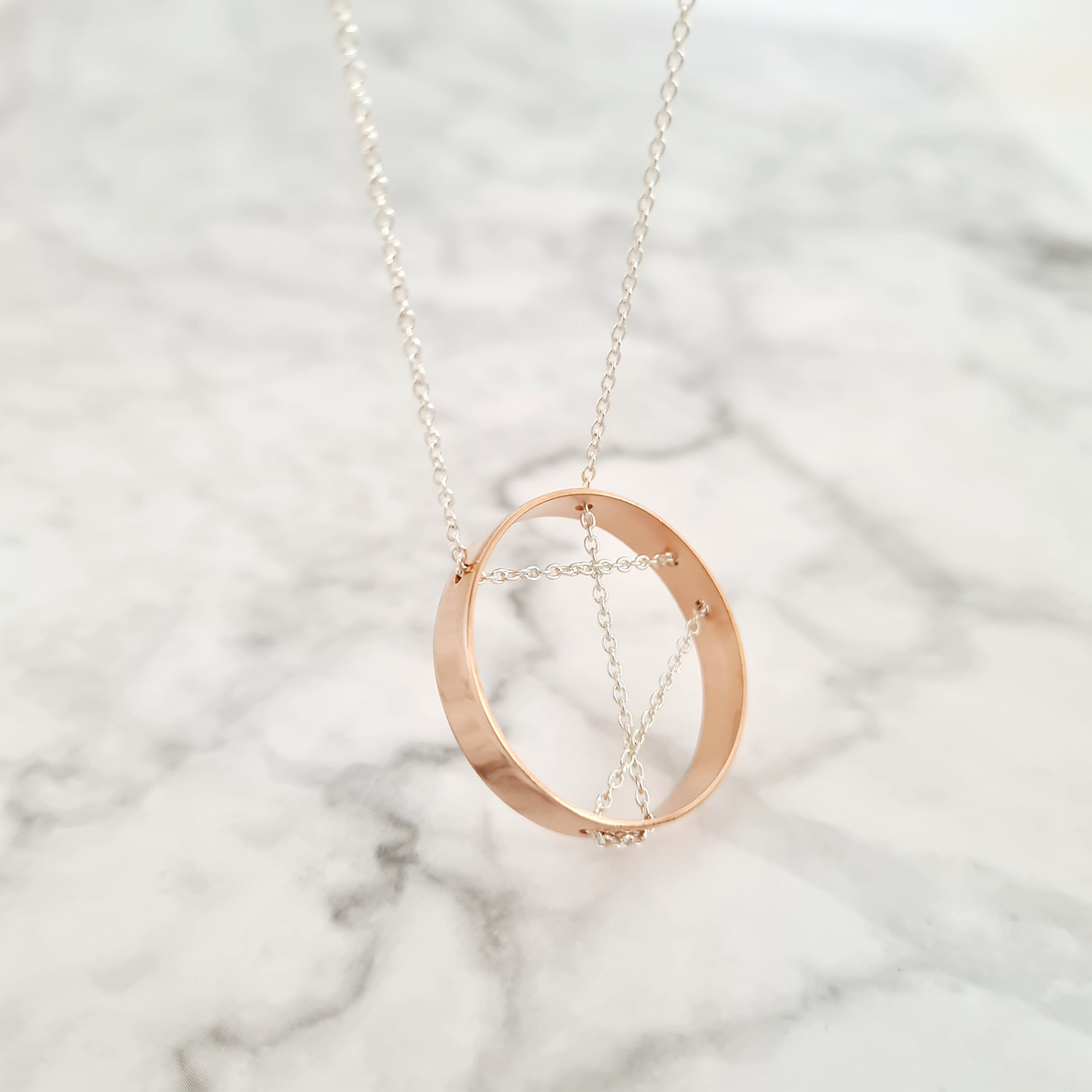 Colier geometric - Pandantiv inel - Lantisor din Argint 925 si pandantiv din Argint 925 placat cu Aur Roz 18K - Inchizatoare carabina