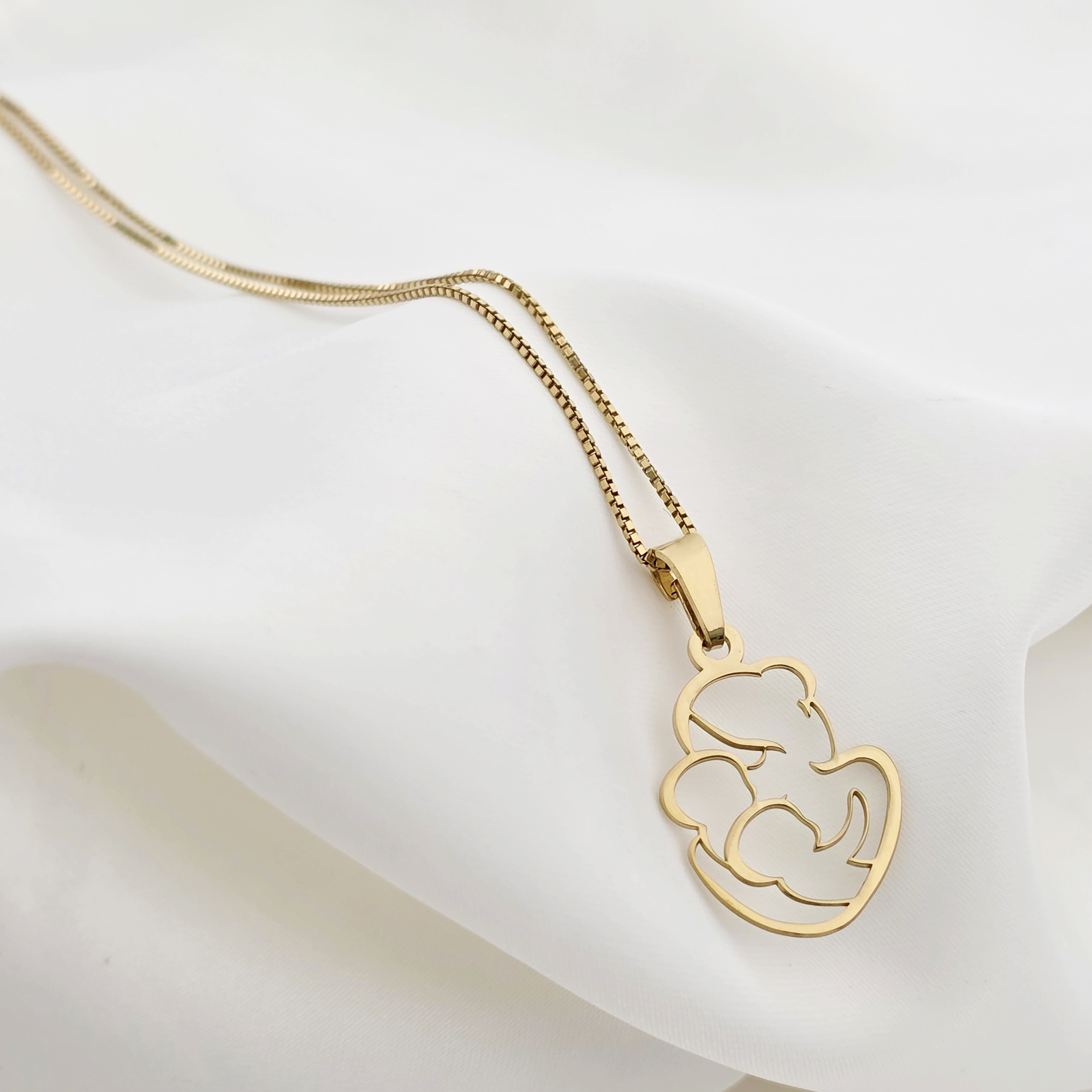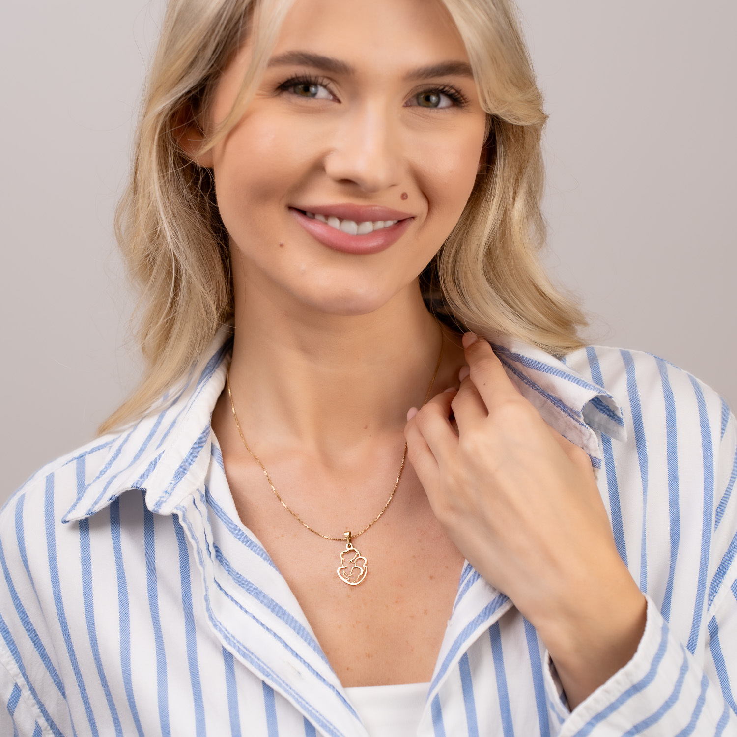 Colier in bratele mamei - Pandantiv decupat mama cu 2 copii - Argint 925 placat cu Aur Galben 18K