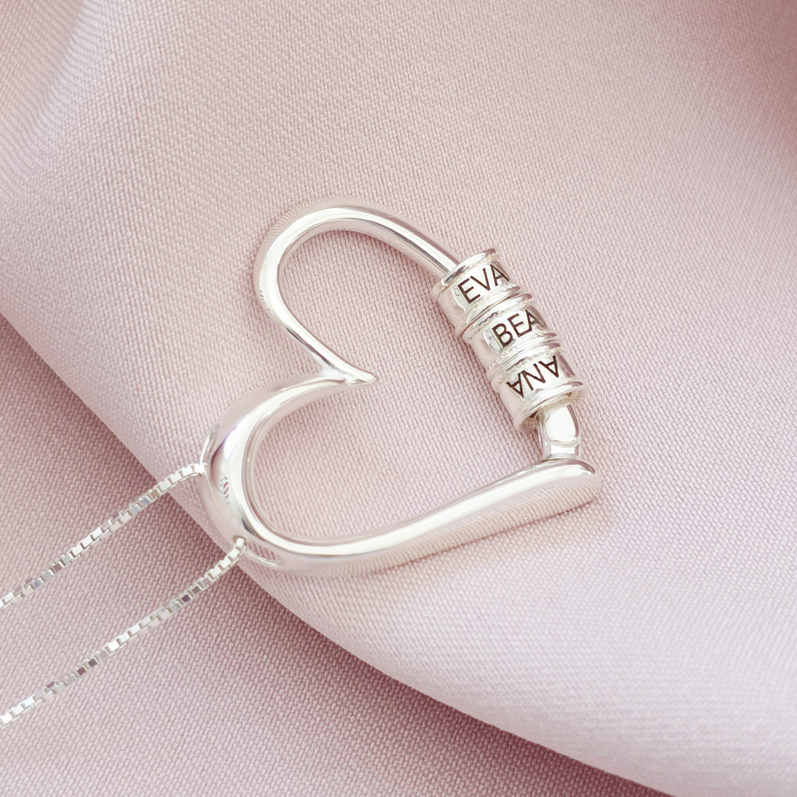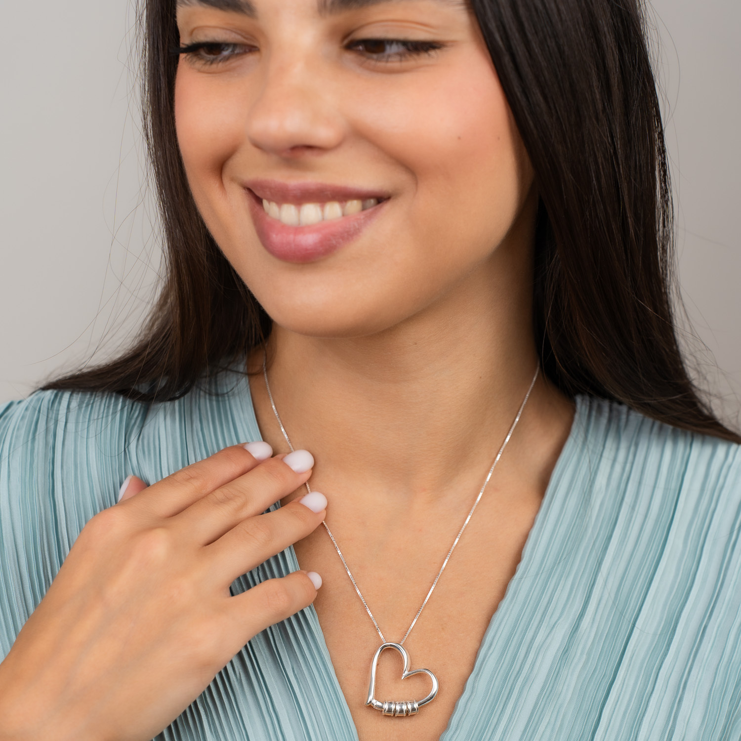 Colier Inima Fermecatoare - Pandantiv cu Inima si Cilindri personalizati cu nume - Argint 925