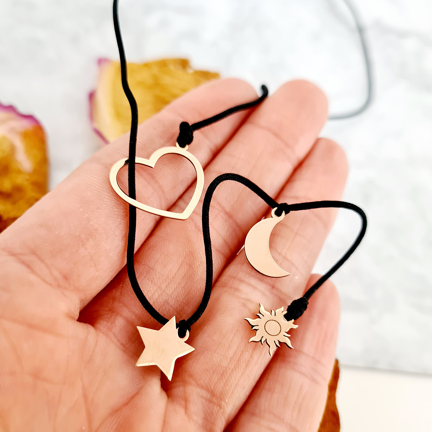- Optiuni pandantive mici: stea, luna, soare, silueta fetita, silueta baiat, cruce, ingeras, silueta caine, silueta pisica, labuta, fluture, infinit, trifoi cu 4 foi, cheie si banut cu initiala gravata.