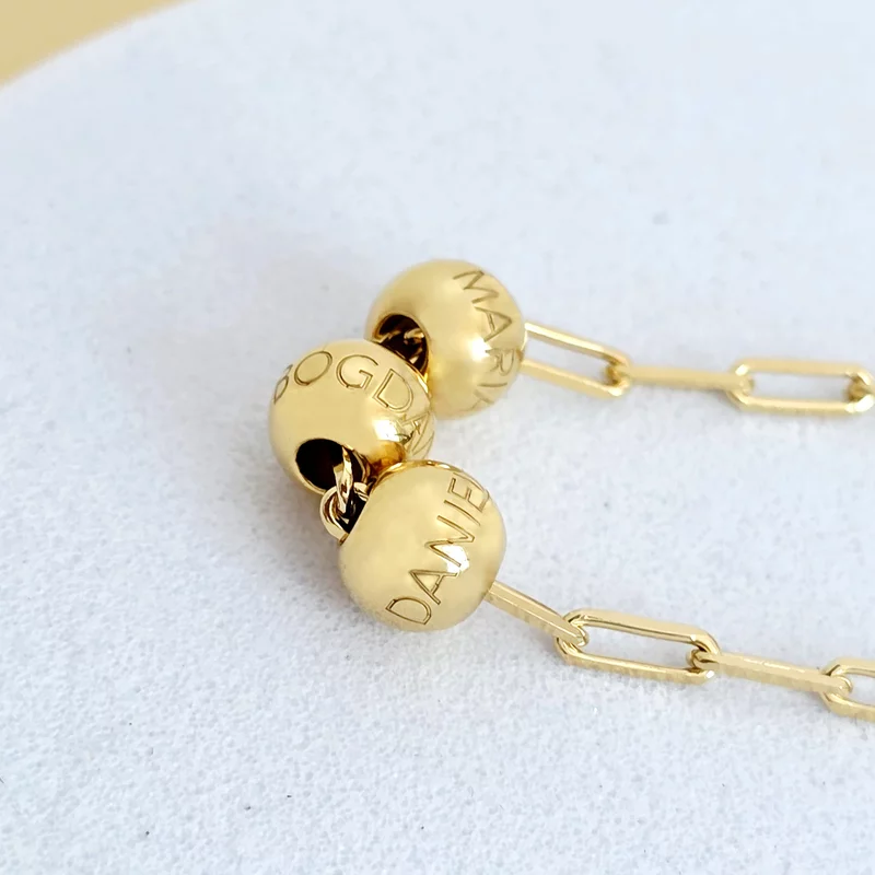 Colierul „Legături Prețioase” transformă fiecare biluță într-un simbol al iubirii și al amintirilor de neuitat. Fiecare dintre cele 3 biluțe poate fi personalizată cu un nume special, oferind un omagiu discret celor mai dragi persoane din viața ta. Realizat din Argint 925 placat cu Aur Galben 18K și completat cu un lanț cu zale dreptunghiulare elegant, acest colier este expresia subtilă a legăturilor autentice.
