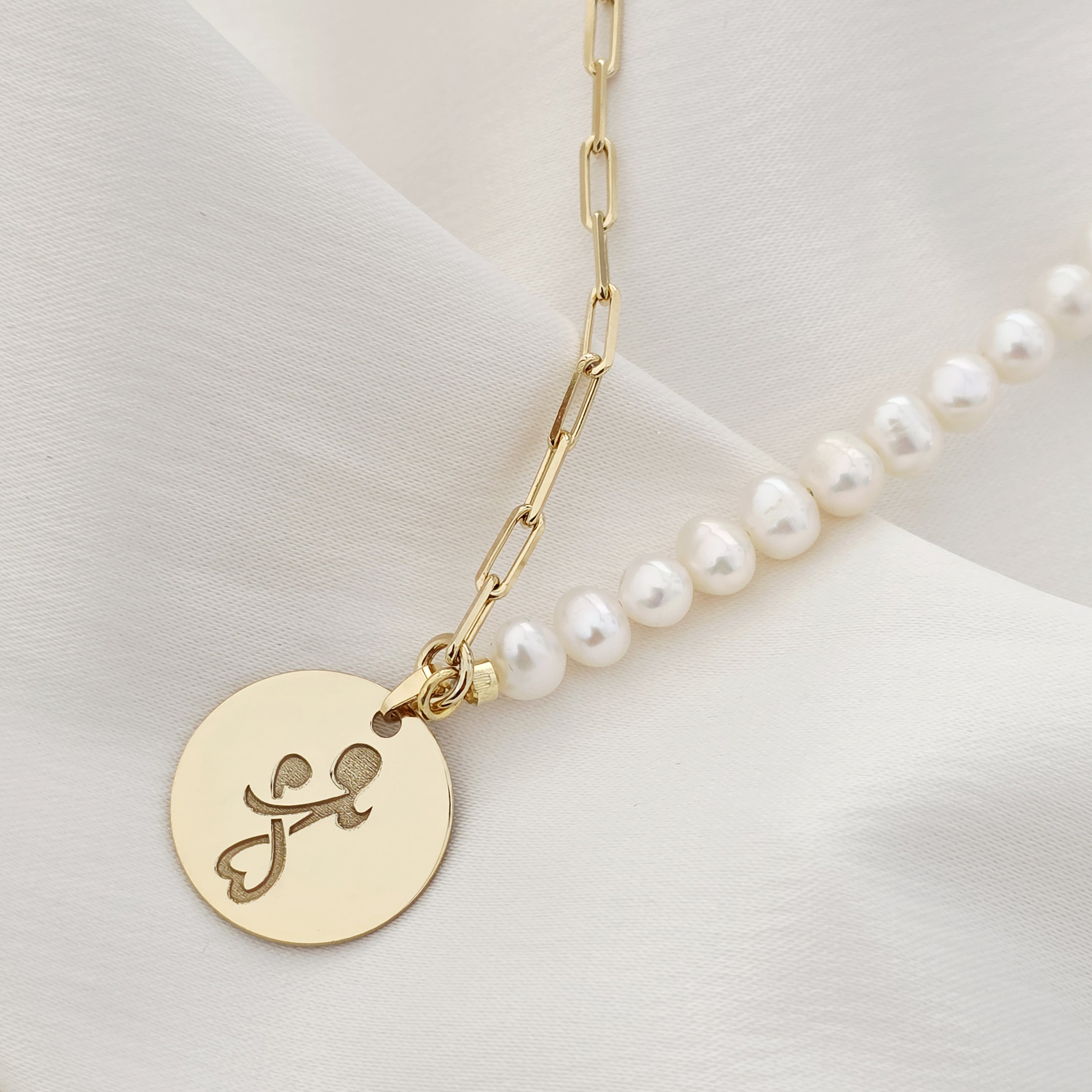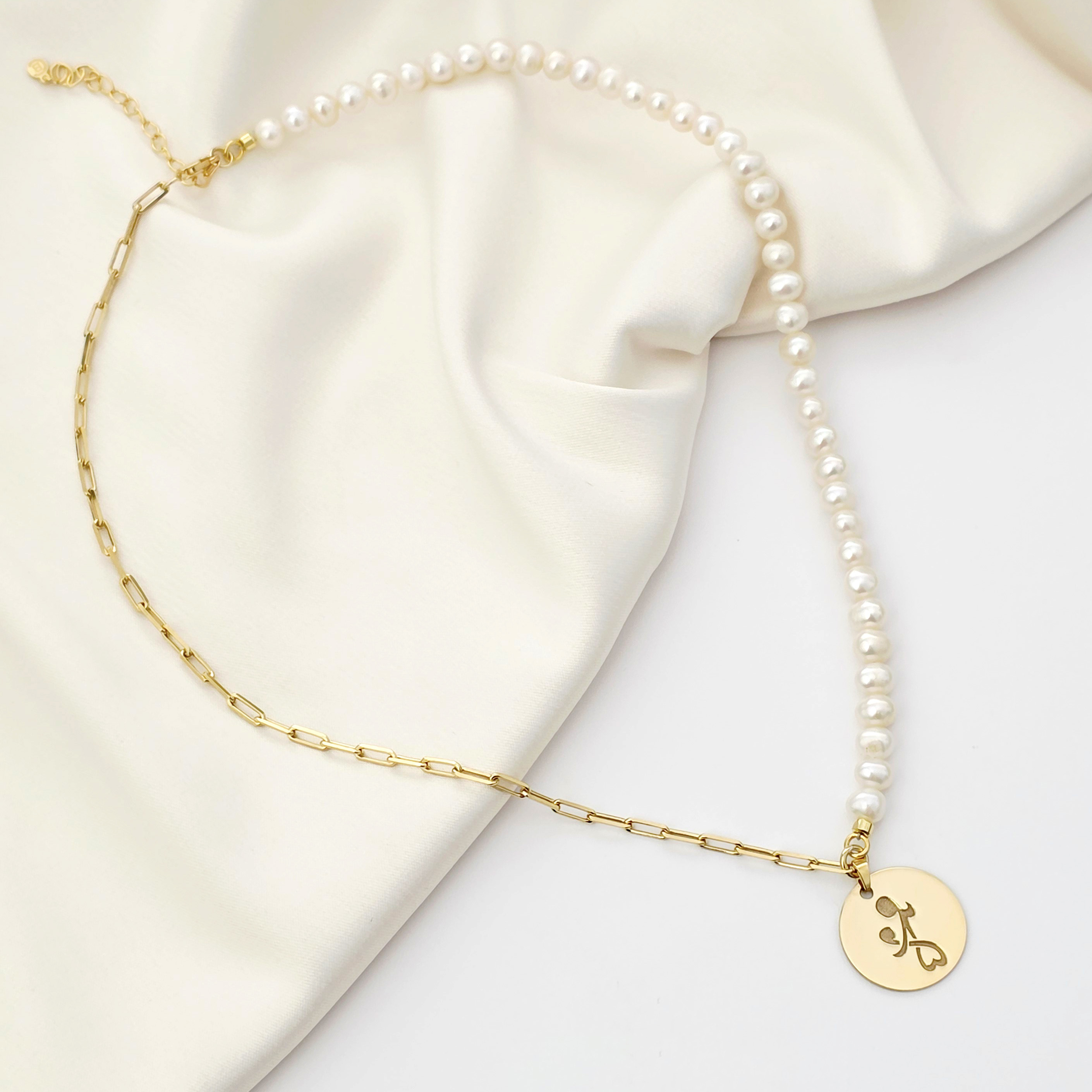 Colier Perla mea iubita - Pandantiv personalizat cu mama si copil - Combinație lant cu zale dreptunghiulare si perle - Argint 925 placat cu Aur Galben 18K