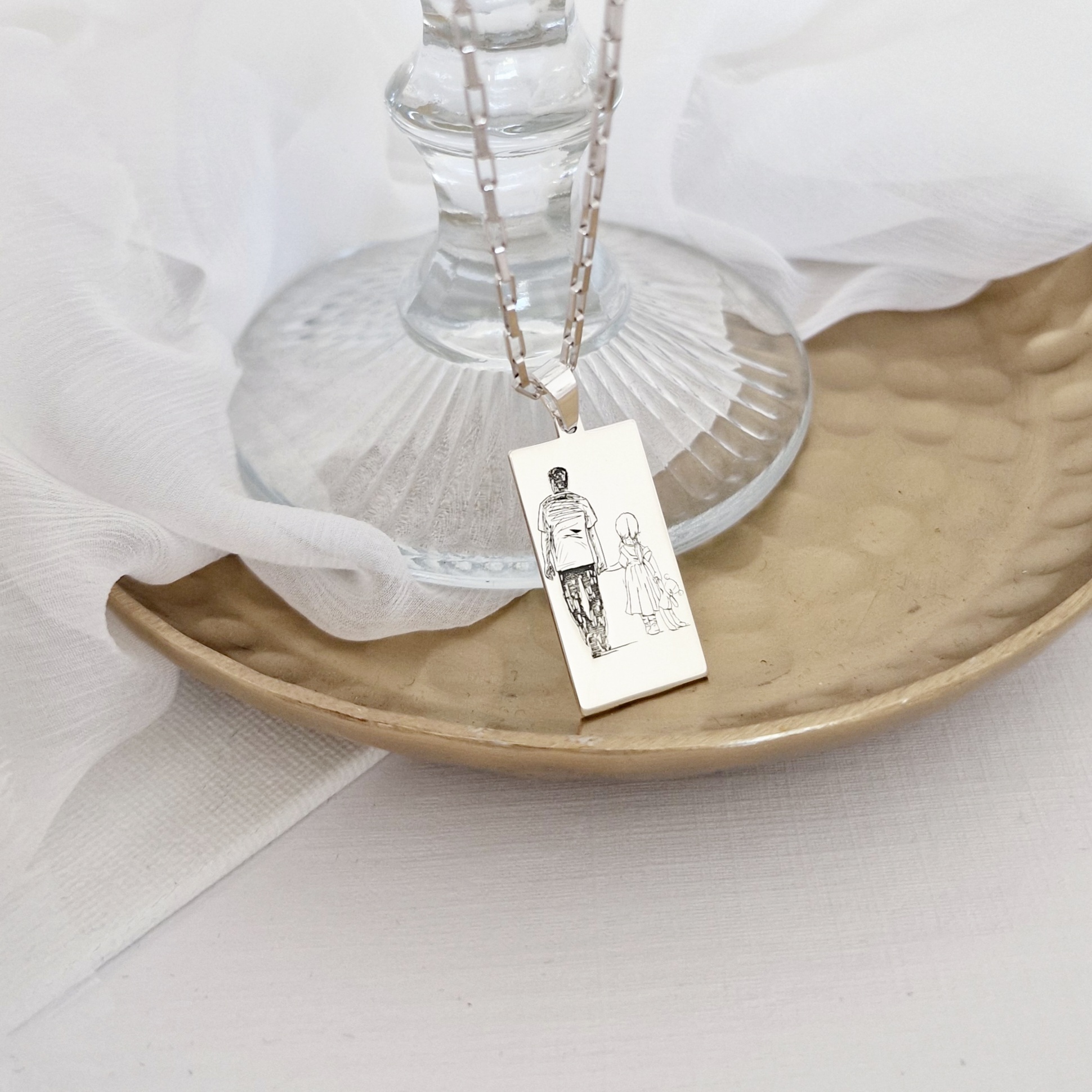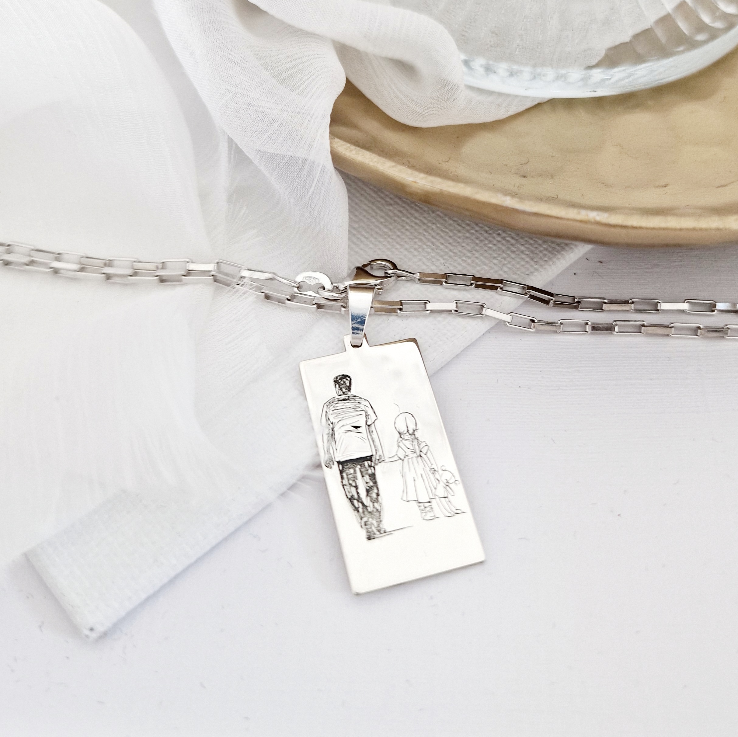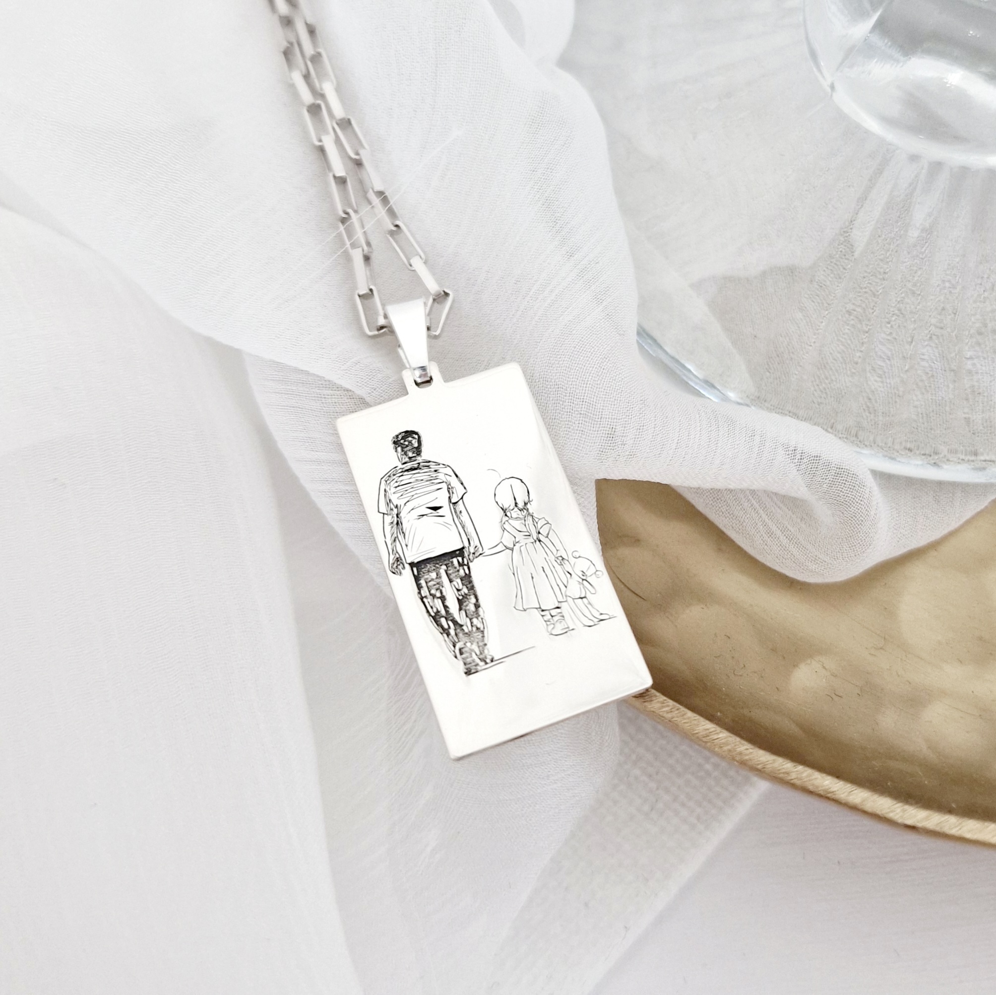 Lant Tata&Fica - siluete gravate pe placuta - Argint 925