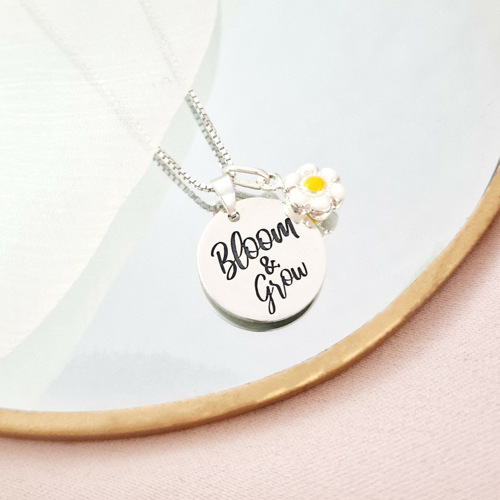 Lănțișorul „Bloom & Grow” este o declarație elegantă a creșterii și frumuseții interioare, având un pandantiv gravat ce inspiră evoluție și armonie. Fabricat din argint 925, acest colier rafinat este completat de un charm în formă de floare, simbol al purității și noilor începuturi. Un accesoriu perfect pentru a-ți exprima feminitatea și energia pozitivă în fiecare zi.