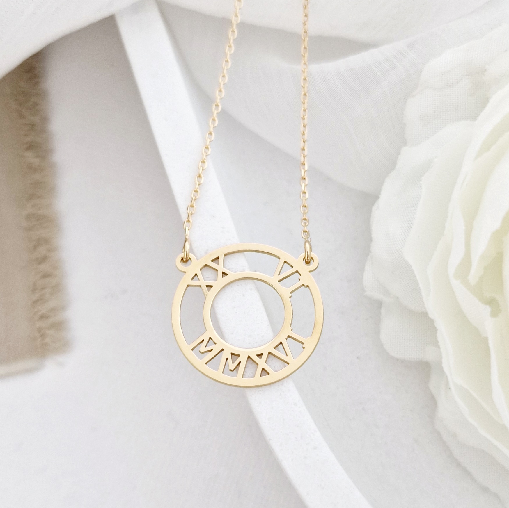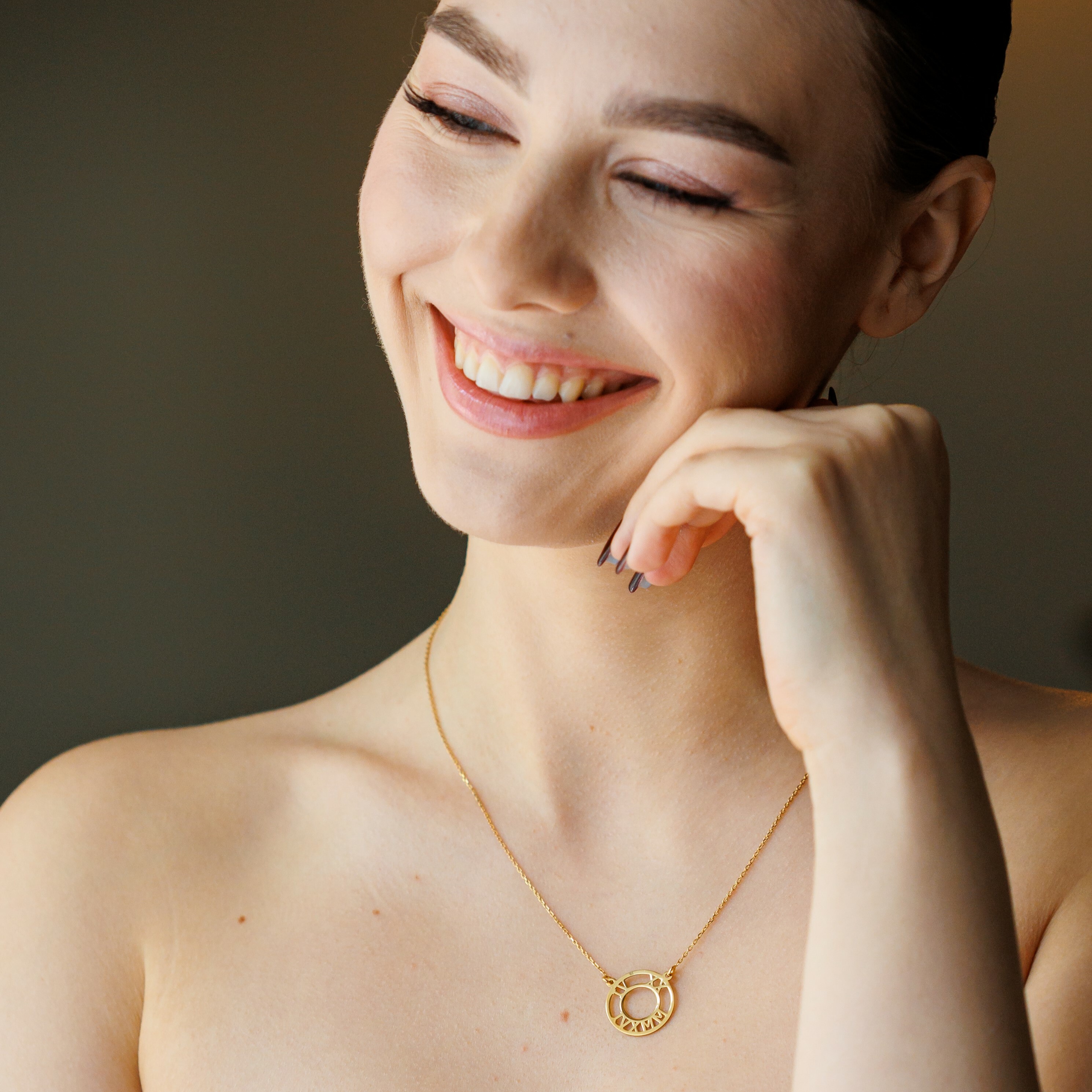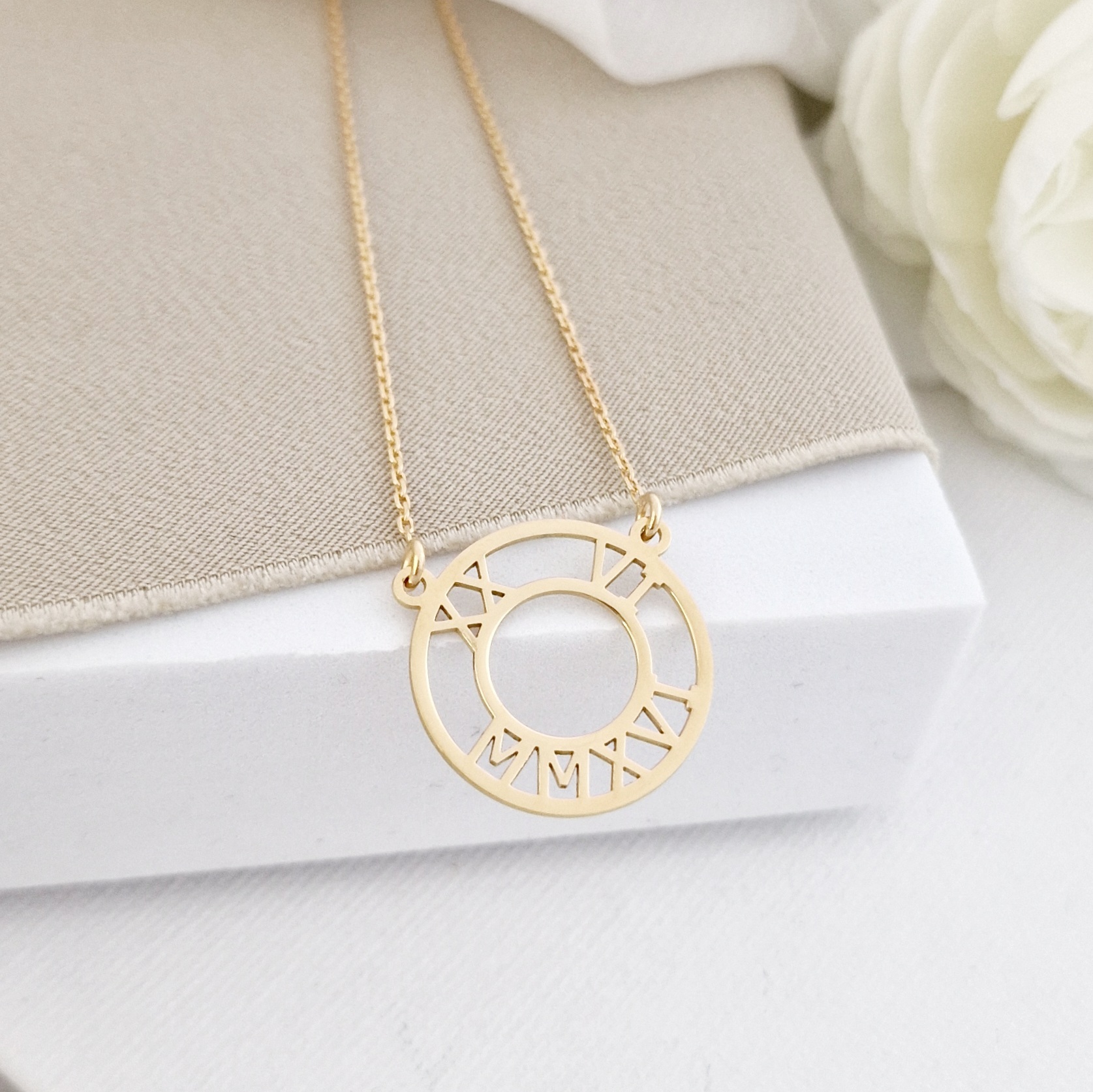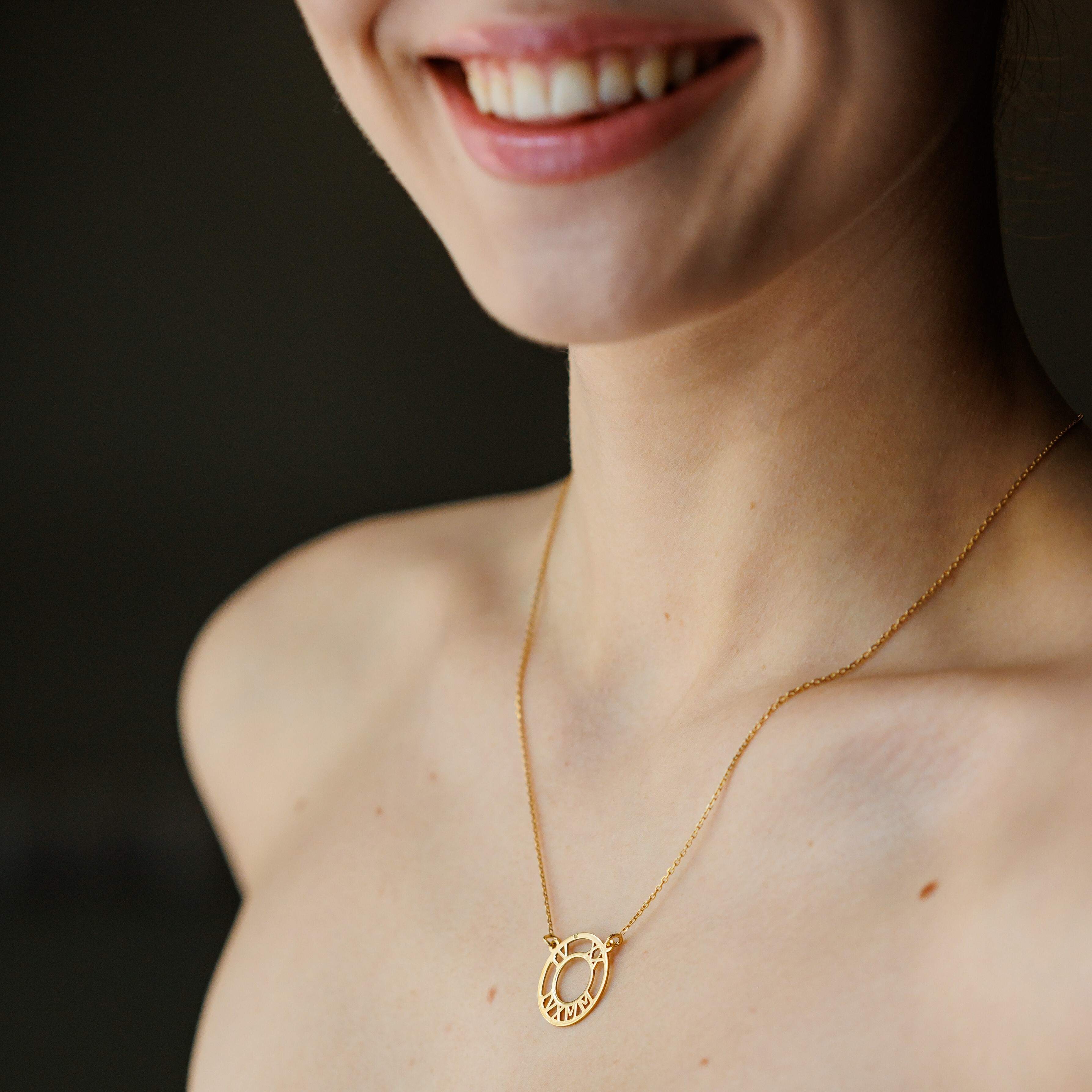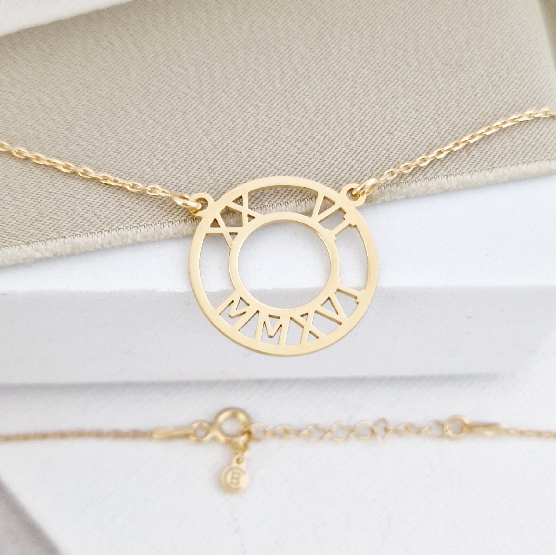 Lantisor Cercul Roman - Pandantiv cu data nasterii in cifre romane - Argint 925 placat cu Aur Galben 18K