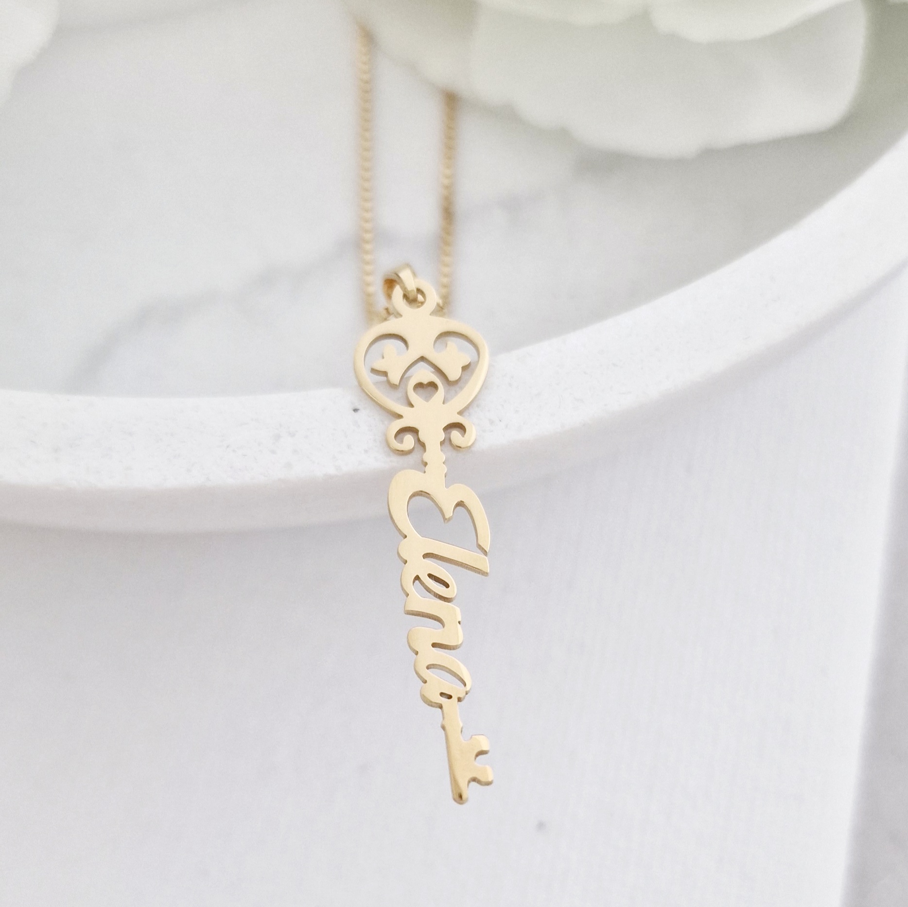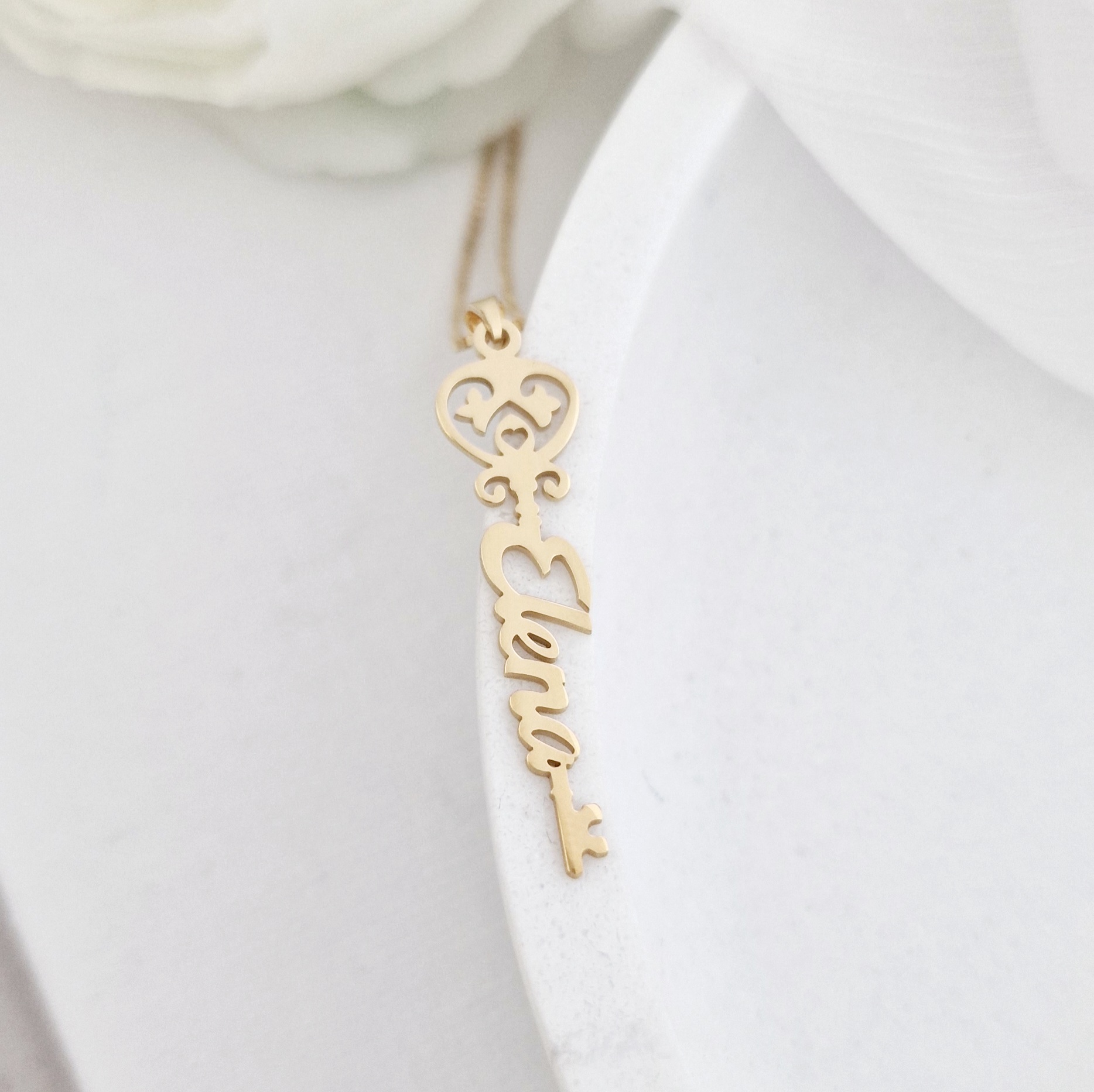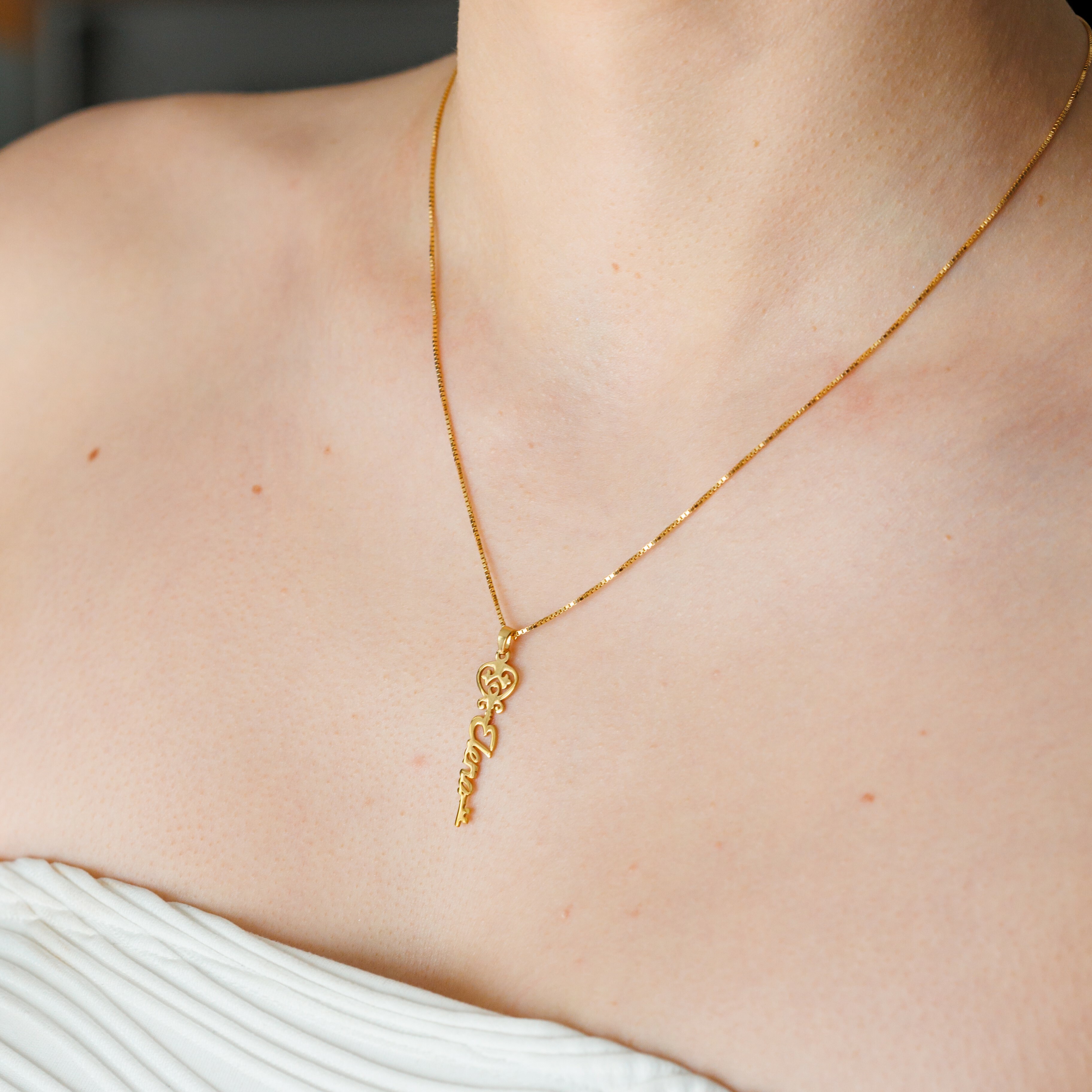 Lantisor Cheia Destinului - Nume pe verticala - Argint 925 placat cu Aur Galben 18K