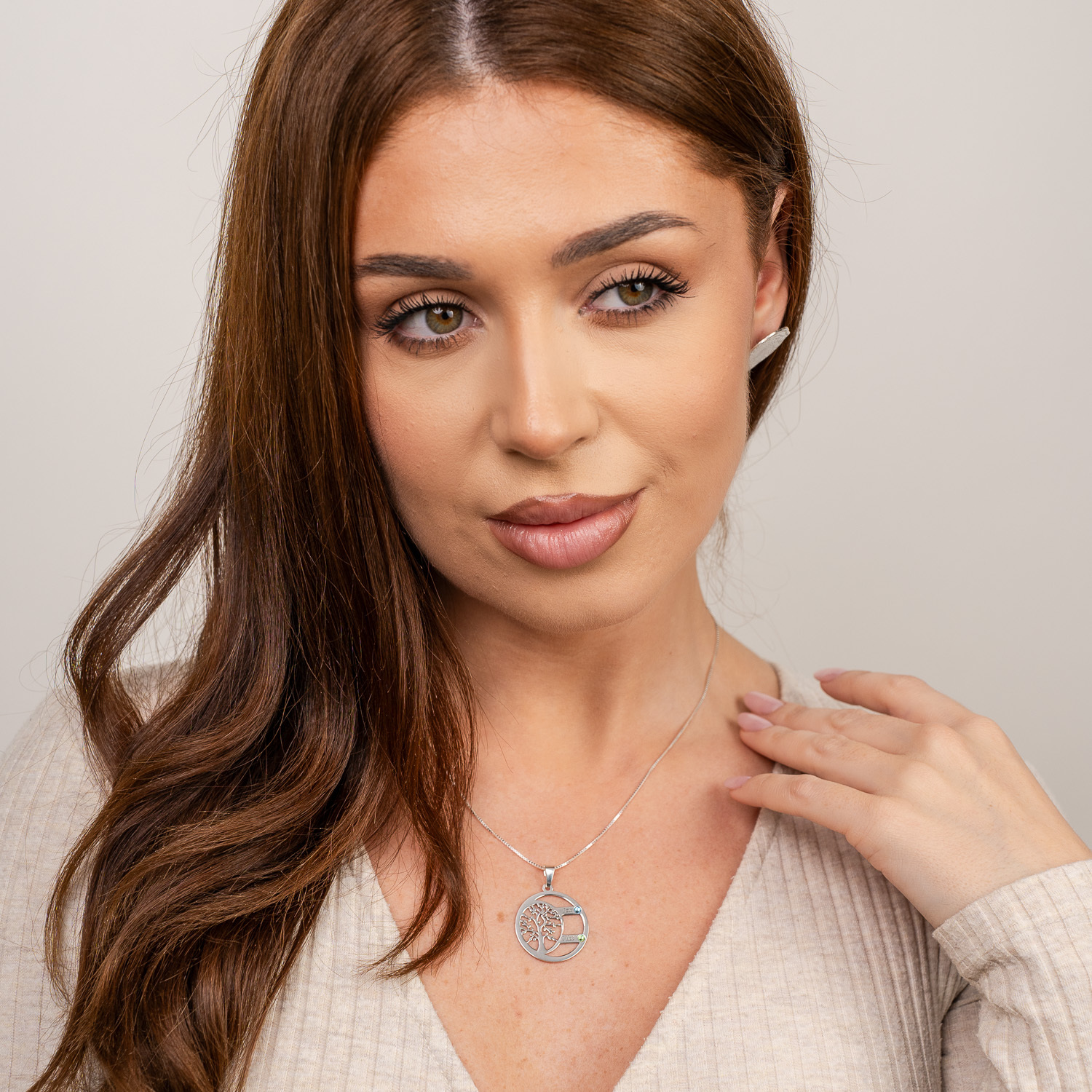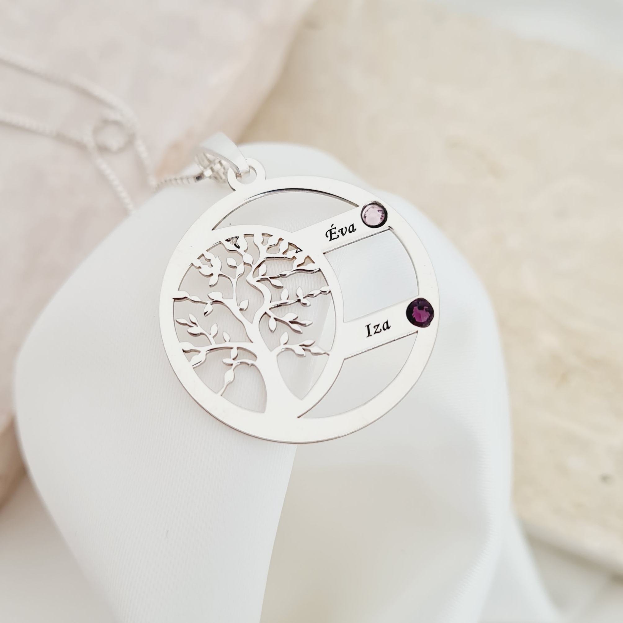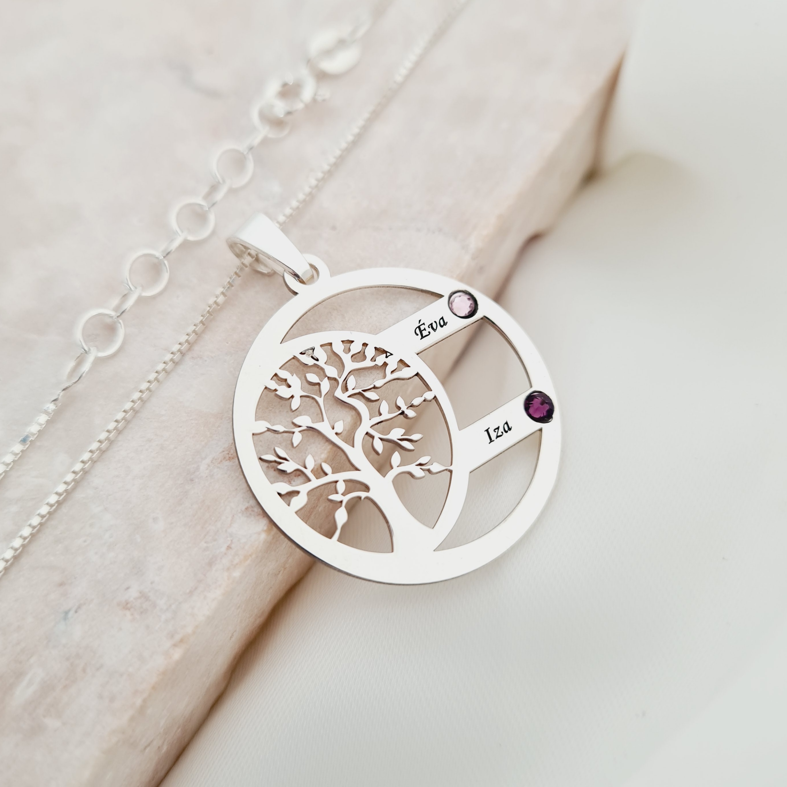 Lantisor Copacul Vietii ARMONIE - Personalizat cu 2 Nume si Cristale Swarovski - Argint 925