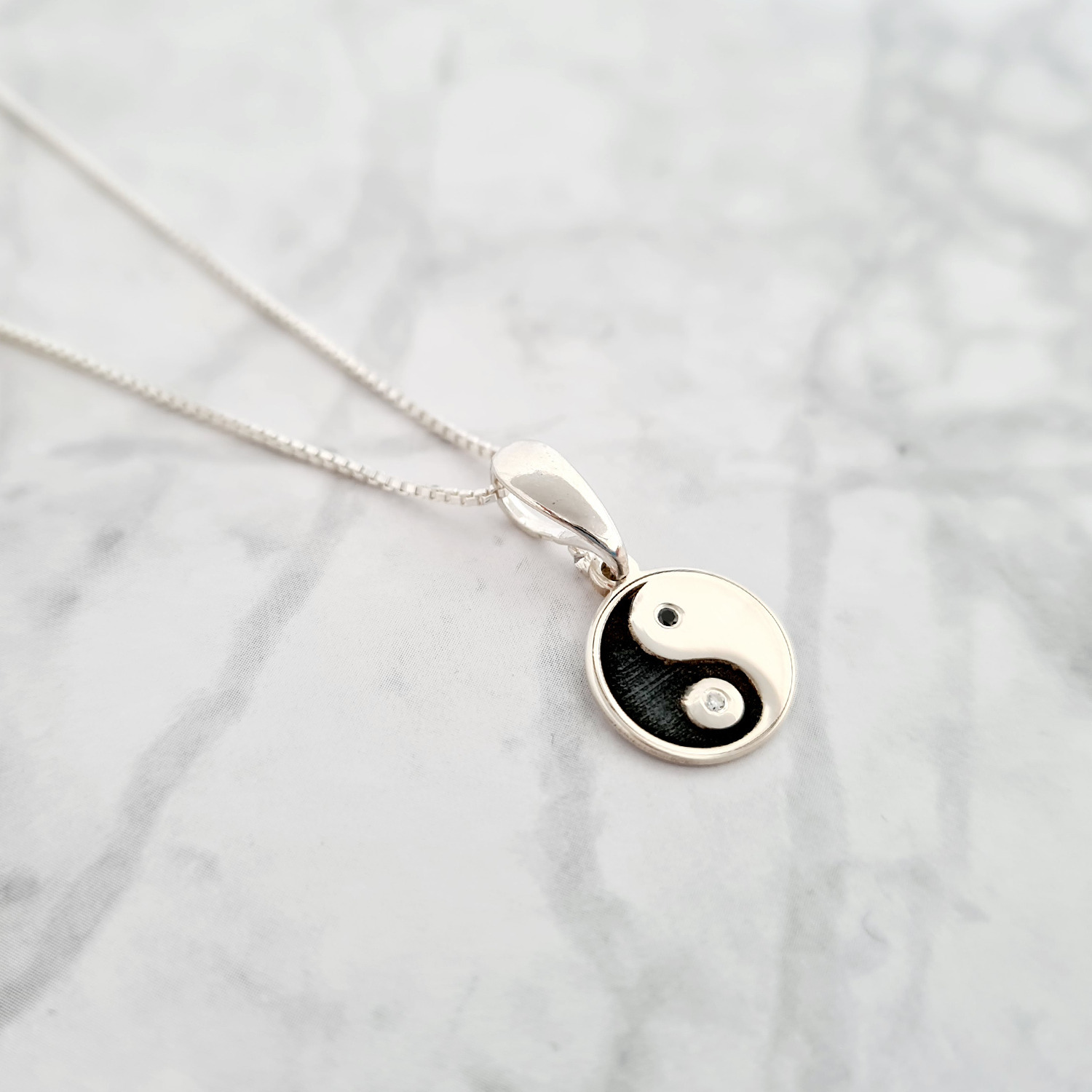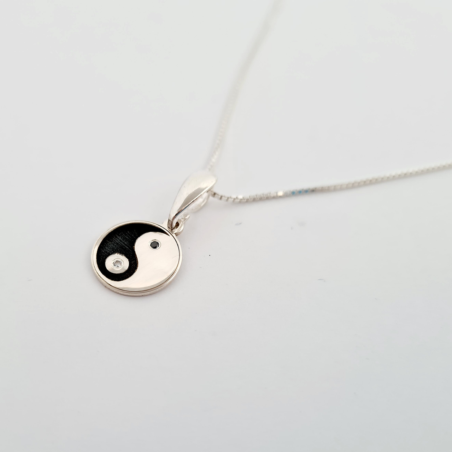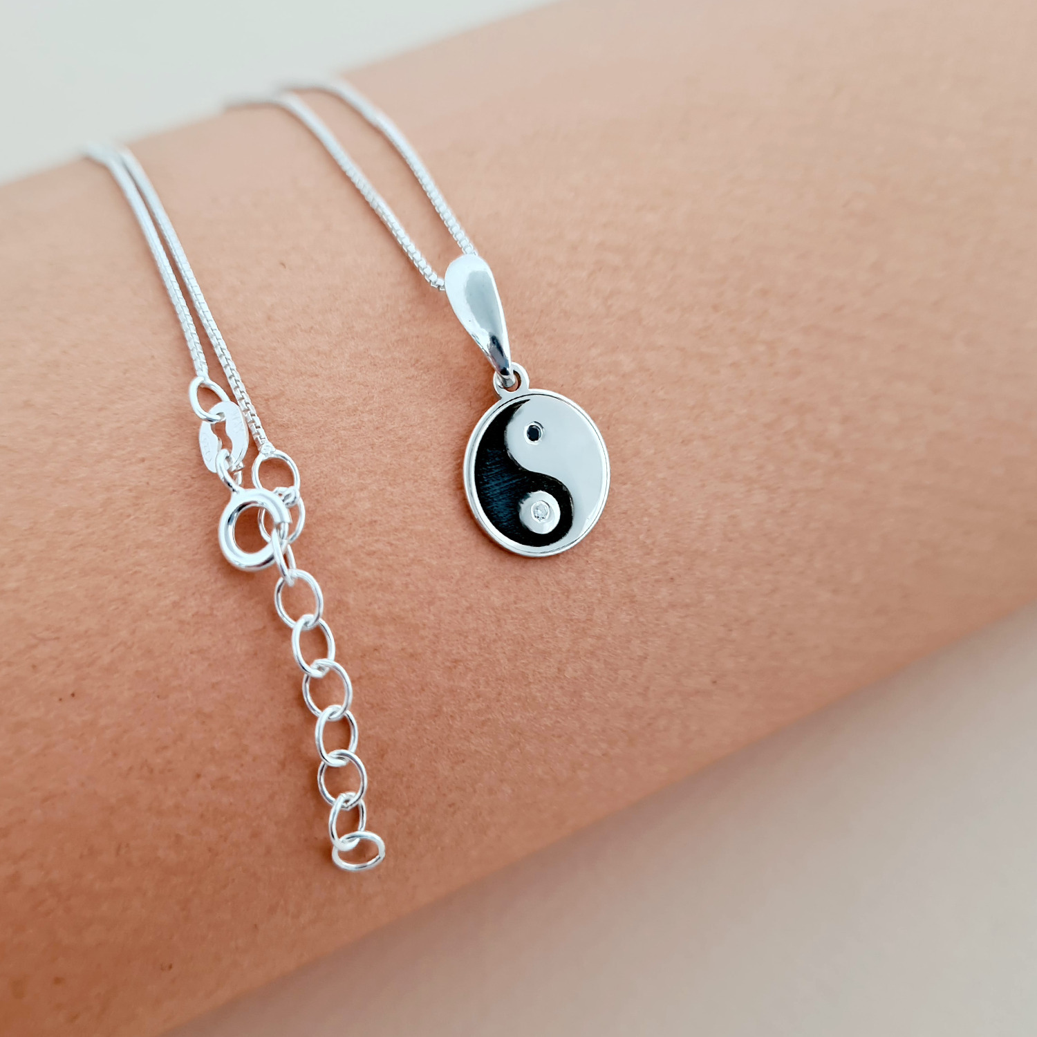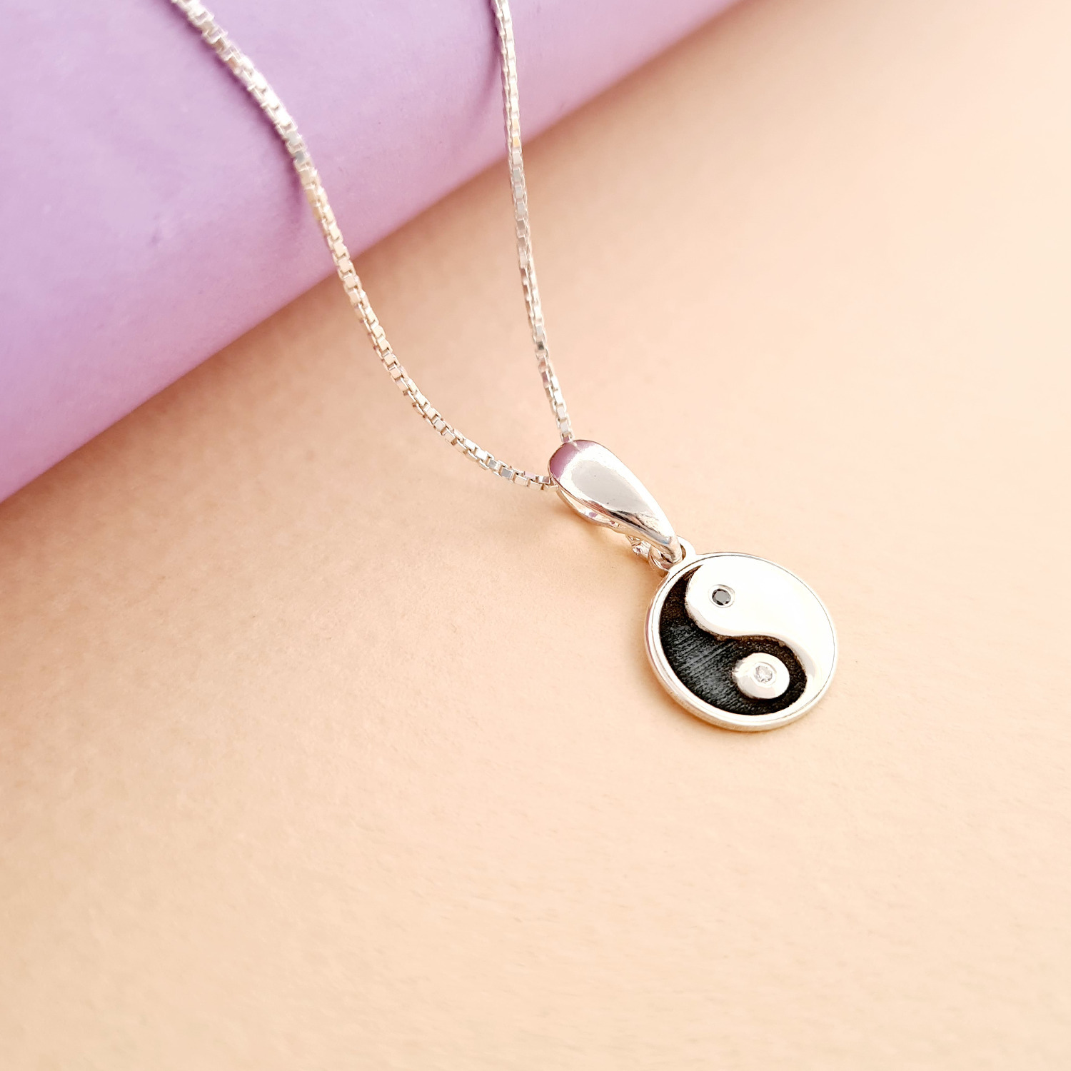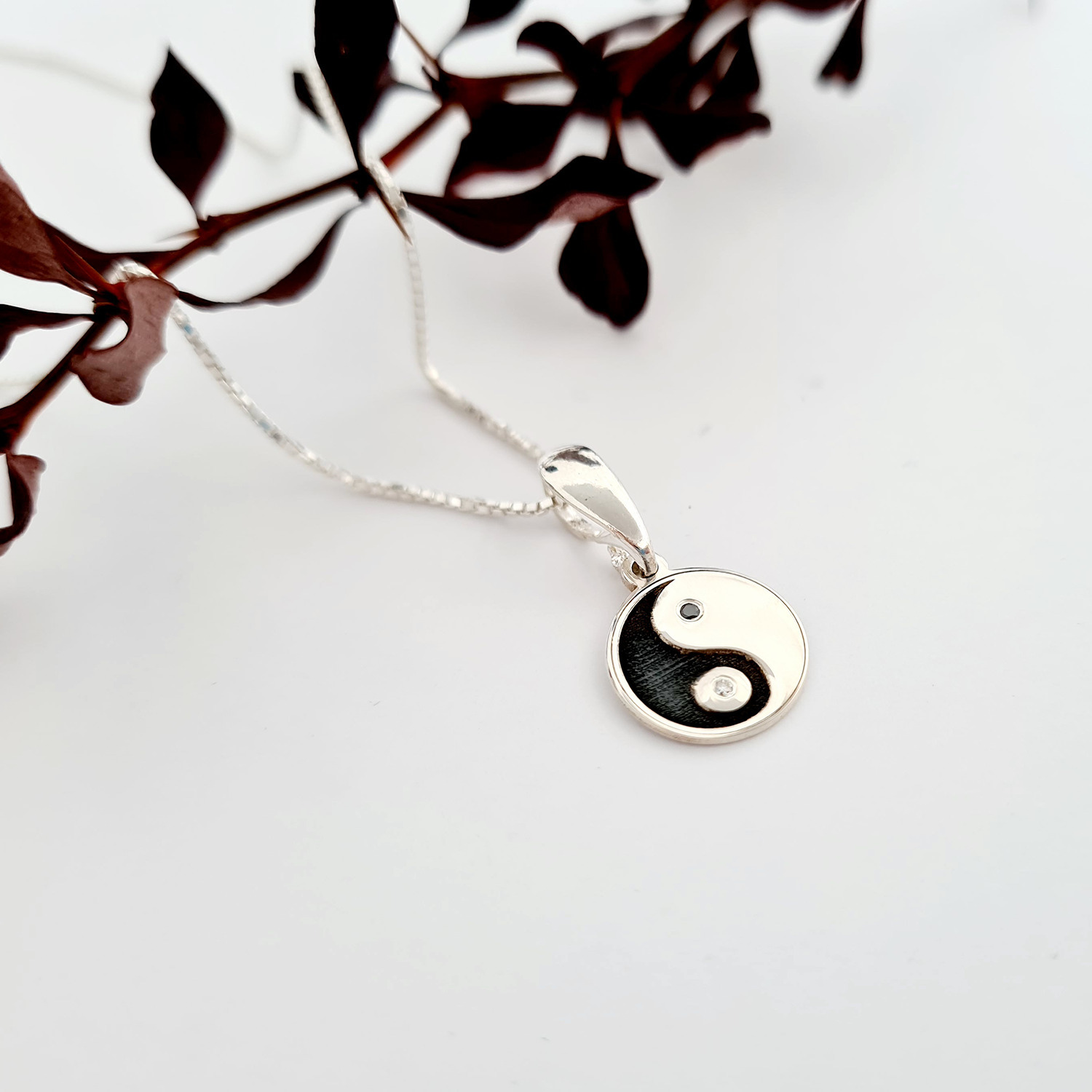 Lantisor cu 2 Diamante naturale - Pandantiv banut Yin&Yang - Argint 925