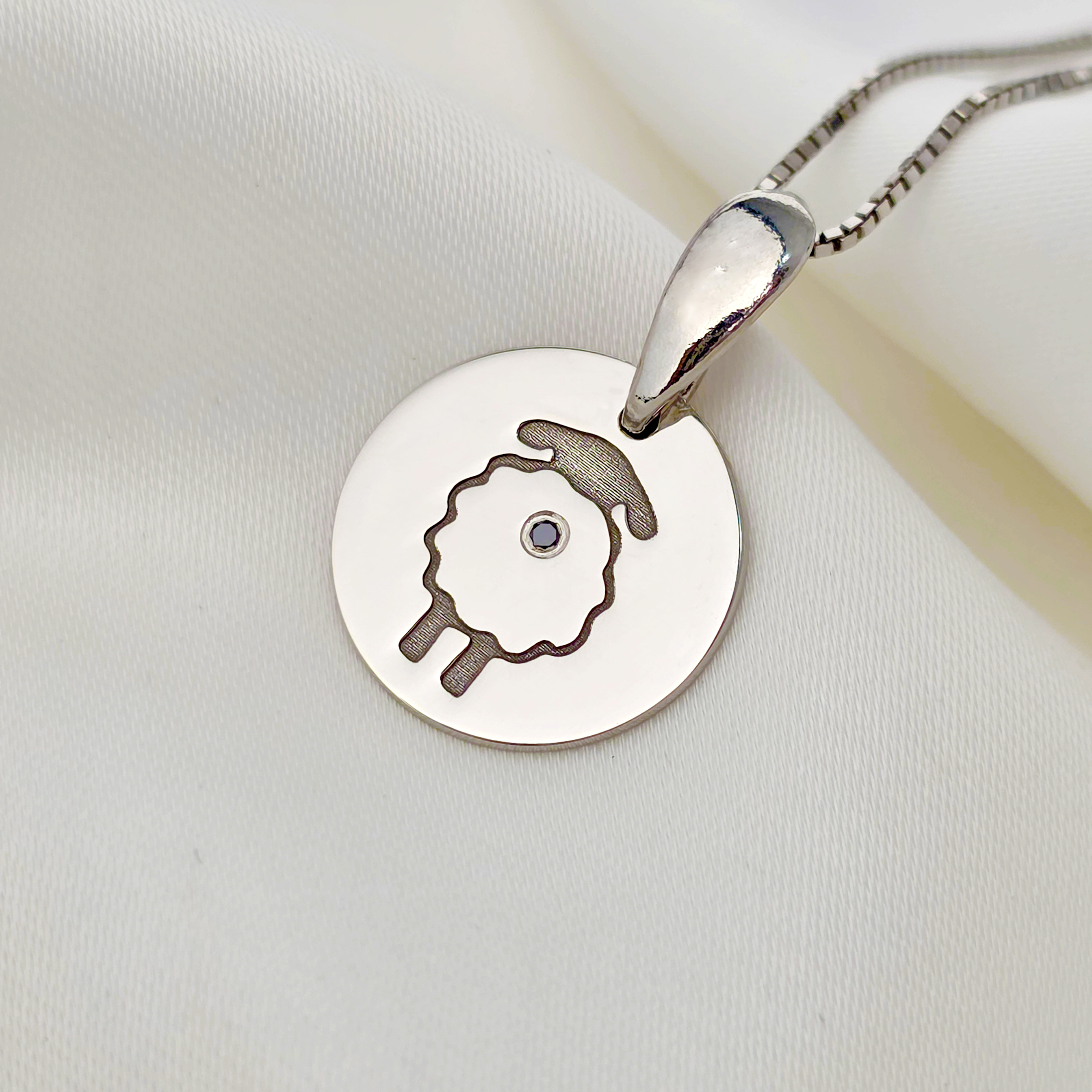 Lantisor cu Diamant natural - Oita cu codita - Argint 925 Rodiat